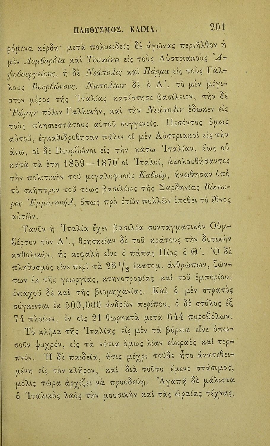 Τίτλος: Εγχειρίδιον της συγχρόνου γεωγραφίας περιλαμβάνον εκ της παλαιάς την της ελλ. και ιταλ. Χερσονήσου της Μικράς Ασίας, Ασσυρίας, Βαβυλωνίας, Μηδίας, Περσίας, Αιγύπτου και Κυρήνης μετ' αλφαβητικού πίνακος προς χρήσιν των Γυμνασίων