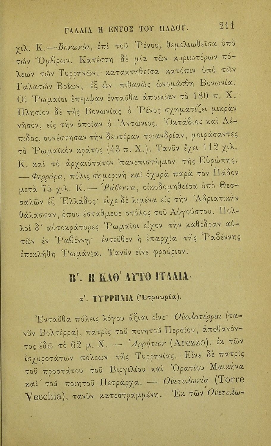 Εγχειρίδιον της συγχρόνου γεωγραφίας περιλαμβάνον εκ της παλαιάς την της ελλ. και ιταλ. Χερσονήσου της Μικράς Ασίας, Ασσυρίας, Βαβυλωνίας, Μηδίας, Περσίας, Αιγύπτου και Κυρήνης μετ' αλφαβητικού πίνακος προς χρήσιν των Γυμνασίων