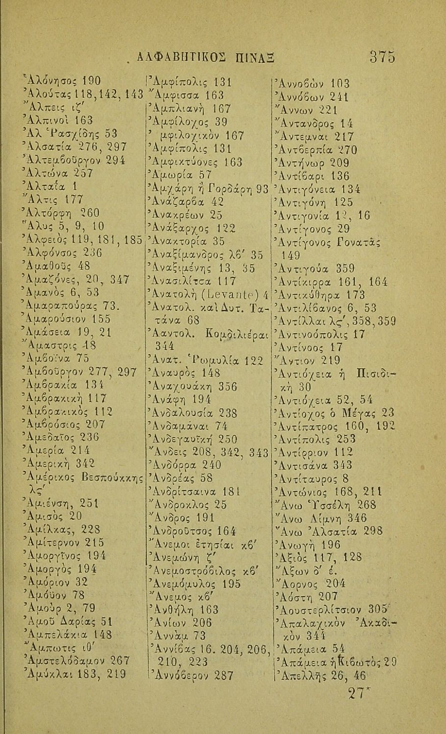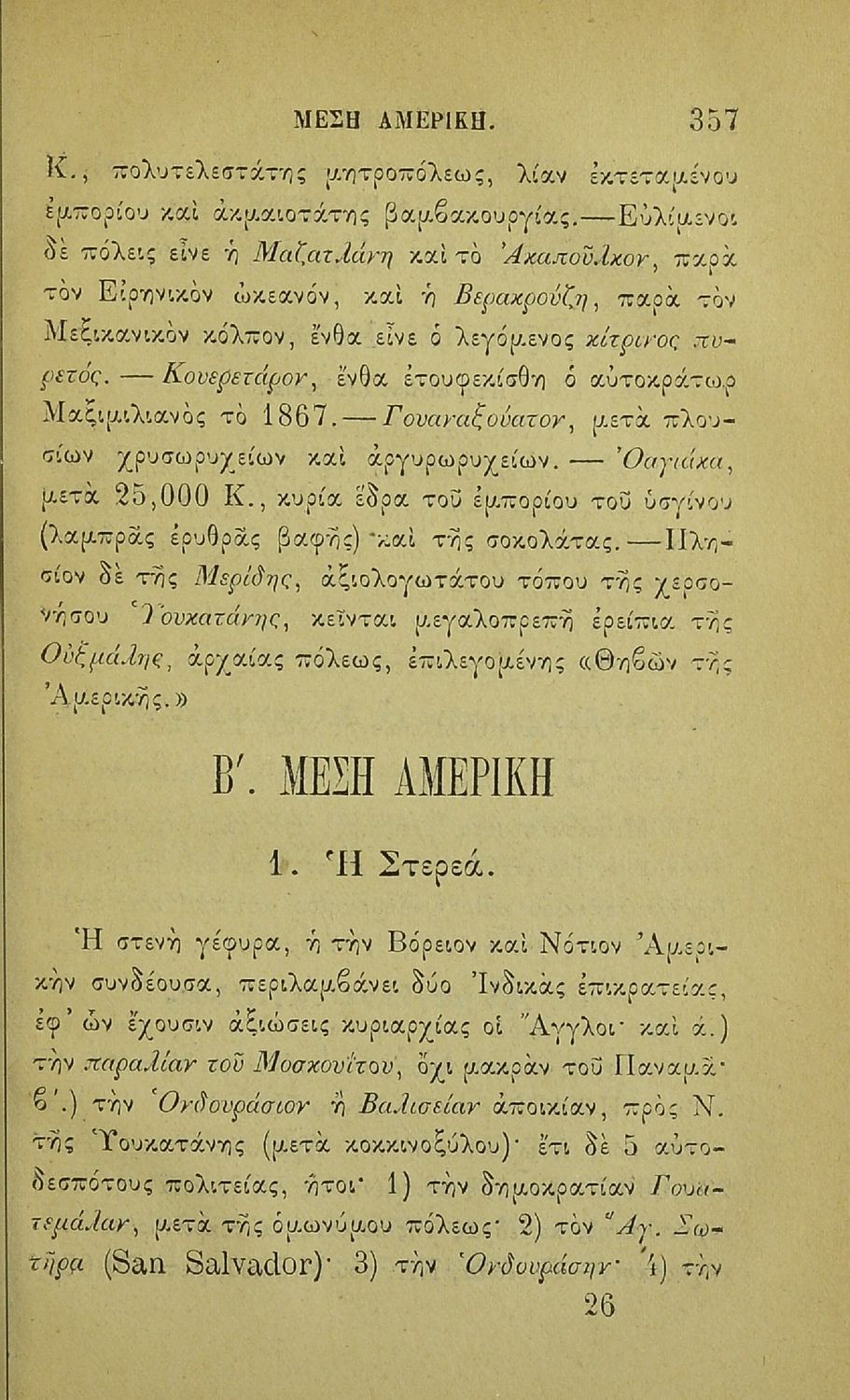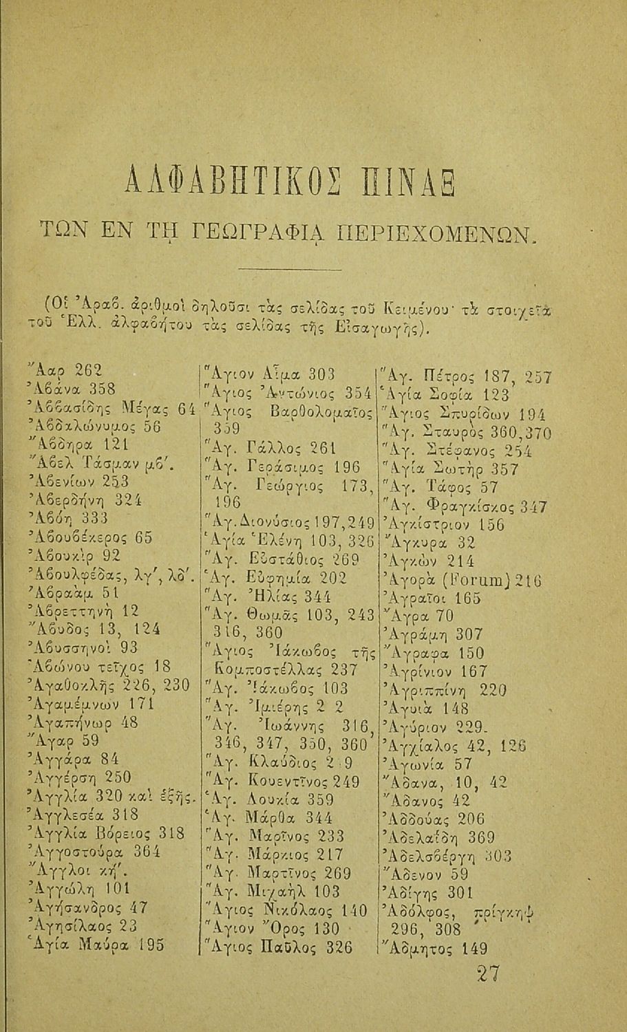 Εγχειρίδιον της συγχρόνου γεωγραφίας περιλαμβάνον εκ της παλαιάς την της ελλ. και ιταλ. Χερσονήσου της Μικράς Ασίας, Ασσυρίας, Βαβυλωνίας, Μηδίας, Περσίας, Αιγύπτου και Κυρήνης μετ' αλφαβητικού πίνακος προς χρήσιν των Γυμνασίων