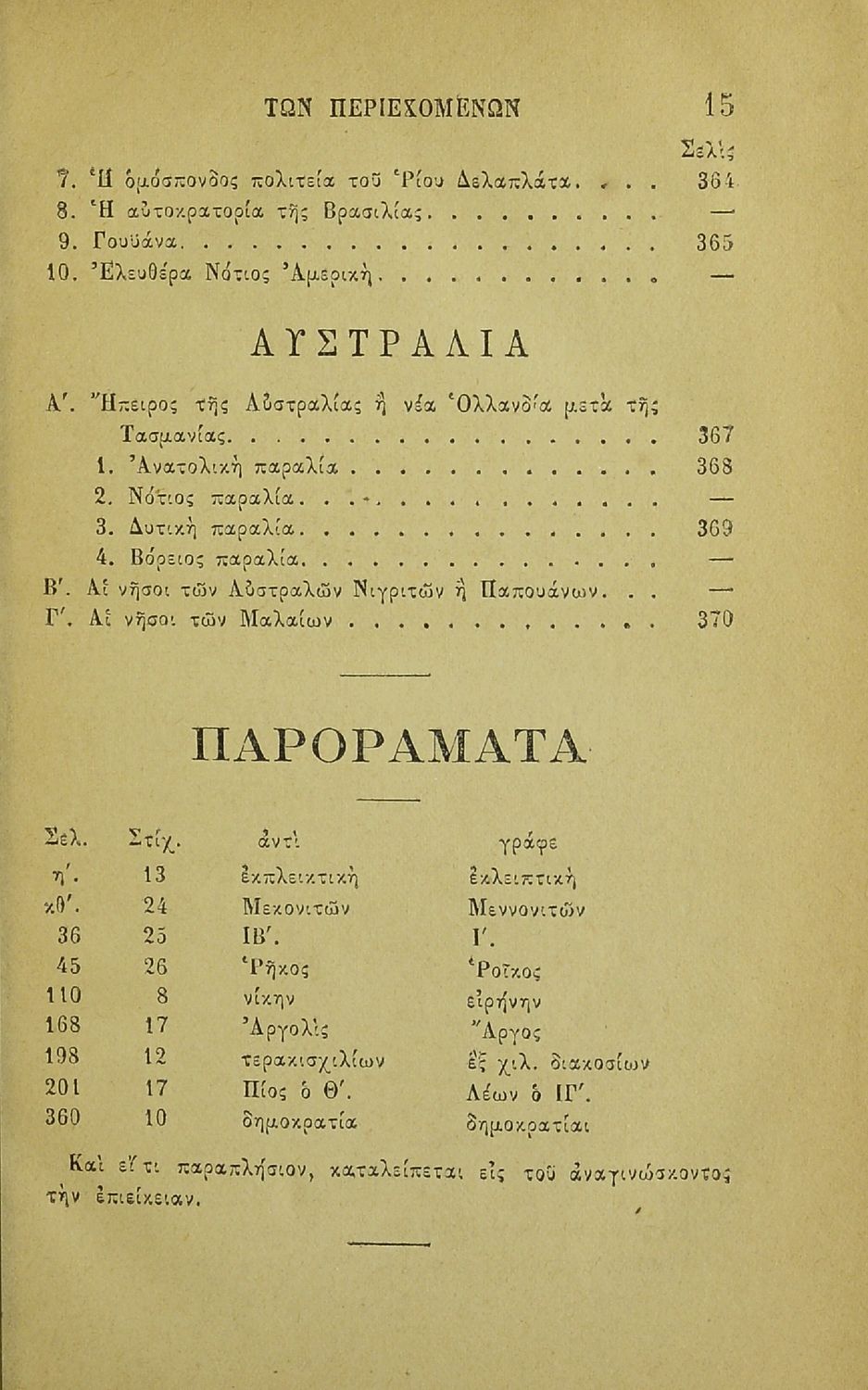 Τίτλος: Εγχειρίδιον της συγχρόνου γεωγραφίας περιλαμβάνον εκ της παλαιάς την της ελλ. και ιταλ. Χερσονήσου της Μικράς Ασίας, Ασσυρίας, Βαβυλωνίας, Μηδίας, Περσίας, Αιγύπτου και Κυρήνης μετ' αλφαβητικού πίνακος προς χρήσιν των Γυμνασίων