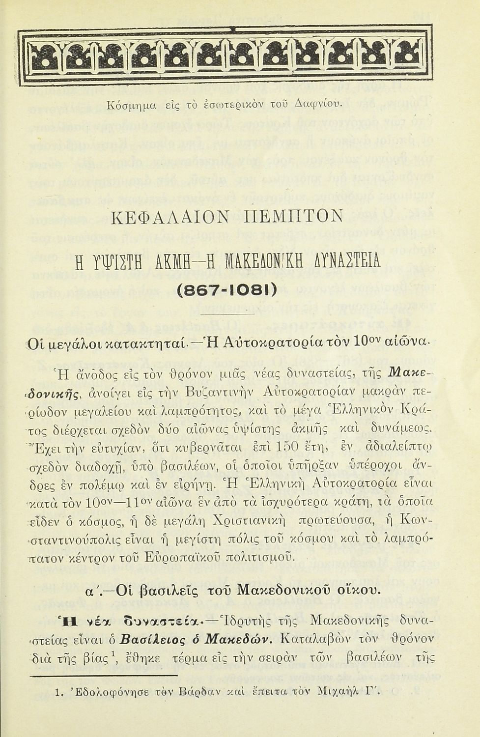 Ιστορία της βυζαντινής αυτοκρατορίας εγκεκριμένη διά την πέμπτην τάξιν των Γυμνασίων με πολλάς εικόνας και χάρτας