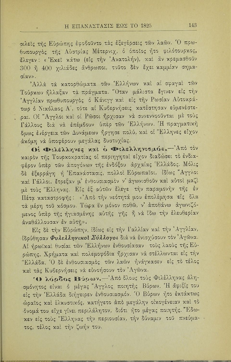 520 ## _aΣχολικό εγχειρίδιο για την Γ' Ελληνικού για το μάθημα της Ιστορίας. Το εγχειρίδιο είναι χωρισμένο σε 5 μέρη. Το πρώτο μέρος περιλαμβάνει τα γεγονότα των τελευταίων χρόνων της Ελληνικής Αυτοκρατορίας (1204 - 1453). Το δεύτερο μέρος ασχολείται με τα ζητήματα της νεώτερης ευρωπαϊκής ιστορίας (1453 - 1830). Το τρίτο μέρος περιλαμβάνει τους χρόνους της υποδούλωσης του ελληνικού έθνους (1453 - 1821). Το τέταρτο μέρος ασχολείται αποκλειστικά με την Ελληνική Επανάσταση (1821 - 1830) και το πέμπτο και τελευταίο μέρος ασχολείται με τα τελευταία 100 χρόνια μεταξύ του 1830 και 1924.