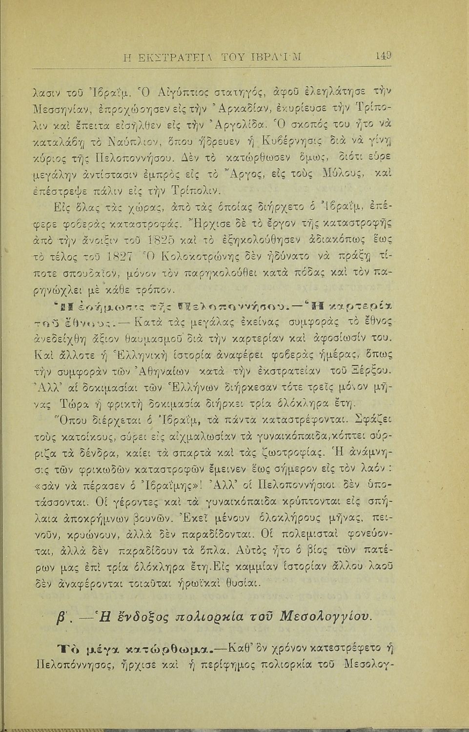 Βαθμίδα εκπαίδευσης: Δευτεροβάθμια Τάξη: Γ' Ελληνικού Σχολείου Μάθημα: Ιστορία Γλώσσα: Απλή καθαρεύουσα Παρουσίαση περιεχομένου: Σχολικό εγχειρίδιο για την Γ' Ελληνικού για το μάθημα της Ιστορίας. Το εγχειρίδιο είναι χωρισμένο σε 5 μέρη. Το πρώτο μέρος περιλαμβάνει τα γεγονότα των τελευταίων χρόνων της Ελληνικής Αυτοκρατορίας (1204 - 1453). Το δεύτερο μέρος ασχολείται με τα ζητήματα της νεώτερης ευρωπαϊκής ιστορίας (1453 - 1830). Το τρίτο μέρος περιλαμβάνει τους χρόνους της υποδούλωσης του ελληνικού έθνους (1453 - 1821). Το τέταρτο μέρος ασχολείται αποκλειστικά με την Ελληνική Επανάσταση (1821 - 1830) και το πέμπτο και τελευταίο μέρος ασχολείται με τα τελευταία 100 χρόνια μεταξύ του 1830 και 1924. |