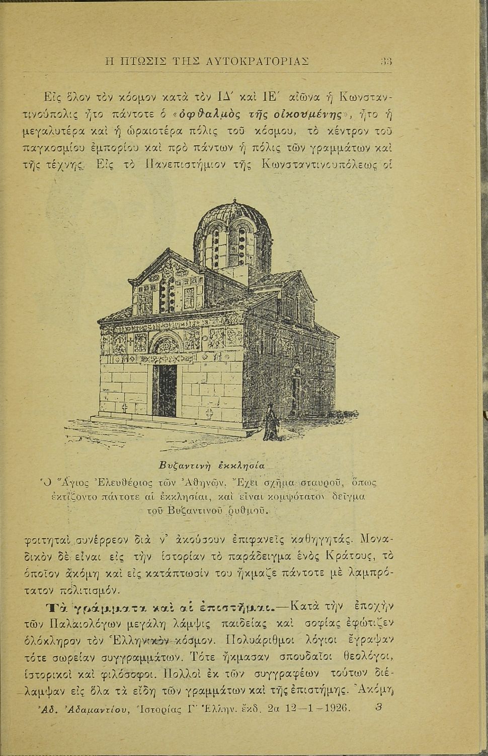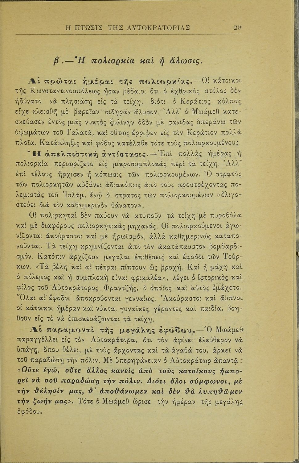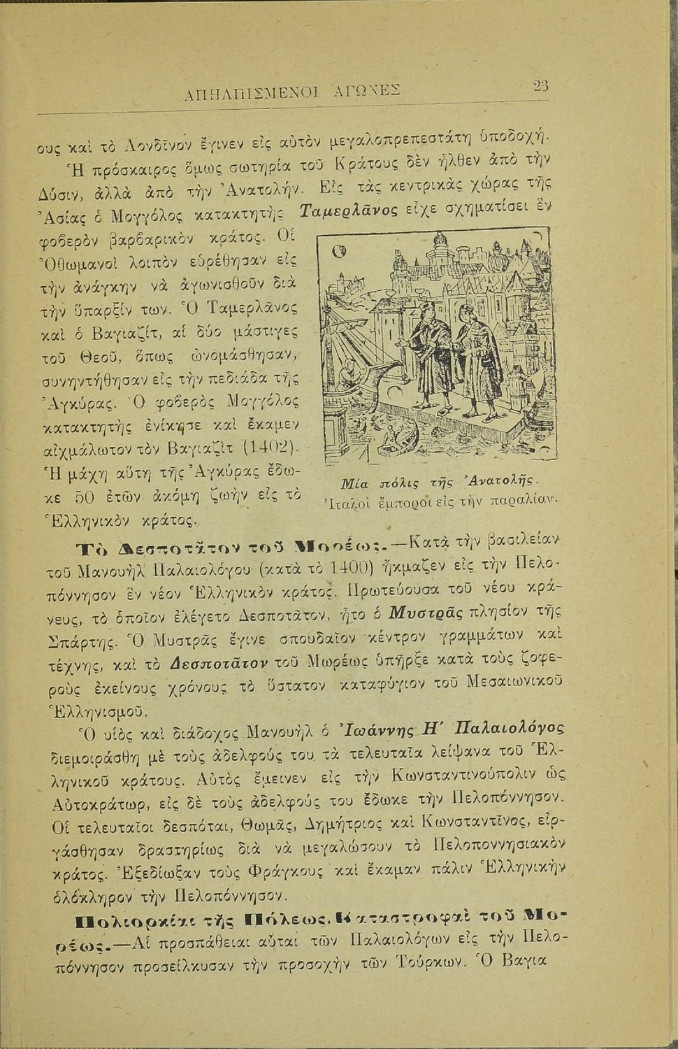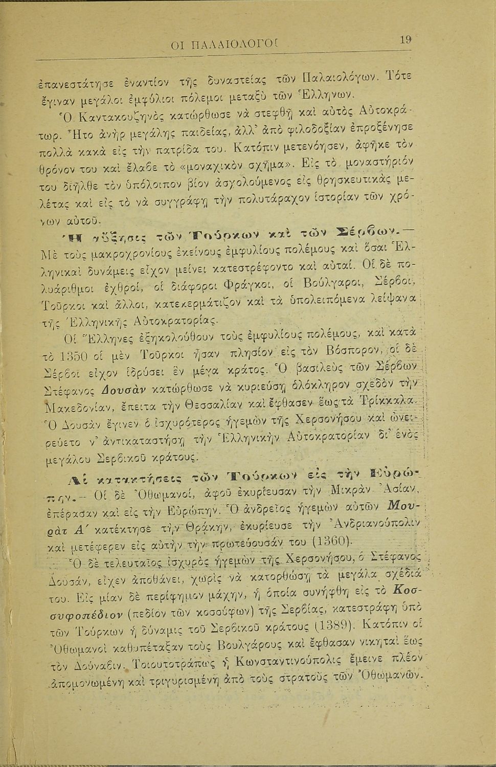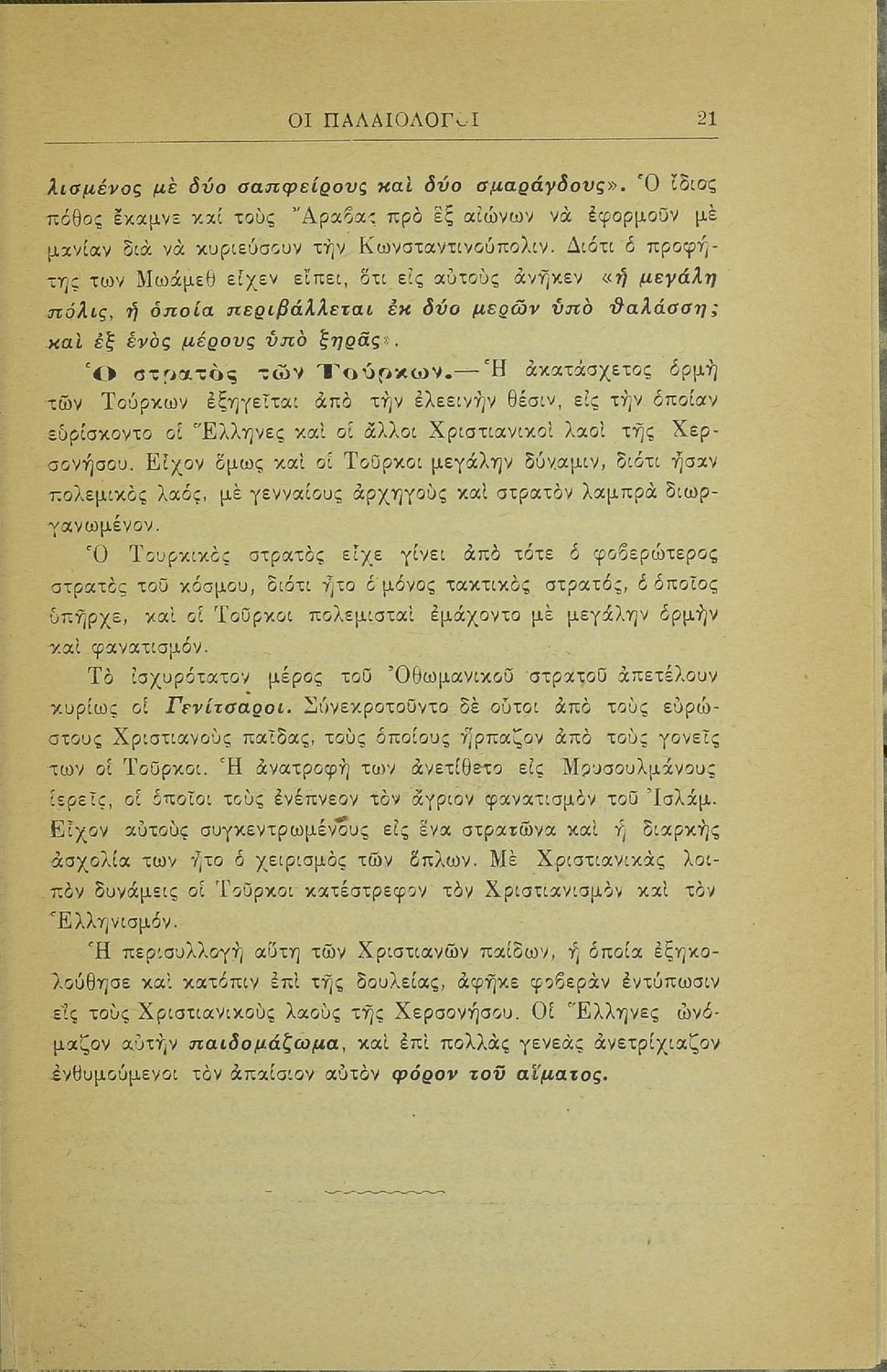 520 ## _aΣχολικό εγχειρίδιο για την Γ' Ελληνικού για το μάθημα της Ιστορίας. Το εγχειρίδιο είναι χωρισμένο σε 5 μέρη. Το πρώτο μέρος περιλαμβάνει τα γεγονότα των τελευταίων χρόνων της Ελληνικής Αυτοκρατορίας (1204 - 1453). Το δεύτερο μέρος ασχολείται με τα ζητήματα της νεώτερης ευρωπαϊκής ιστορίας (1453 - 1830). Το τρίτο μέρος περιλαμβάνει τους χρόνους της υποδούλωσης του ελληνικού έθνους (1453 - 1821). Το τέταρτο μέρος ασχολείται αποκλειστικά με την Ελληνική Επανάσταση (1821 - 1830) και το πέμπτο και τελευταίο μέρος ασχολείται με τα τελευταία 100 χρόνια μεταξύ του 1830 και 1924.