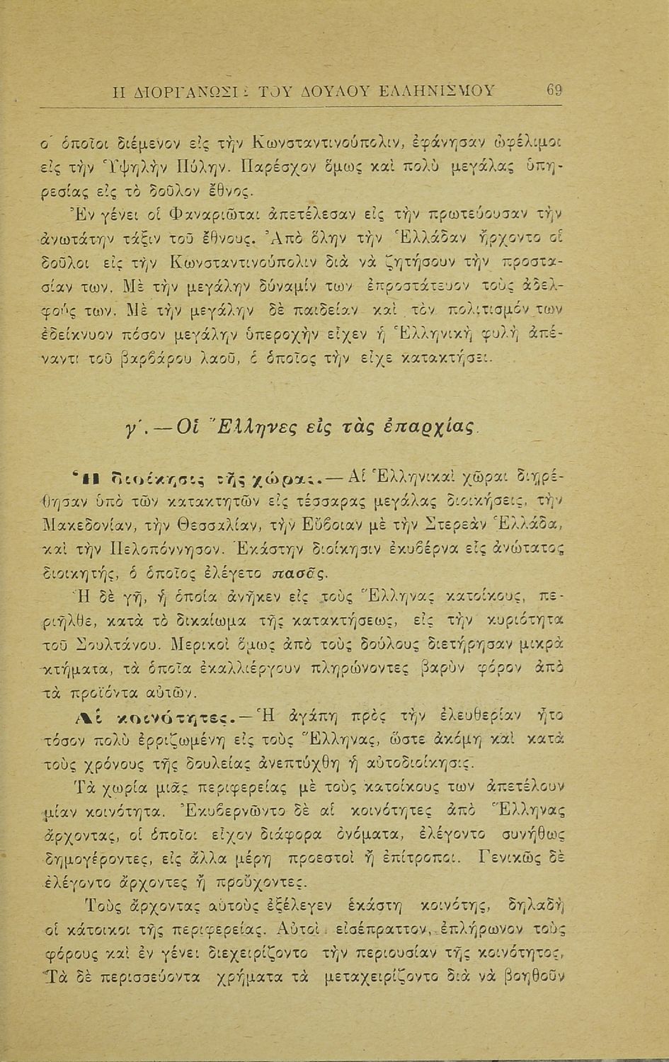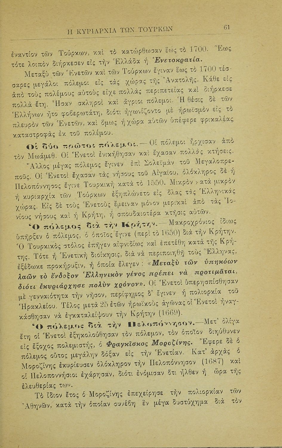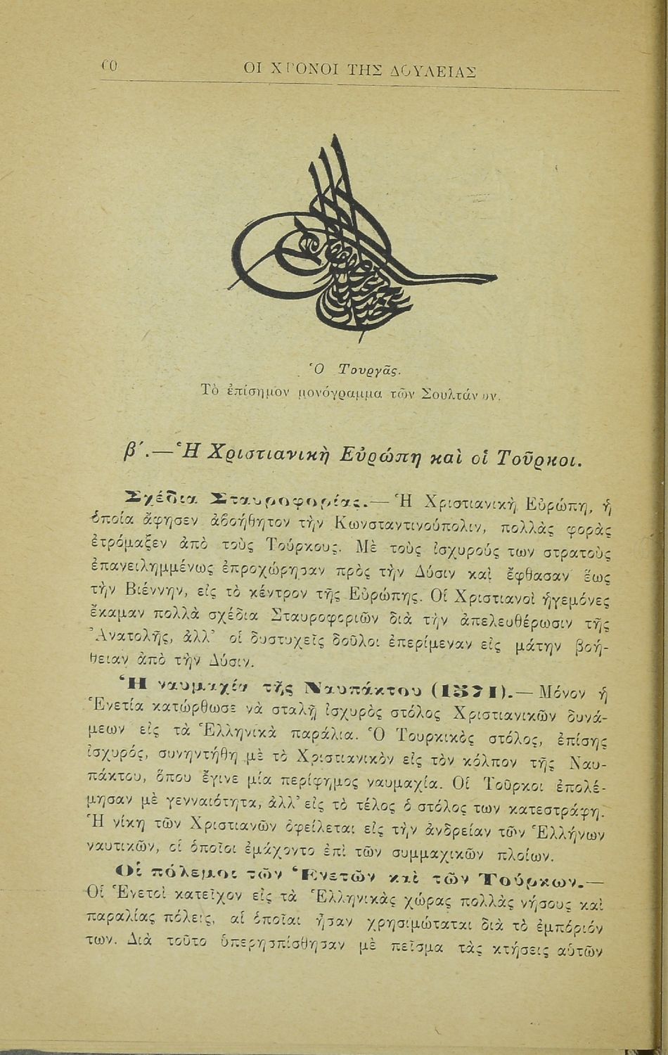 Σχολικό εγχειρίδιο για την Γ' Ελληνικού για το μάθημα της Ιστορίας. Το εγχειρίδιο είναι χωρισμένο σε 5 μέρη. Το πρώτο μέρος περιλαμβάνει τα γεγονότα των τελευταίων χρόνων της Ελληνικής Αυτοκρατορίας (1204 - 1453). Το δεύτερο μέρος ασχολείται με τα ζητήματα της νεώτερης ευρωπαϊκής ιστορίας (1453 - 1830). Το τρίτο μέρος περιλαμβάνει τους χρόνους της υποδούλωσης του ελληνικού έθνους (1453 - 1821). Το τέταρτο μέρος ασχολείται αποκλειστικά με την Ελληνική Επανάσταση (1821 - 1830) και το πέμπτο και τελευταίο μέρος ασχολείται με τα τελευταία 100 χρόνια μεταξύ του 1830 και 1924.