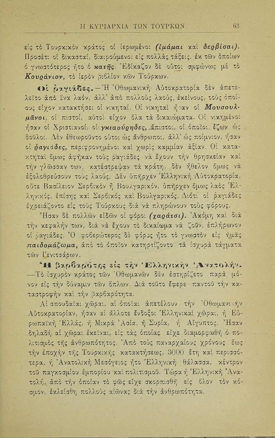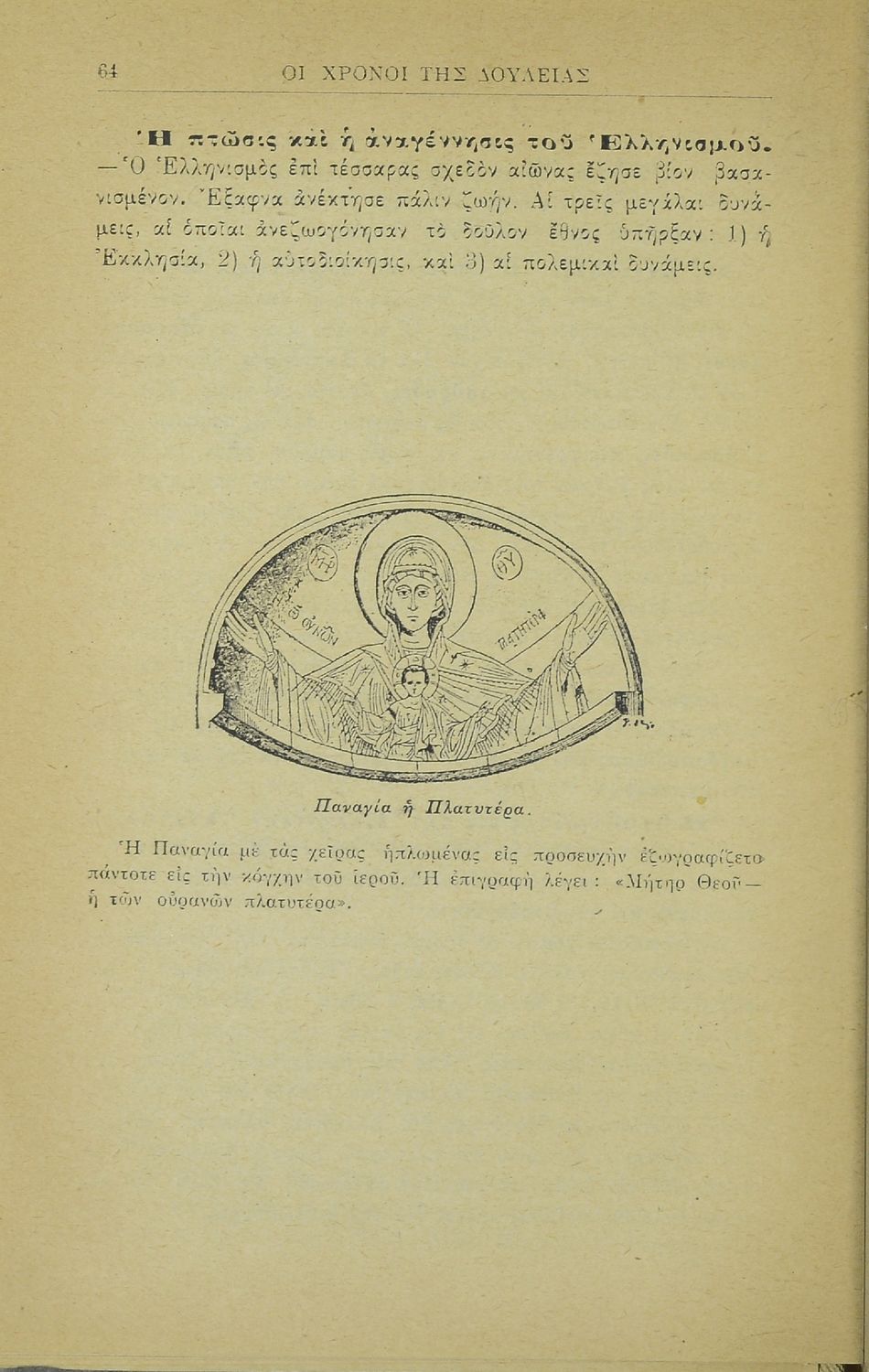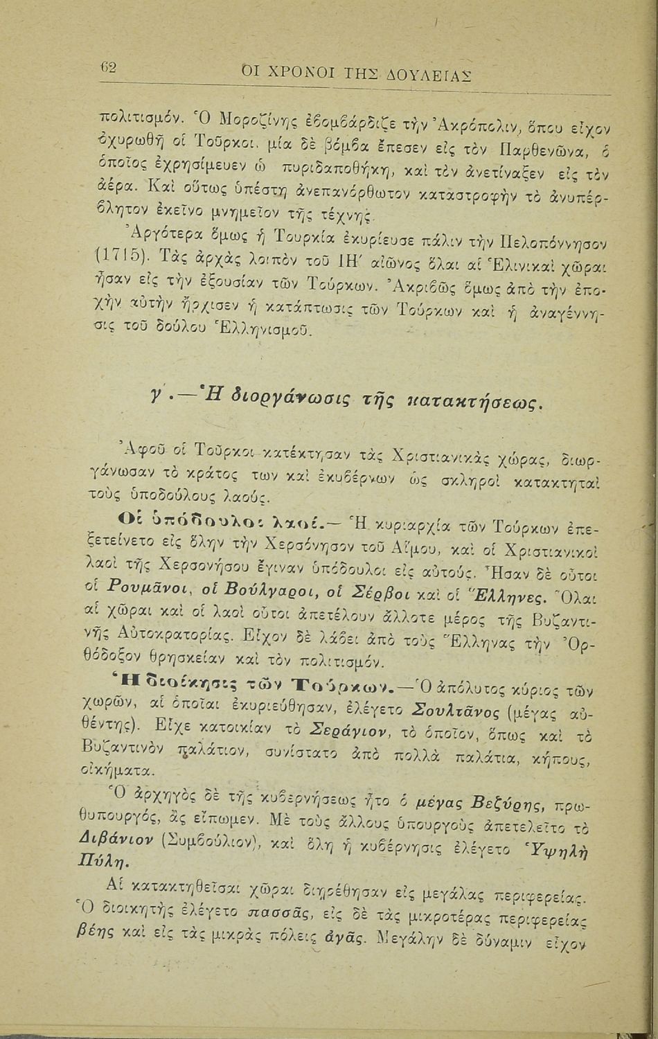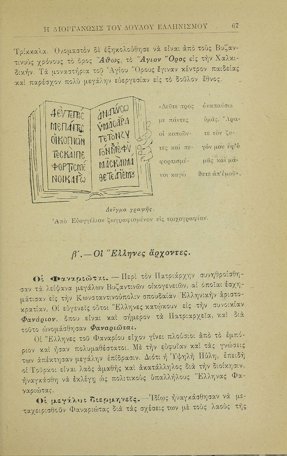 Σχολικό εγχειρίδιο για την Γ' Ελληνικού για το μάθημα της Ιστορίας. Το εγχειρίδιο είναι χωρισμένο σε 5 μέρη. Το πρώτο μέρος περιλαμβάνει τα γεγονότα των τελευταίων χρόνων της Ελληνικής Αυτοκρατορίας (1204 - 1453). Το δεύτερο μέρος ασχολείται με τα ζητήματα της νεώτερης ευρωπαϊκής ιστορίας (1453 - 1830). Το τρίτο μέρος περιλαμβάνει τους χρόνους της υποδούλωσης του ελληνικού έθνους (1453 - 1821). Το τέταρτο μέρος ασχολείται αποκλειστικά με την Ελληνική Επανάσταση (1821 - 1830) και το πέμπτο και τελευταίο μέρος ασχολείται με τα τελευταία 100 χρόνια μεταξύ του 1830 και 1924.