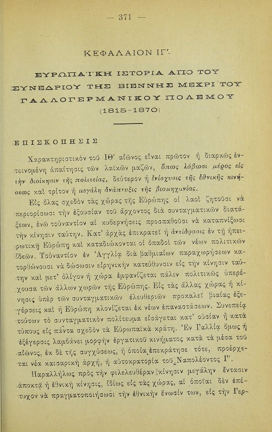 Βαθμίδα εκπαίδευσης: Δευτεροβάθμια Τάξη: Δ' Γυμνασίου Μάθημα: Ιστορία Γλώσσα: Καθαρεύουσα Παρουσίαση περιεχομένου: Σχολικό εγχειρίδιο Ιστορίας Δ΄ Γυμνασίου που αποτελεί μια συνοπτική επισκόπηση της ιστορία της Ευρώπης και καλύπτει το διάστημα από την Συνθήκη της Βεστφαλίας ως τον Α΄ Παγκόσμιο Πόλεμο. |