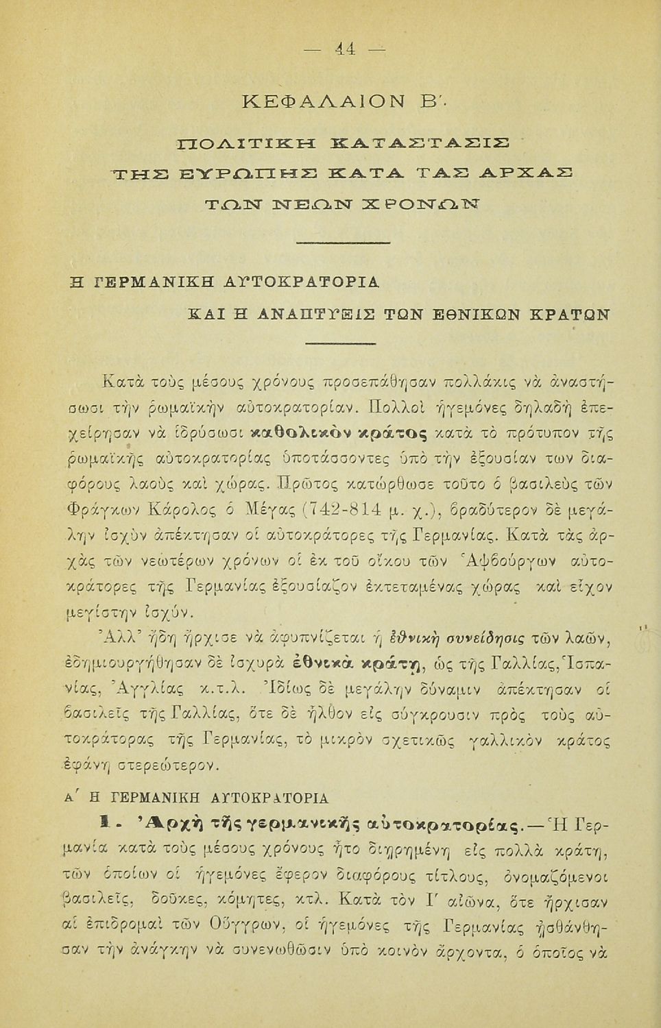 LDR 01458 2200205 4500 035 ## _a08-00084 040 ## _aΕθνική Βιβλιοθήκη της Ελλάδος 041 ## _ael 100 ## _aΧ. Θεοδωρίδης _aΑ. Λαζάρου 110 ## _a84 245 0# _aΙστορία ελληνική και ευρωπαϊκή των νέων χρόνων διά την Δ΄ τάξιν των Γυμνασίων και τας αντιστοίχους των λοιπών σχολείων της Μέσης Εκπαιδεύσεως μετά 100 εικόνων και 10 χαρτών 260 ## _aΑθήνα _bΙωάννης Ν. Σιδέρης _c1923 300 ## _a532 _bΣκίτσα (ασπρόμαυρα), Χάρτες (ασπρόμαυροι) 520 ## _aΣχολικό εγχειρίδιο Ιστορίας Δ΄ Γυμνασίου που αποτελεί μια συνοπτική επισκόπηση της ιστορία της Ευρώπης και καλύπτει το διάστημα από την Συνθήκη της Βεστφαλίας ως τον Α΄ Παγκόσμιο Πόλεμο. 521 ## _aΔ' Γυμνασίου 522 ## _aΕλλάδα 546 ## _aΚαθαρεύουσα 563 ## _aΣκληρό Εξώφυλλο 583 ## _a15530/ 4-5-1923 _c1923 650 #4 _aΑνατολικό Ζήτημα _aΓαλλική Επανάσταση _aΔιαφωτισμός _aΕλληνική Επανάσταση _aΝαπολεόντειοι Πόλεμοι