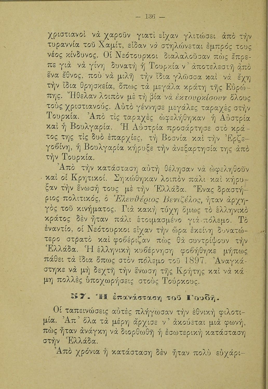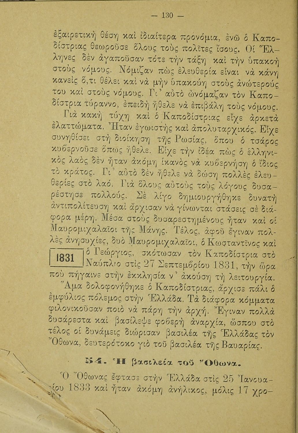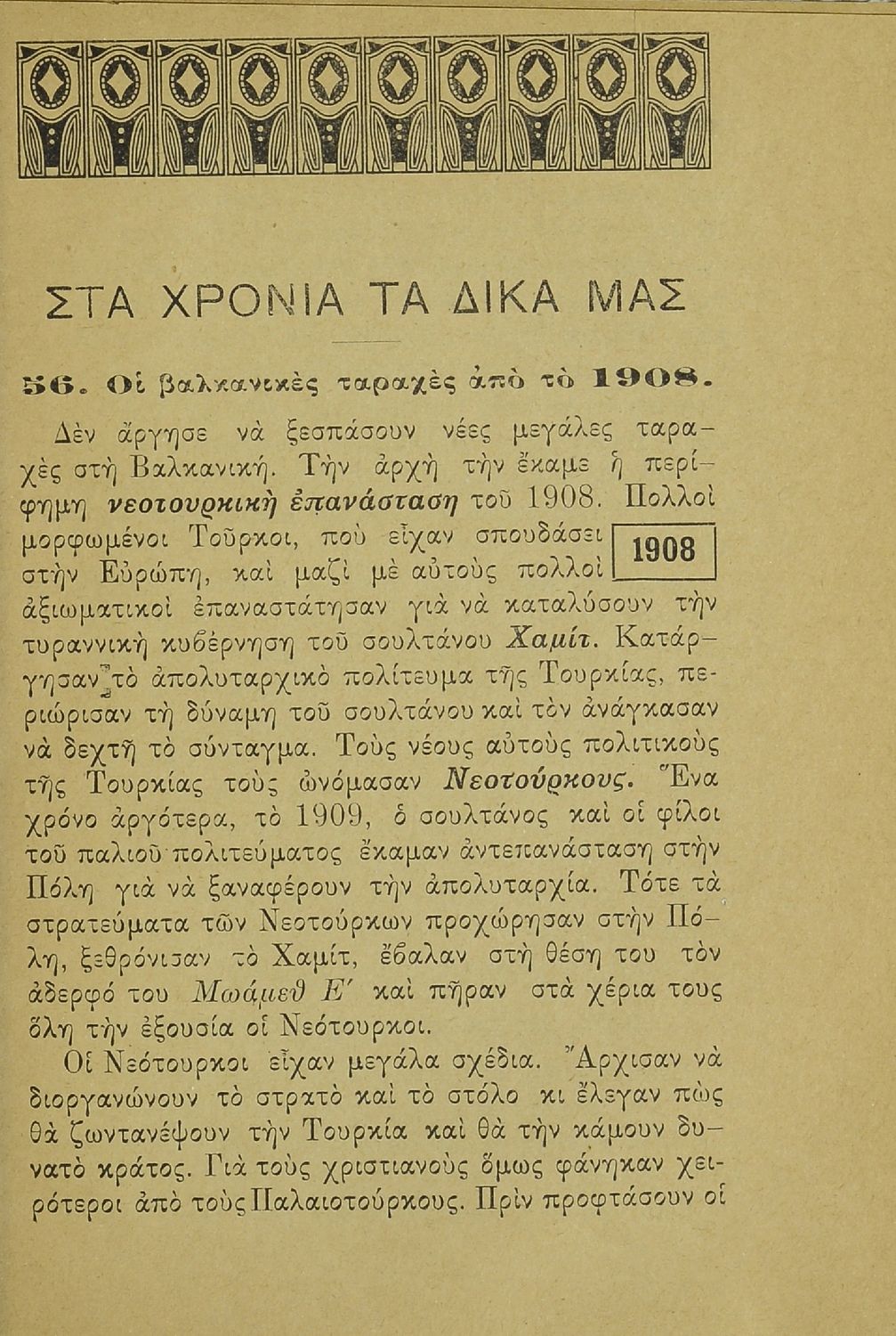 Το σύγγραμμα ήταν σχολικό εγχειρίδιο για μάθημα της Ιστορίας στο Δημοτικό. Αναφέρεται στα ιστορικά γεγονότα από την περίοδο της Οθωμανικής Αυτοκρατορίας και τη διοίκηση των ελληνικών κοινοτήτων, την οργάνωση ...