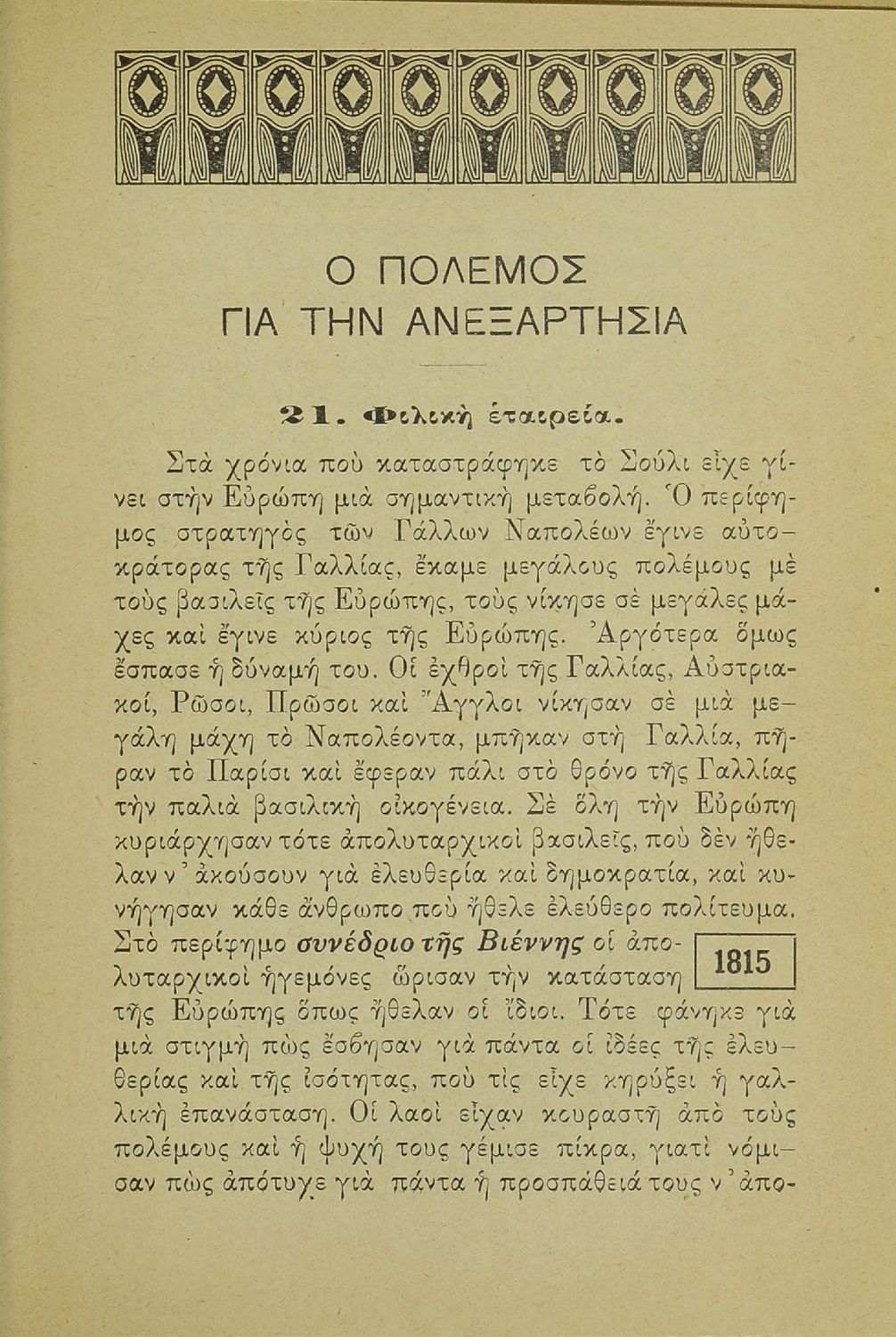 LDR 01152 2200205 4500 035 ## _a08-00085 040 ## _aΕθνική Βιβλιοθήκη της Ελλάδος 041 ## _ael 100 ## _aΧ. Θεοδωρίδης _aΑ. Λαζάρου 110 ## _a85 245 0# _aΜαθήματα ιστορίας για την 6η του Δημοτικού Σχολείου, Τα νέα χρόνια 260 ## _aΑθήνα _bΙωάννης Ν. Σιδέρης _c1925 300 ## _a172 _bΣκίτσα (ασπρόμαυρα), Χάρτες (ασπρόμαυροι) 520 ## _aΣχολικό εγχειρίδιο Ιστορίας ΣΤ΄ Δημοτικού που καλύπτει την περίοδο από την άλωση της Κωνσταντινούπολης ως την Μικρασιατική καταστροφή. 521 ## _aΣΤ' Δημοτικού 522 ## _aΕλλάδα 546 ## _aΔημοτική 563 ## _aΣκληρό Εξώφυλλο 583 ## _a18948/ 650 #4 _aΒαλκανικοί Πόλεμοι _aΓουδή _aΕλληνική Επανάσταση _aΚαποδίστριας _aΜικρασιατική Καταστροφή _aΌθωνας