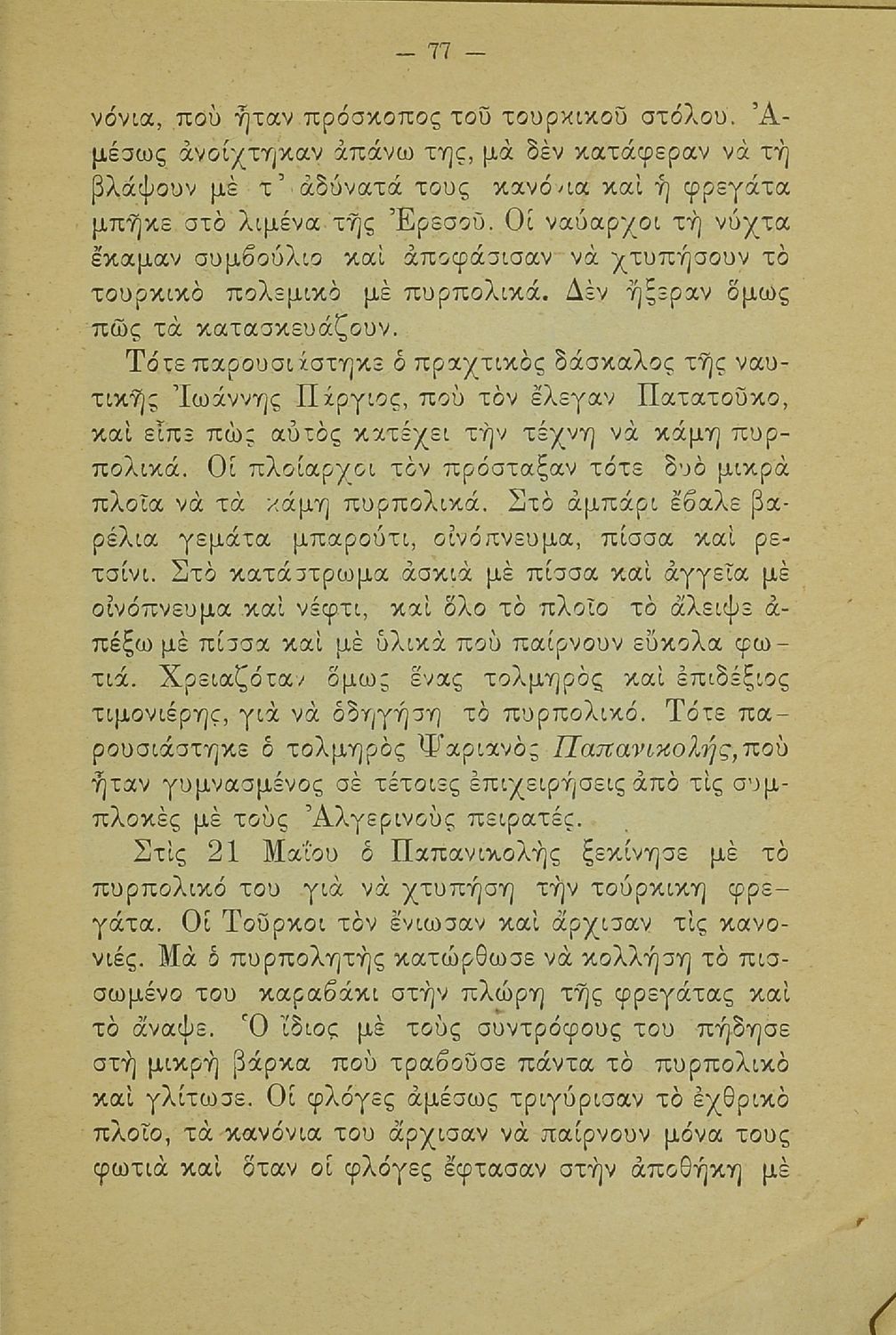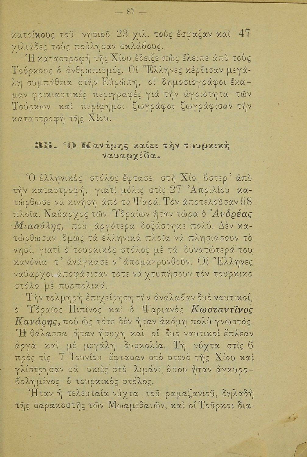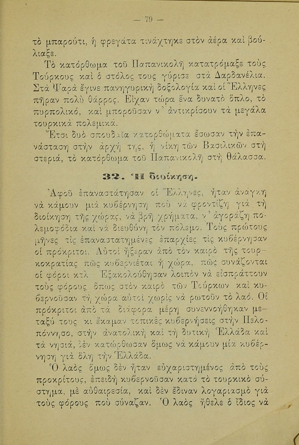 Το σύγγραμμα ήταν σχολικό εγχειρίδιο για μάθημα της Ιστορίας στο Δημοτικό. Αναφέρεται στα ιστορικά γεγονότα από την περίοδο της Οθωμανικής Αυτοκρατορίας και τη διοίκηση των ελληνικών κοινοτήτων, την οργάνωση ...