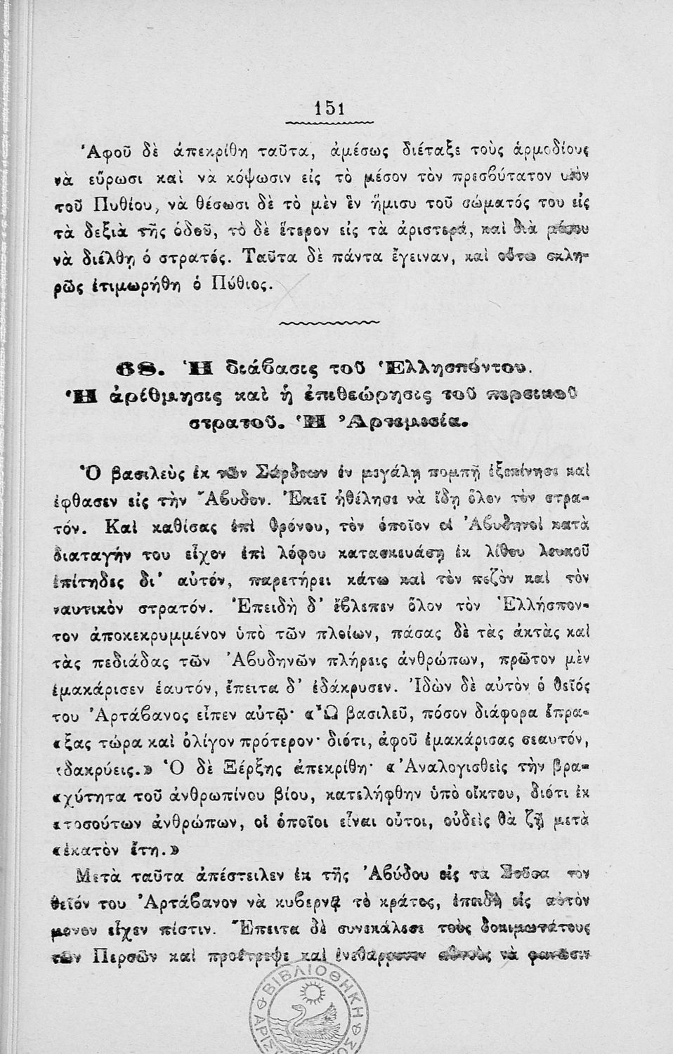 Τίτλος: Αναγνωσματάριον μετά πολλών εικόνων και χαρτών περιέχον εκλογήν εκ του Ηροδότου εγκριθέν υπό του Υπουργείου της Παιδείας, ίνα επί τετραετίαν ή κατά τον Νόμον ΑΜΒ΄ το μόνον αναγνωστικόν βιβλίον της τετάρτης τάξεως των Δημοτικών σχολείων αμφοτέρων των φύλων