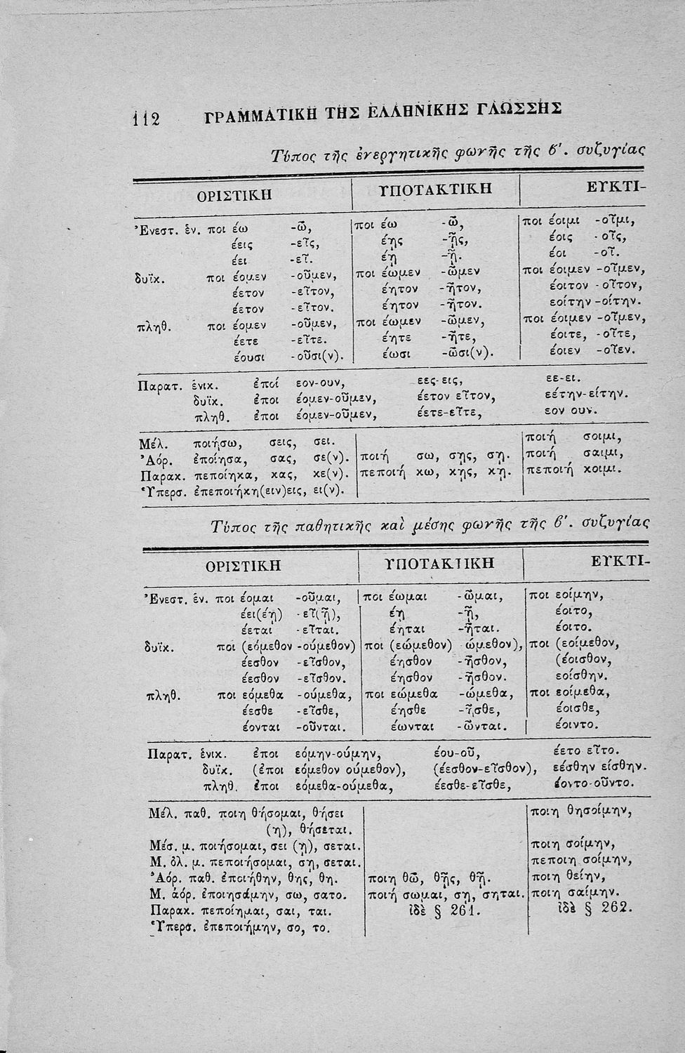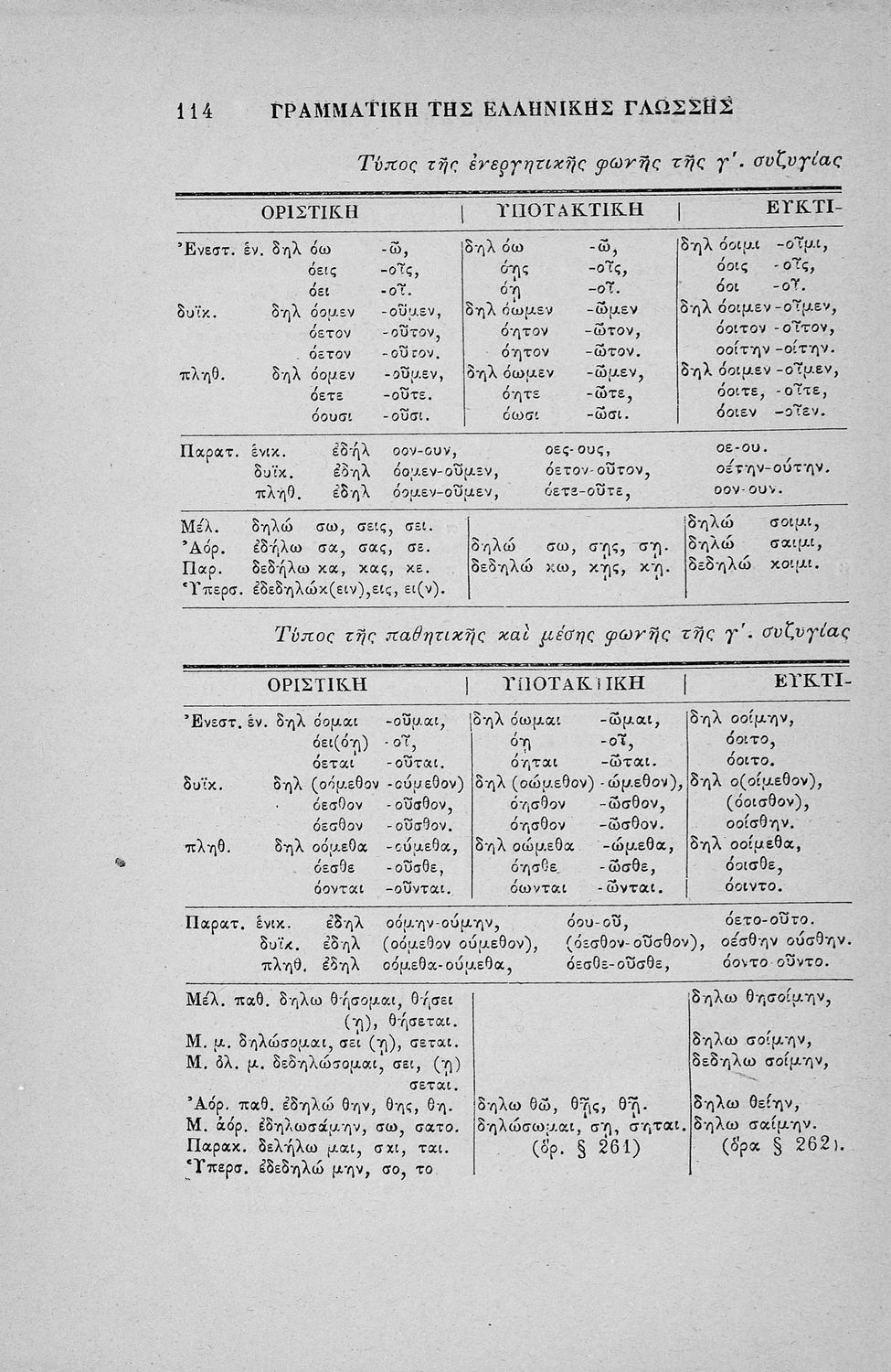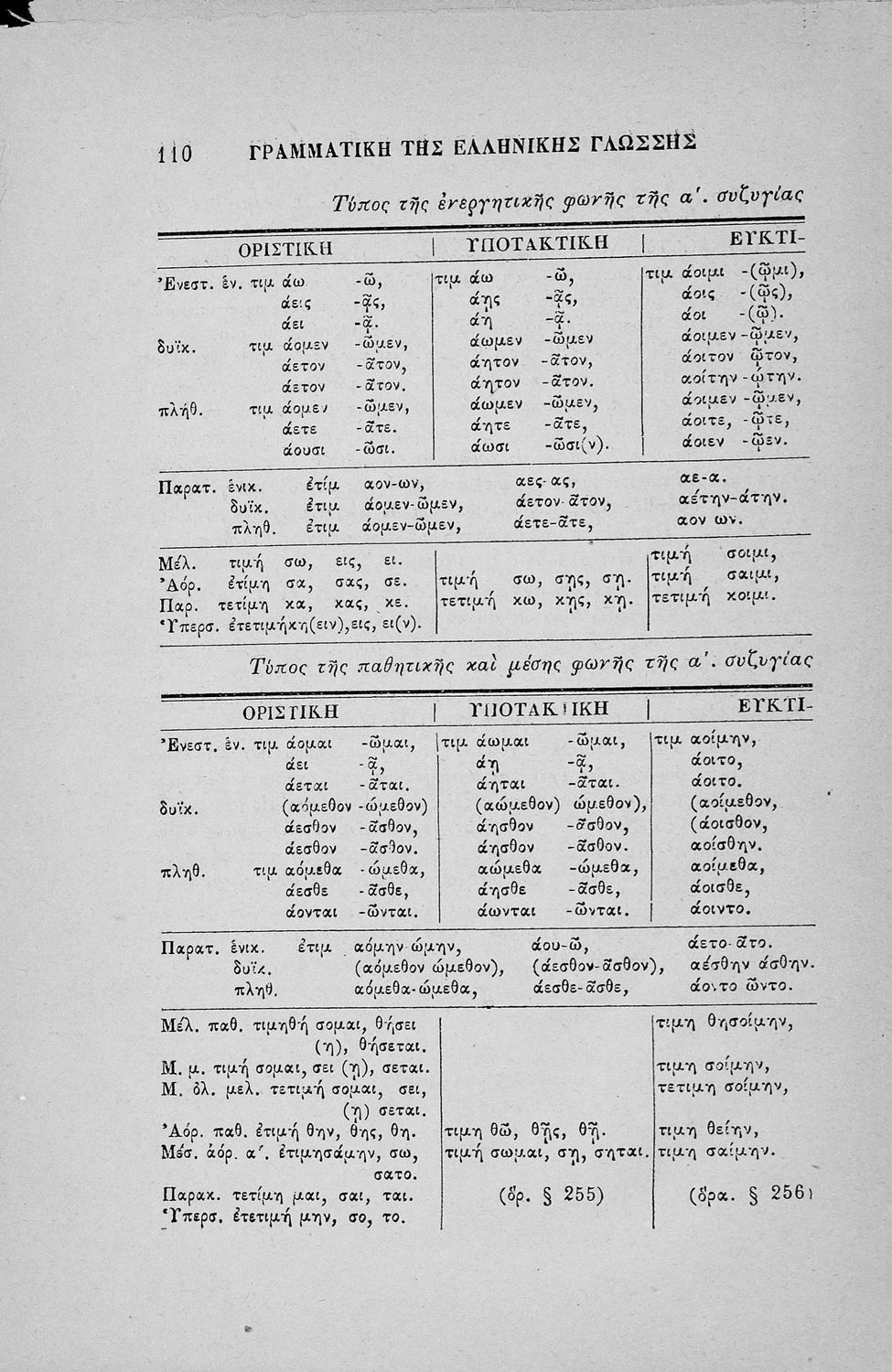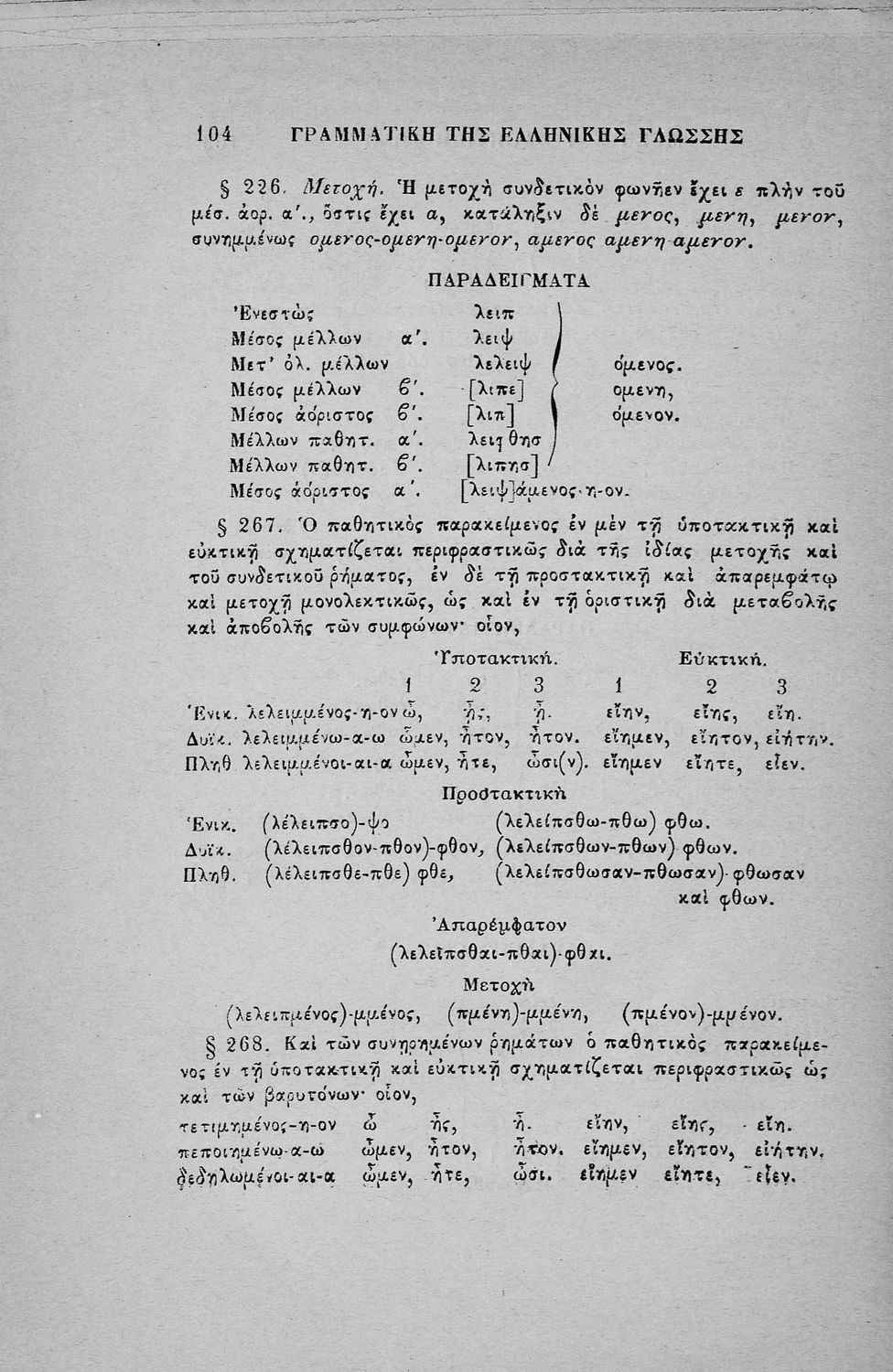 Σχολικό εγχειρίδιο Αρχαίων Ελληνικών για τα Ελληνικά Σχολεία, Παρθεναγωγεία και Γυμνάσια που περιέχει τους κανόνες γραμματικής και είναι χωρισμένο σε φθογγολογικό, τυπολογικό και ετυμολογικό μέρος.