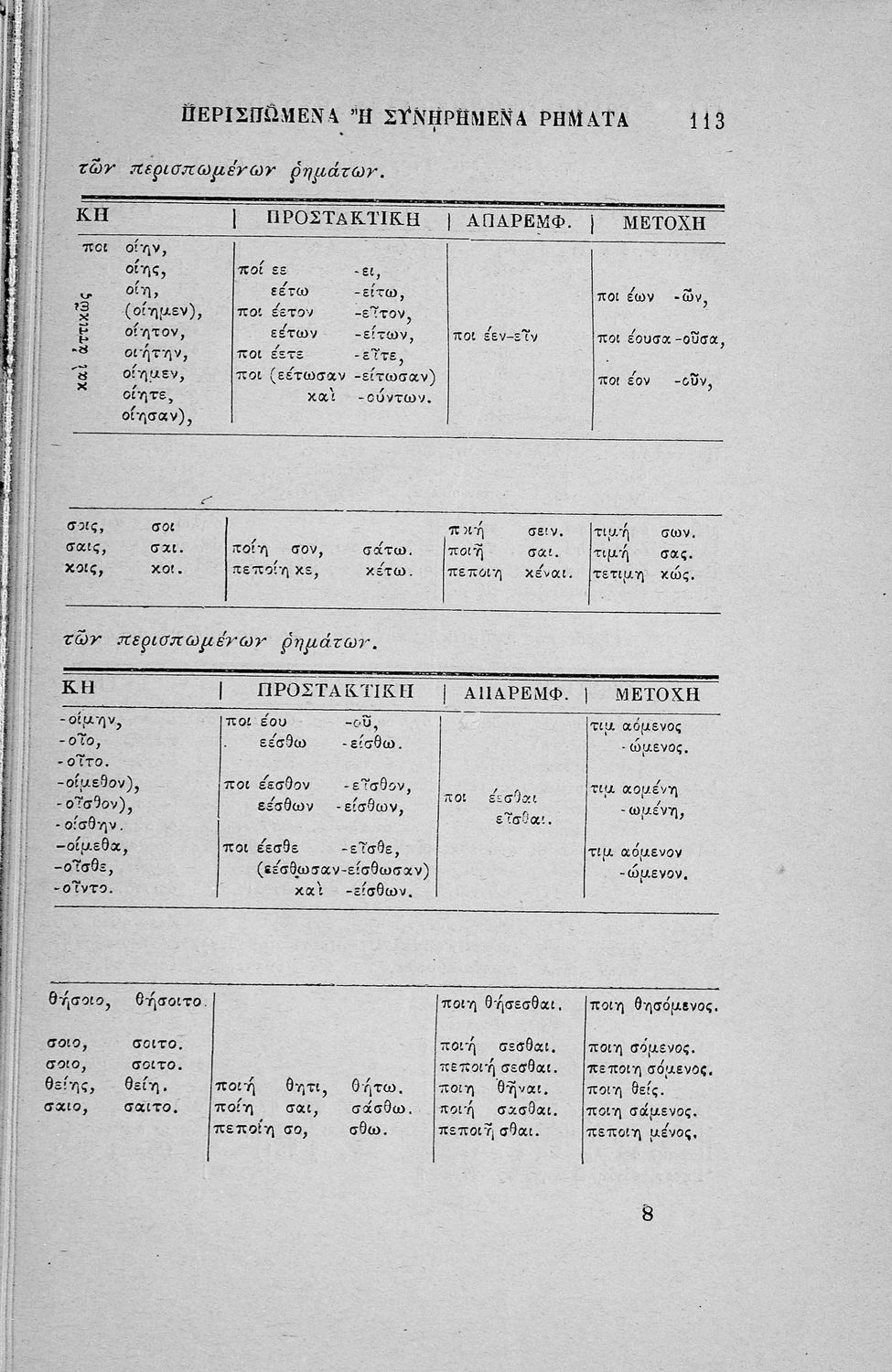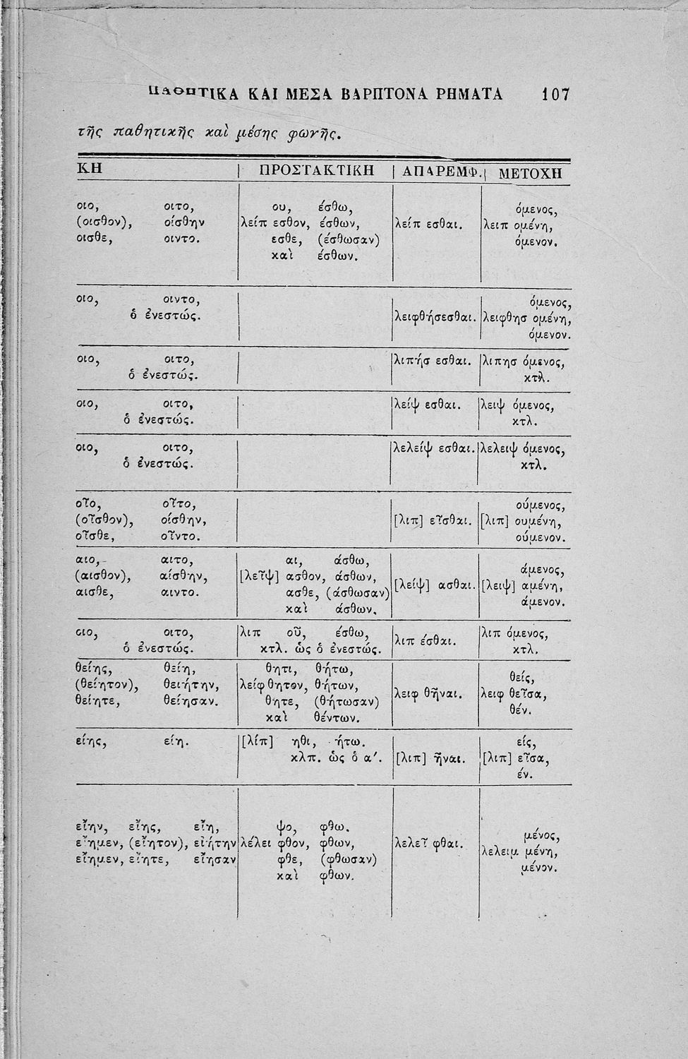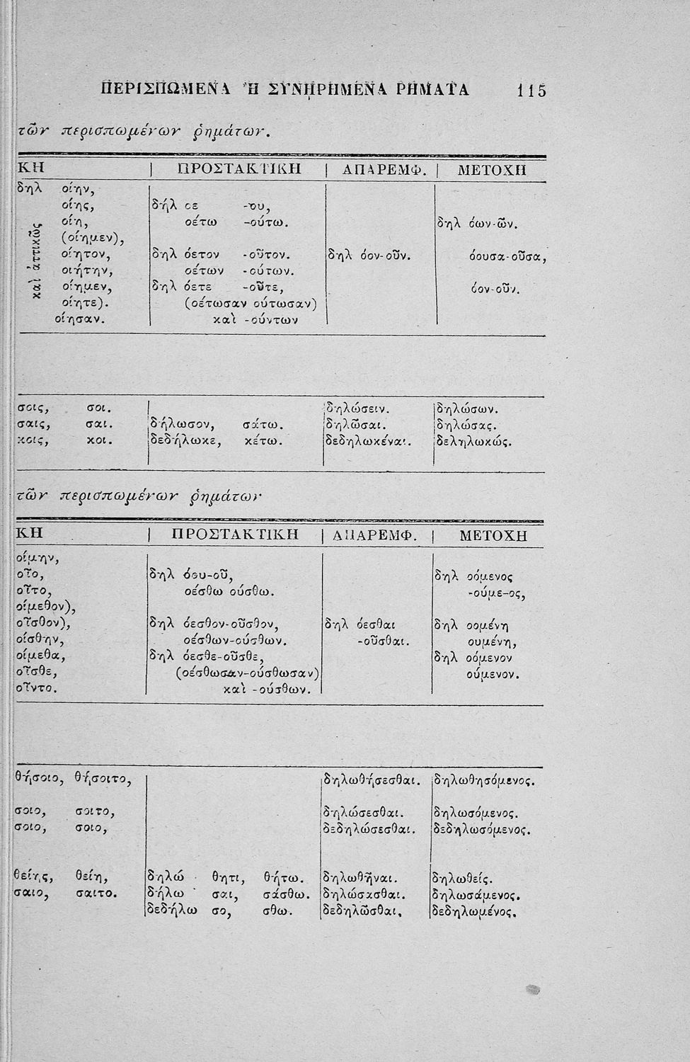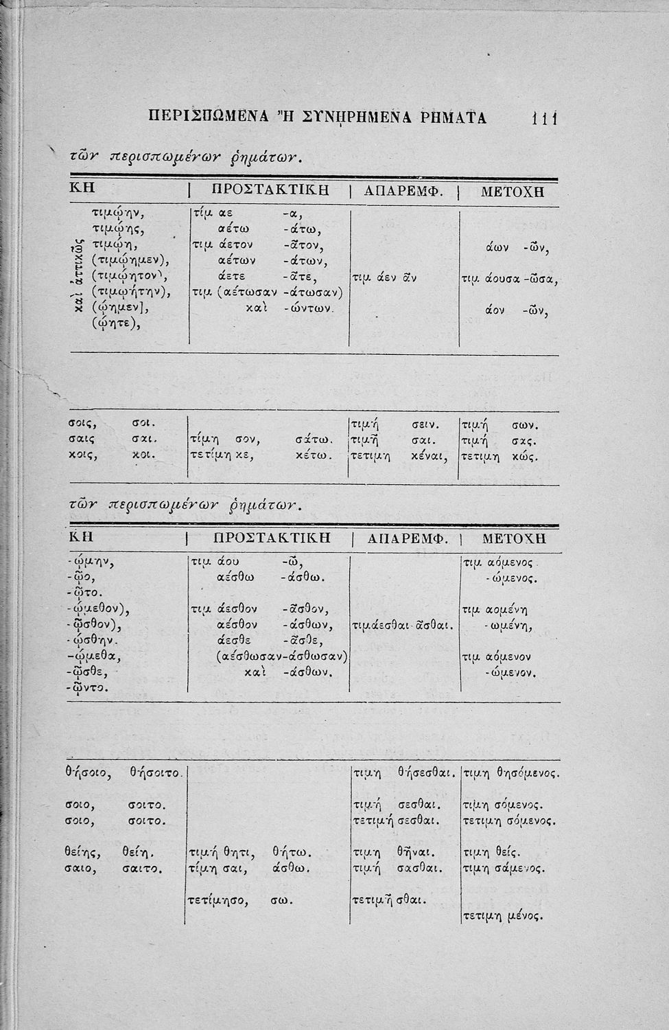 Μαθητικό βοήθημα Αρχαίων Ελληνικών για τα Γυμνάσια, Παρθεναγωγεία και Ελληνικά σχολεία το οποίο περιέχει κατάλογο ανωμάλων ρημάτων της Αττικής διαλέκτου.