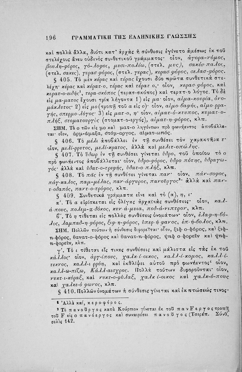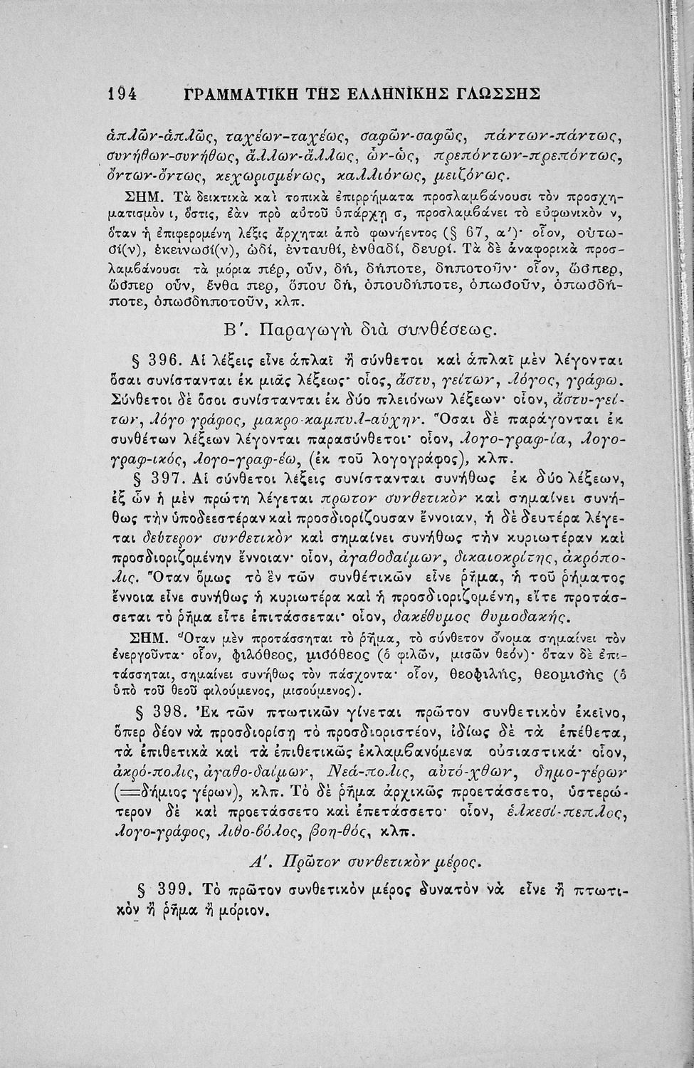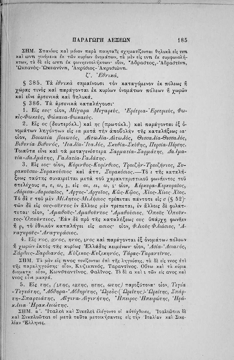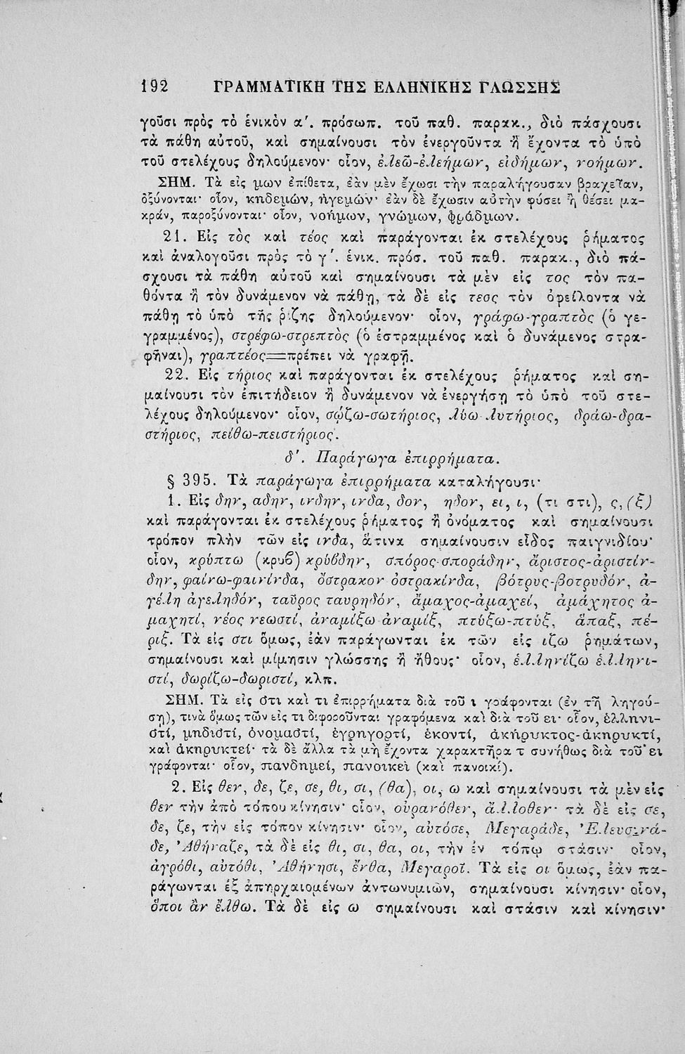 Σχολικό εγχειρίδιο Αρχαίων Ελληνικών για τα Ελληνικά Σχολεία, Παρθεναγωγεία και Γυμνάσια που περιέχει τους κανόνες γραμματικής και είναι χωρισμένο σε φθογγολογικό, τυπολογικό και ετυμολογικό μέρος.