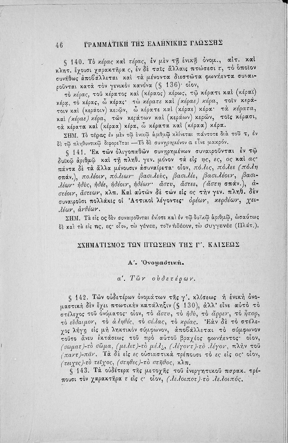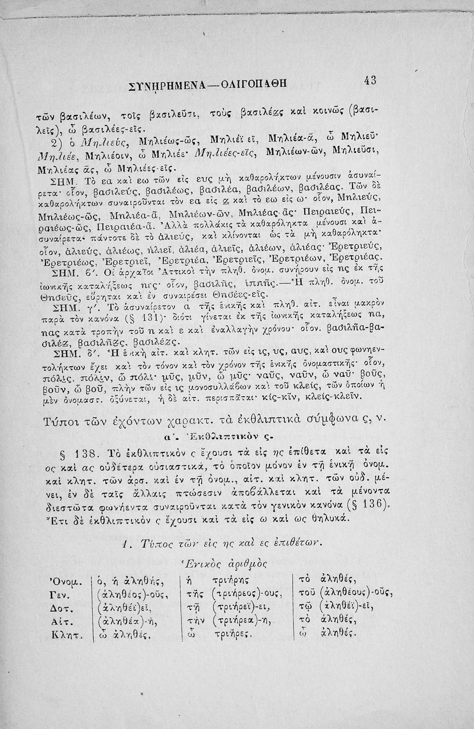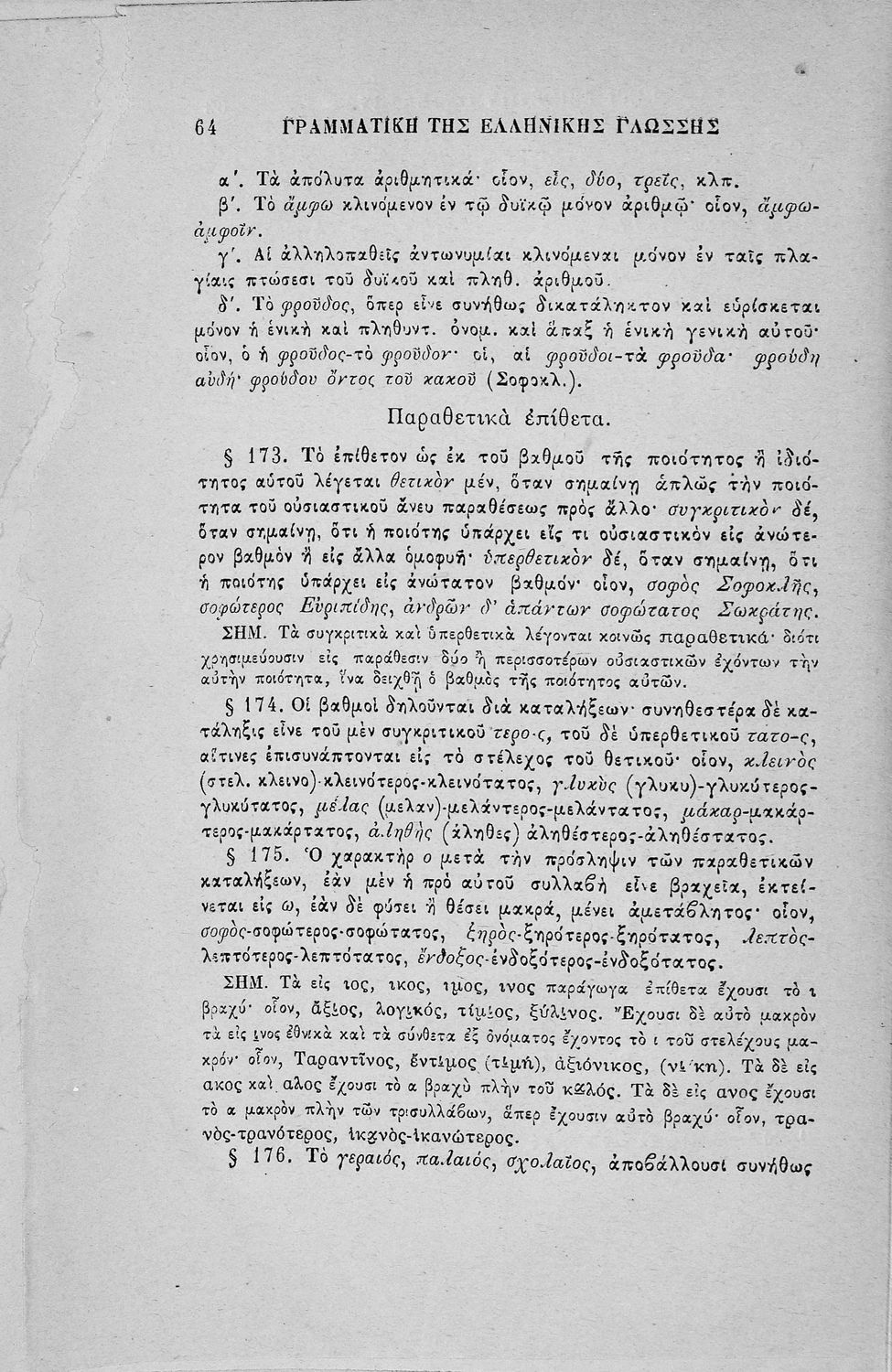 Σχολικό εγχειρίδιο Αρχαίων Ελληνικών για τα Ελληνικά Σχολεία, Παρθεναγωγεία και Γυμνάσια που περιέχει τους κανόνες γραμματικής και είναι χωρισμένο σε φθογγολογικό, τυπολογικό και ετυμολογικό μέρος.