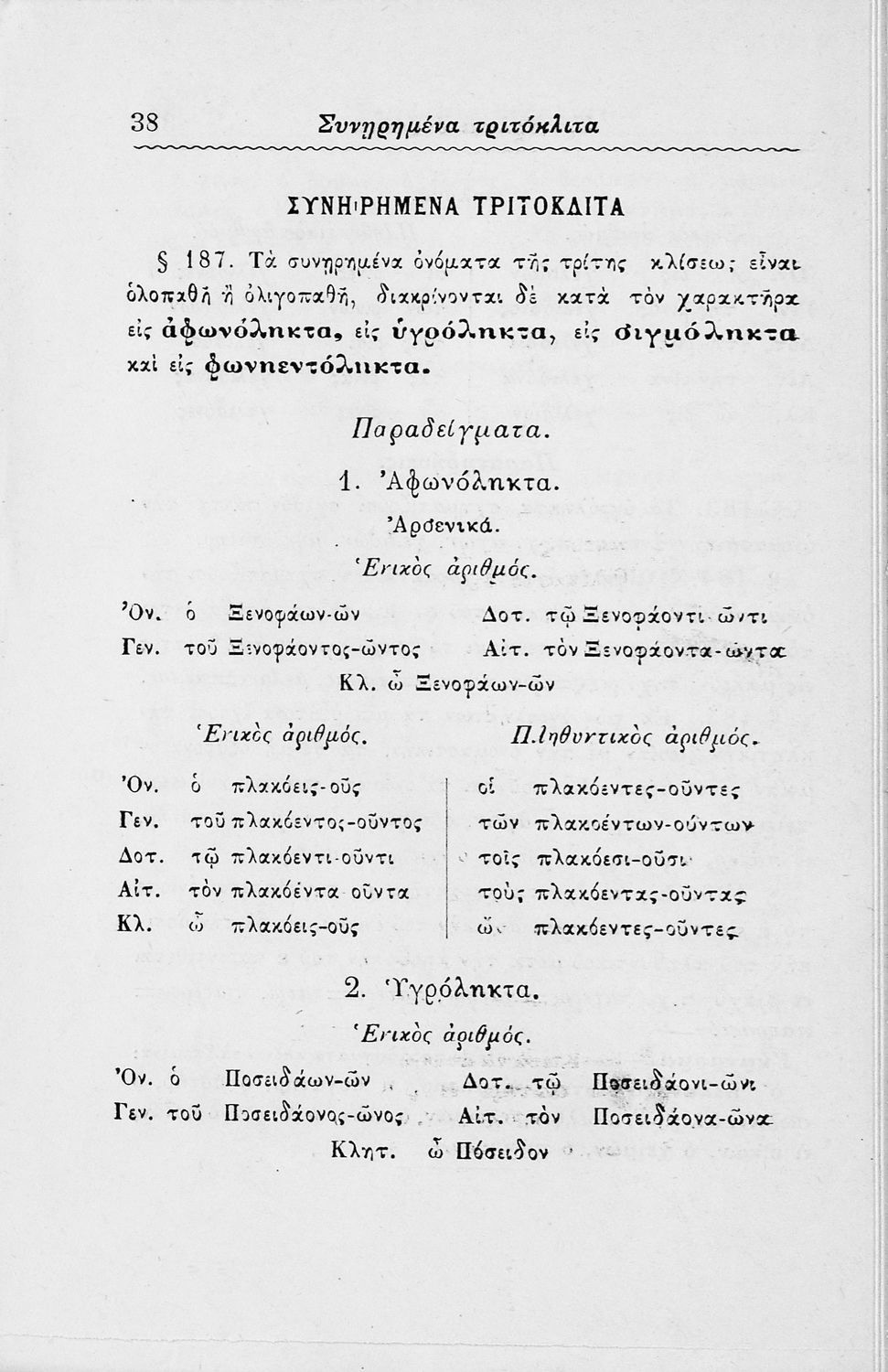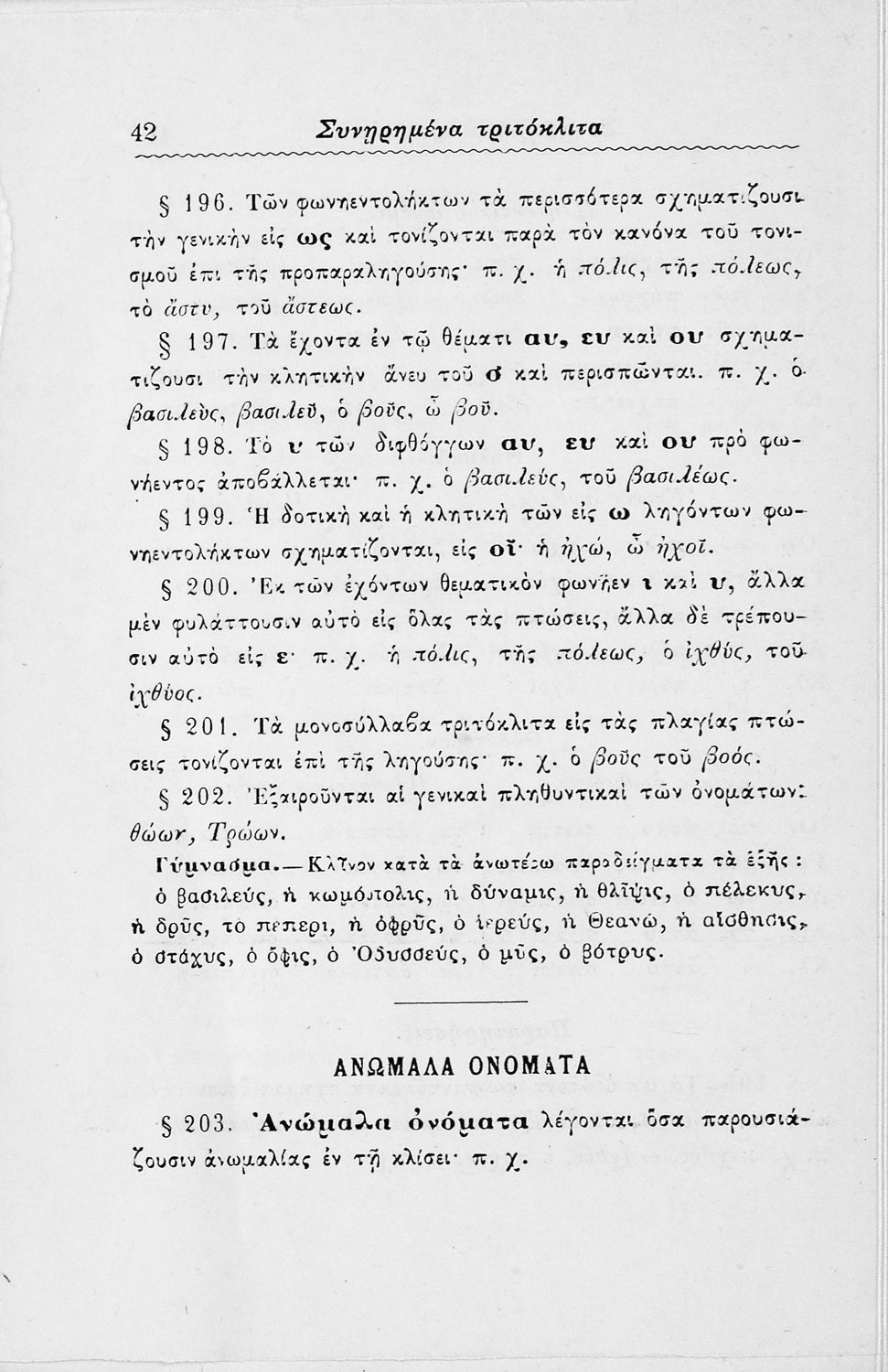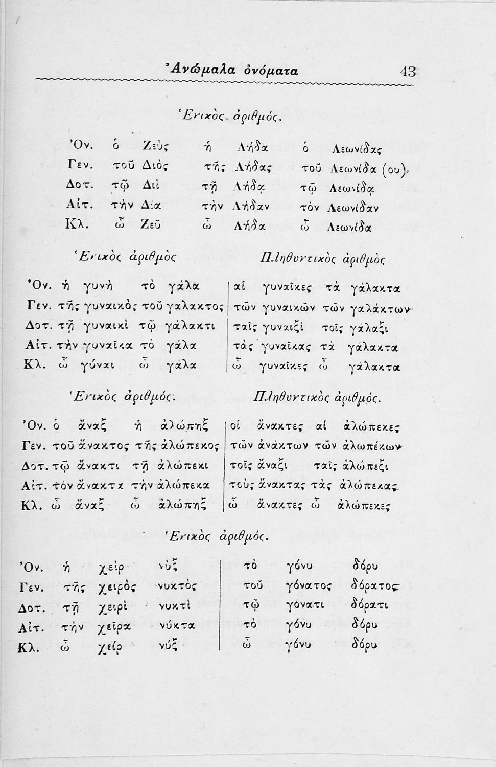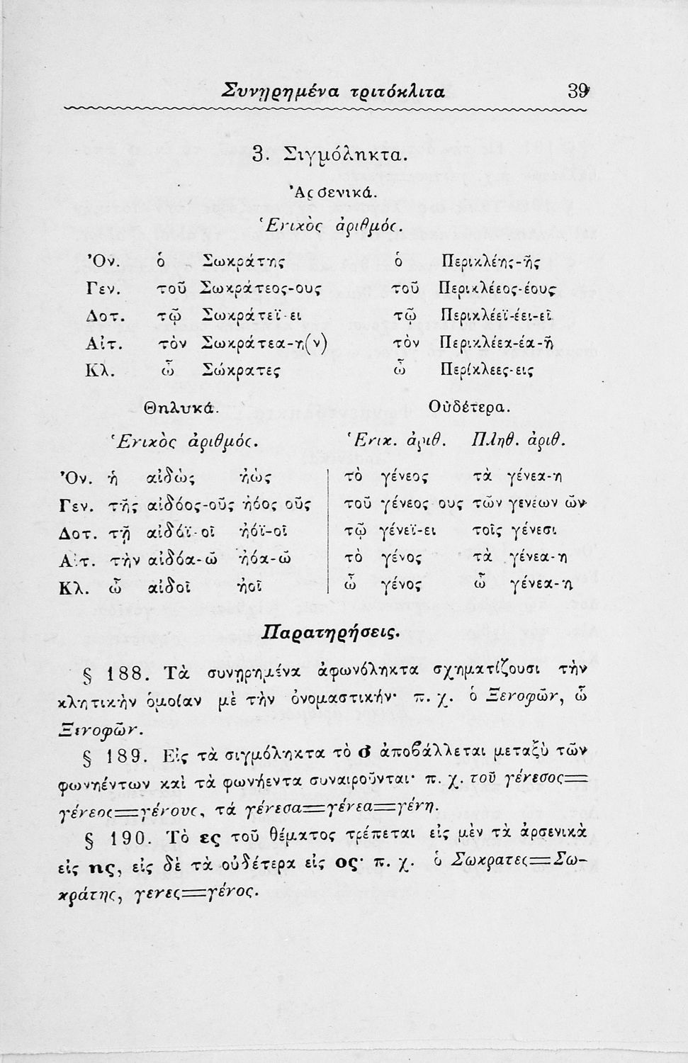 Σχολικό εγχειρίδιο Αρχαίων Ελληνικών Δημοτικού που περιλαμβάνει τους κανόνες γραμματικής και είναι χωρισμένο σε φθογγολογικό, τυπικό και ετυμολογικό μέρος.