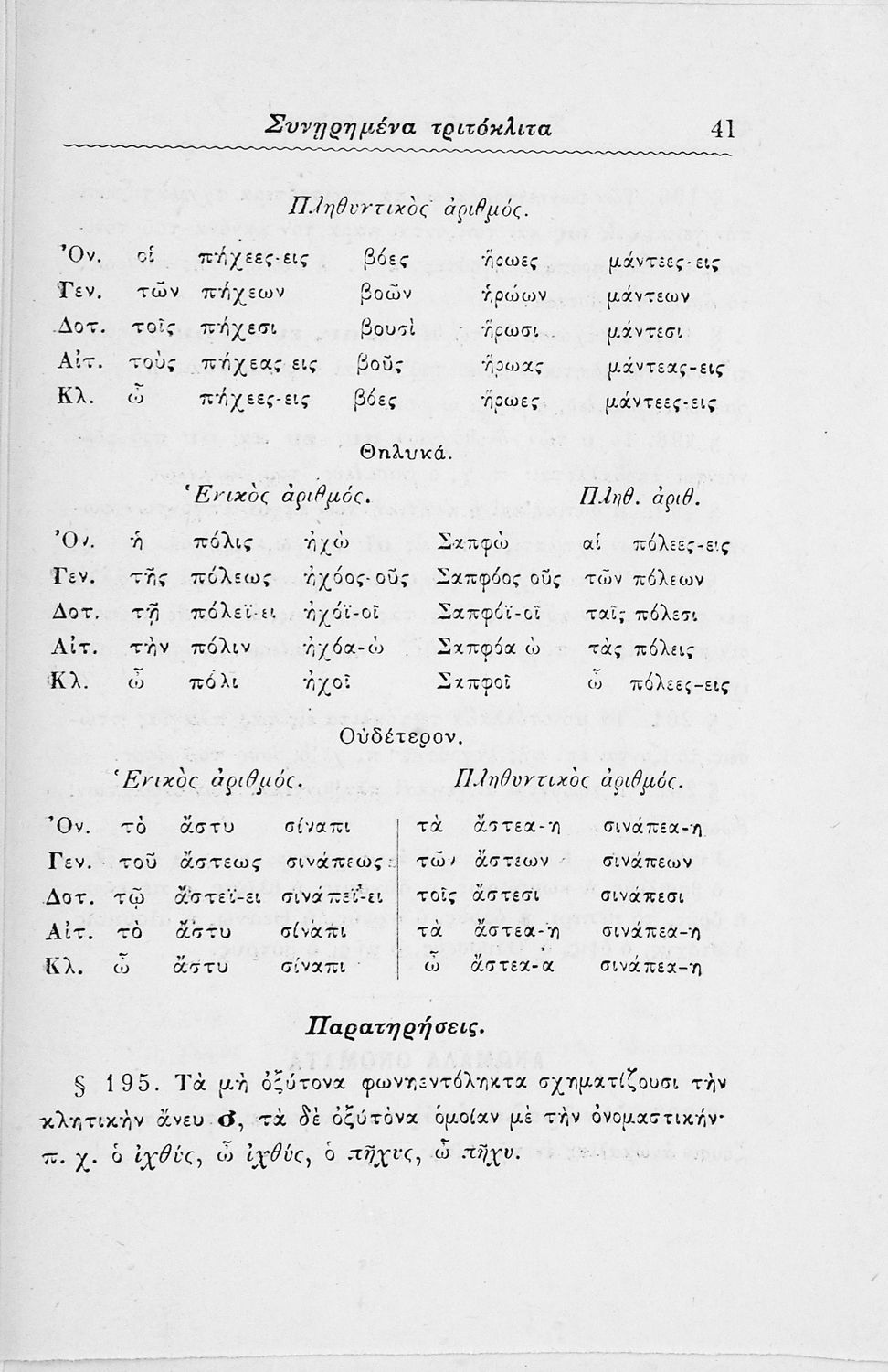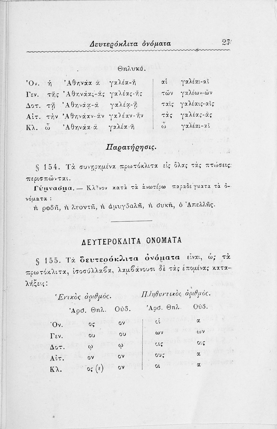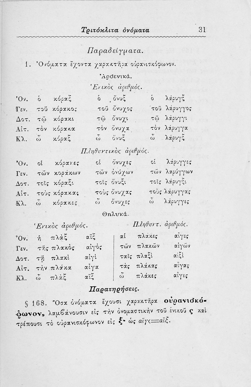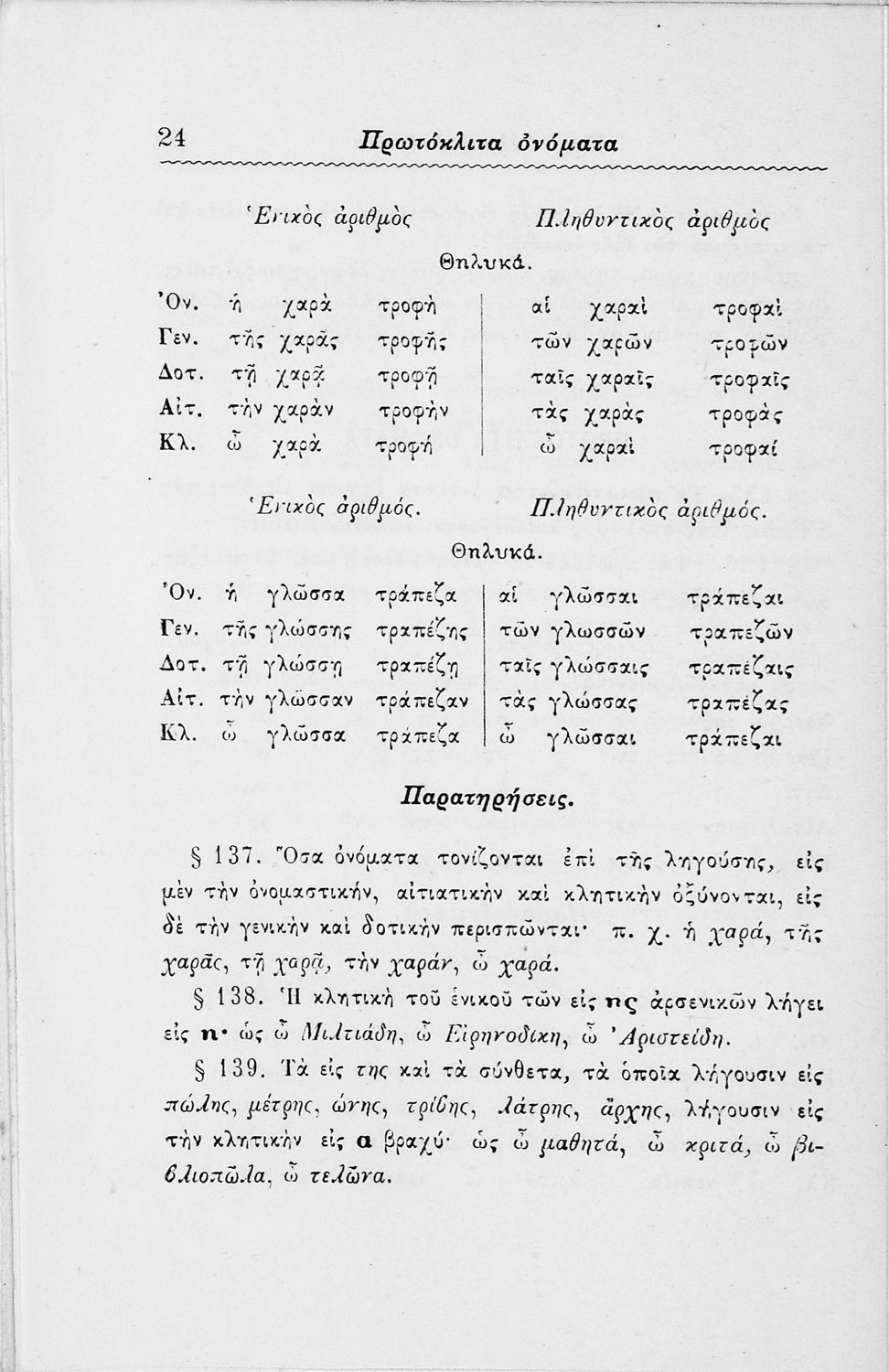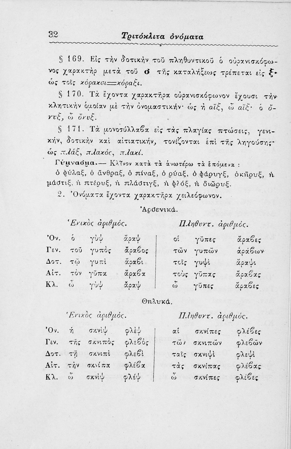Σχολικό εγχειρίδιο Αρχαίων Ελληνικών Δημοτικού που περιλαμβάνει τους κανόνες γραμματικής και είναι χωρισμένο σε φθογγολογικό, τυπικό και ετυμολογικό μέρος.