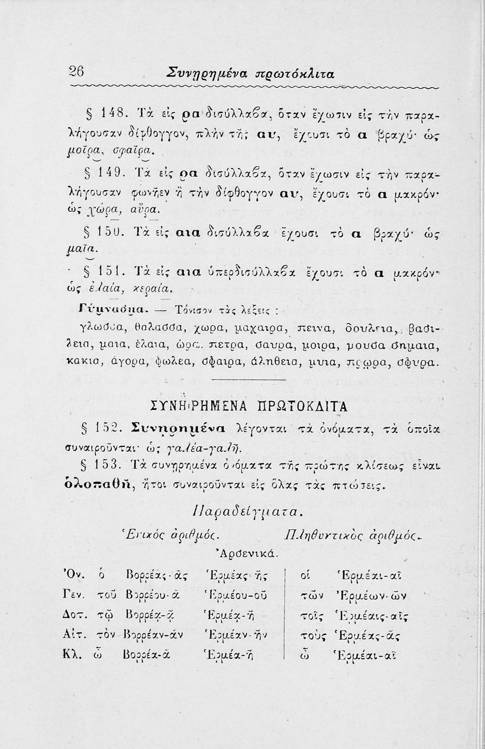 Τίτλος: Επίτομος γραμματική της ελληνικής γλώσσης, τεύχος δεύτερον προς χρήσιν των εκπαιδευομένων εν ταις ανωτέραις τάξεσι των Δημοτικών Σχολείων αρρένων και θηλέων