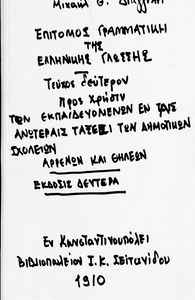 Επίτομος γραμματική της ελληνικής γλώσσης, τεύχος δεύτερον προς χρήσιν των εκπαιδευομένων εν ταις ανωτέραις τάξεσι των Δημοτικών Σχολείων αρρένων και θηλέων