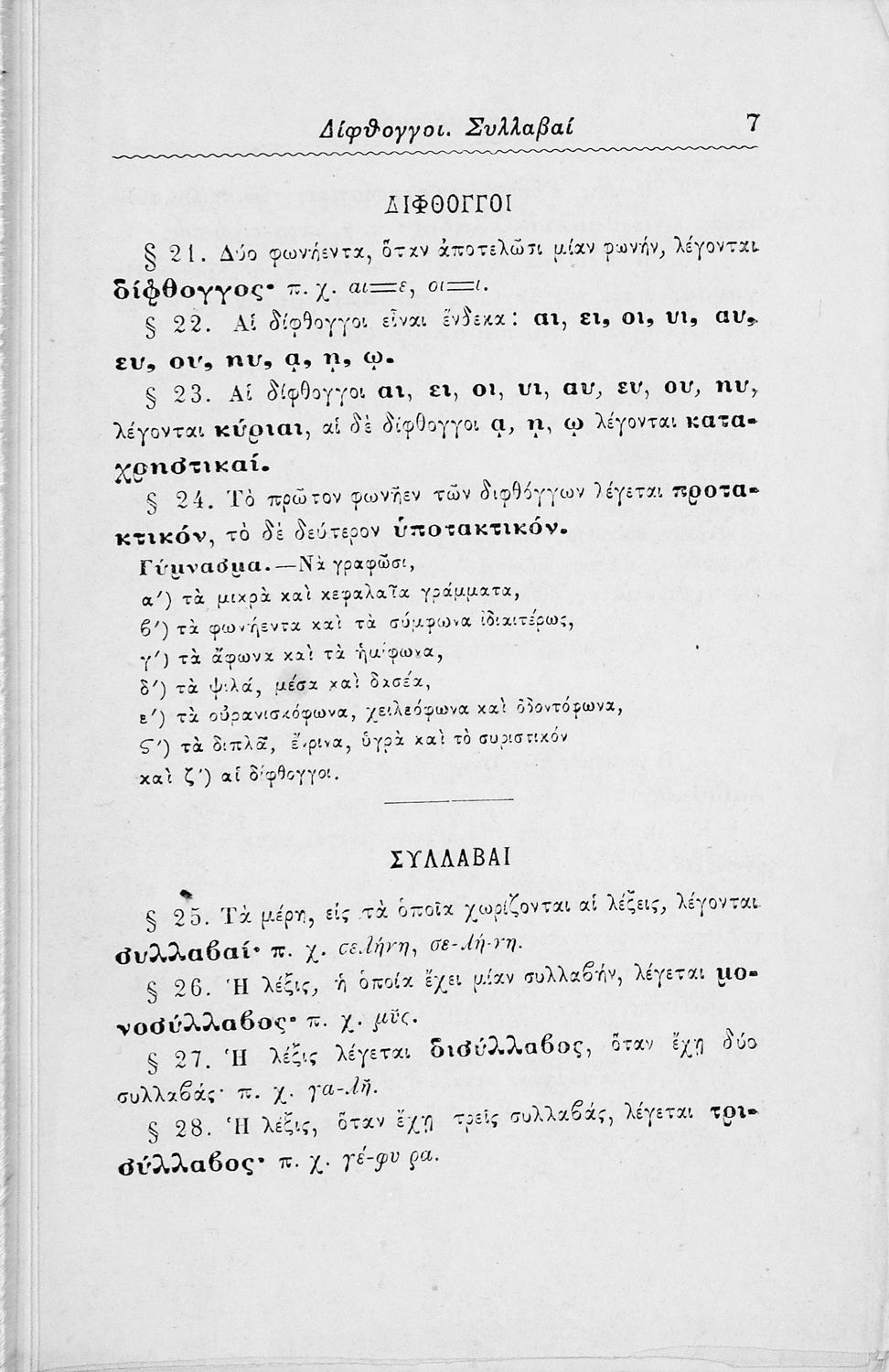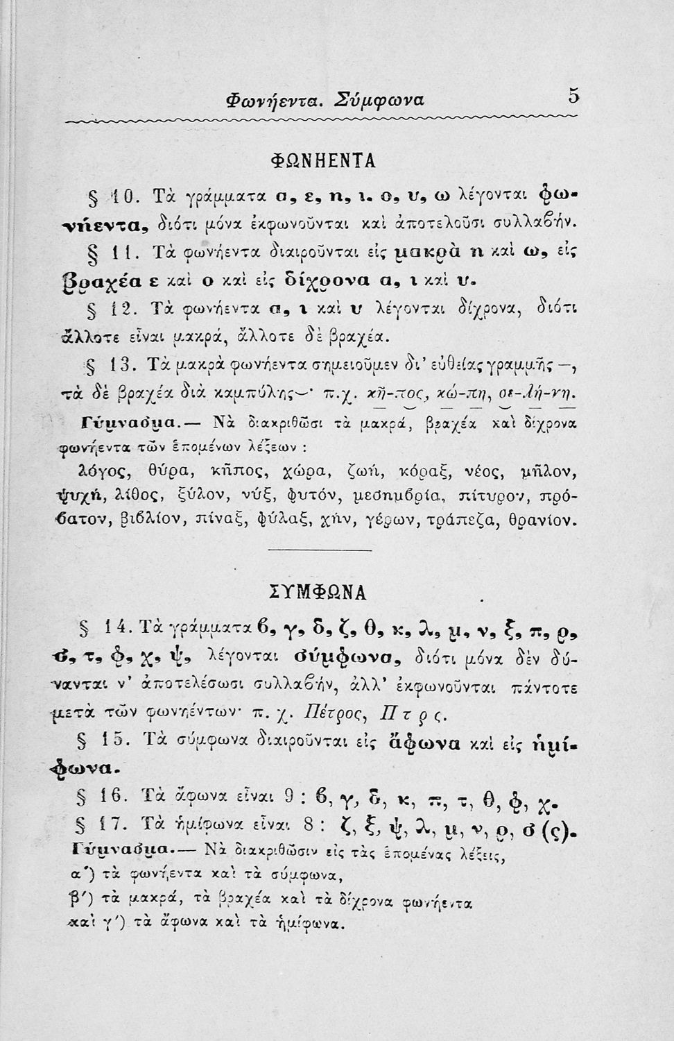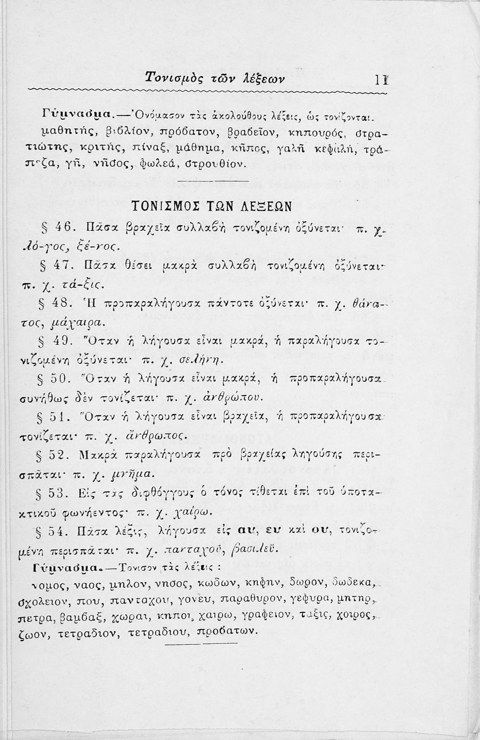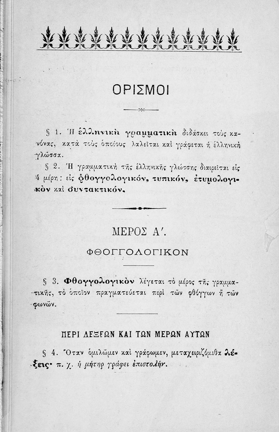 Σχολικό εγχειρίδιο Αρχαίων Ελληνικών Δημοτικού που περιλαμβάνει τους κανόνες γραμματικής και είναι χωρισμένο σε φθογγολογικό, τυπικό και ετυμολογικό μέρος.