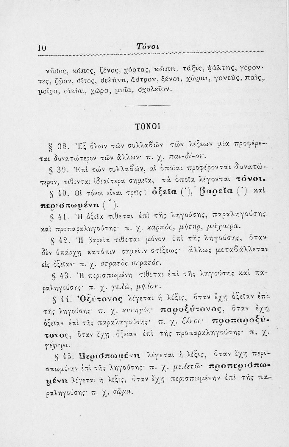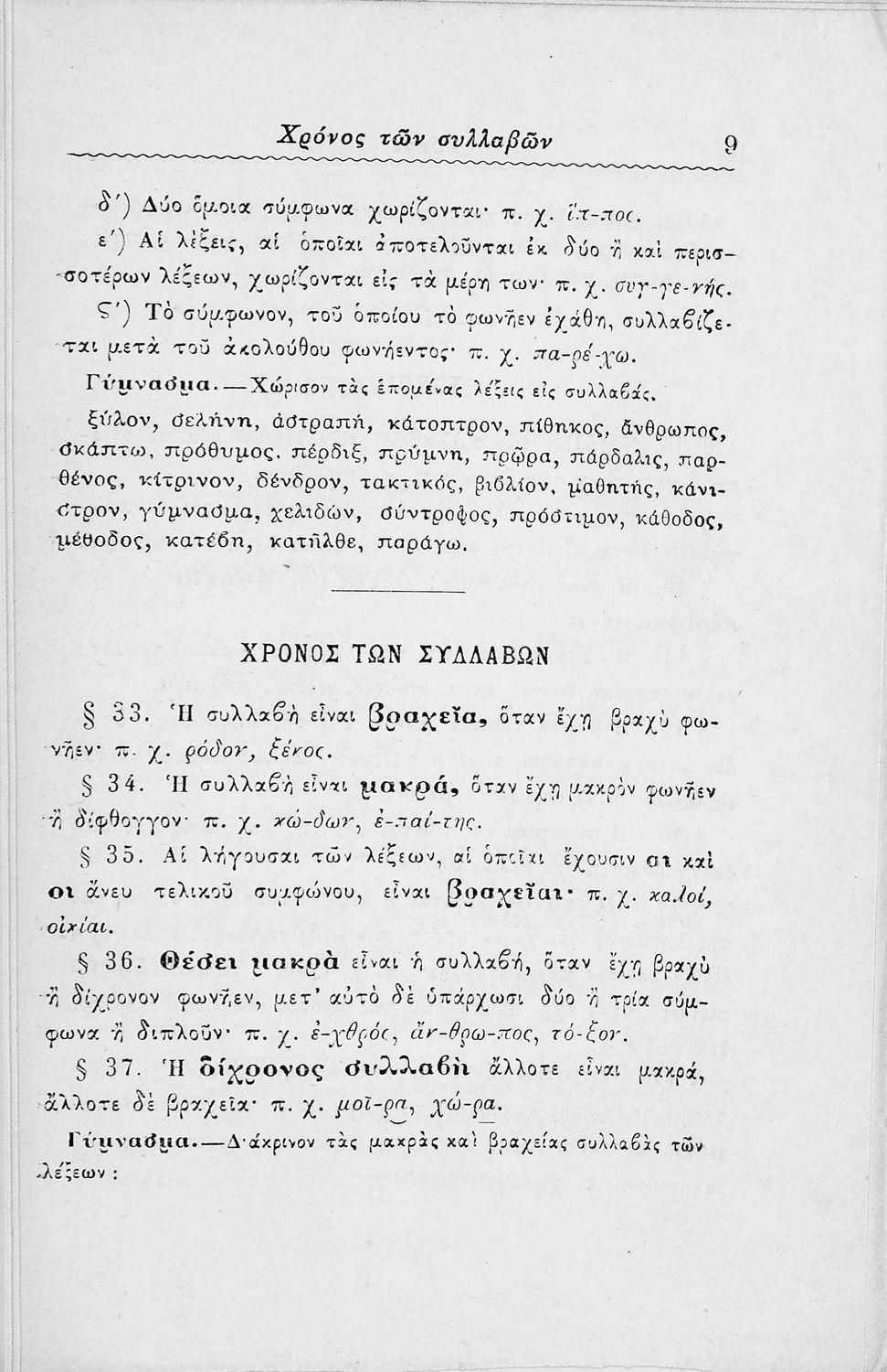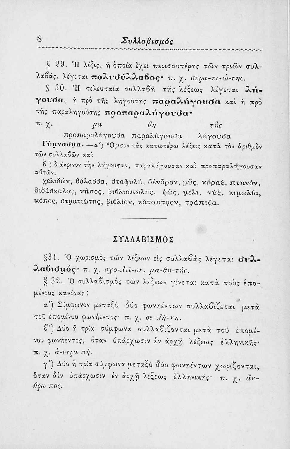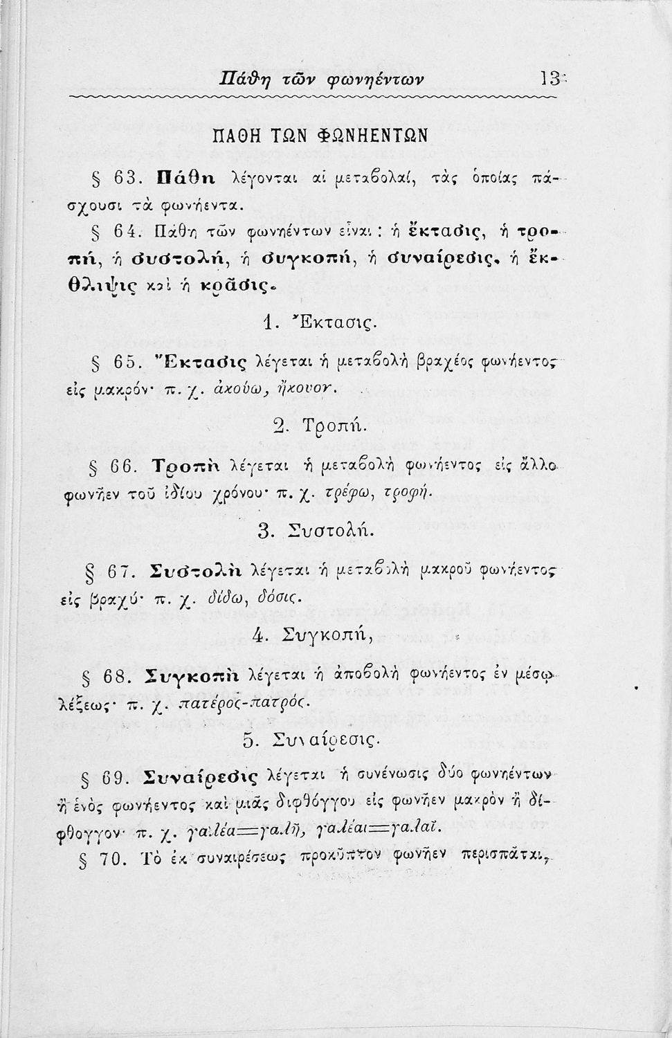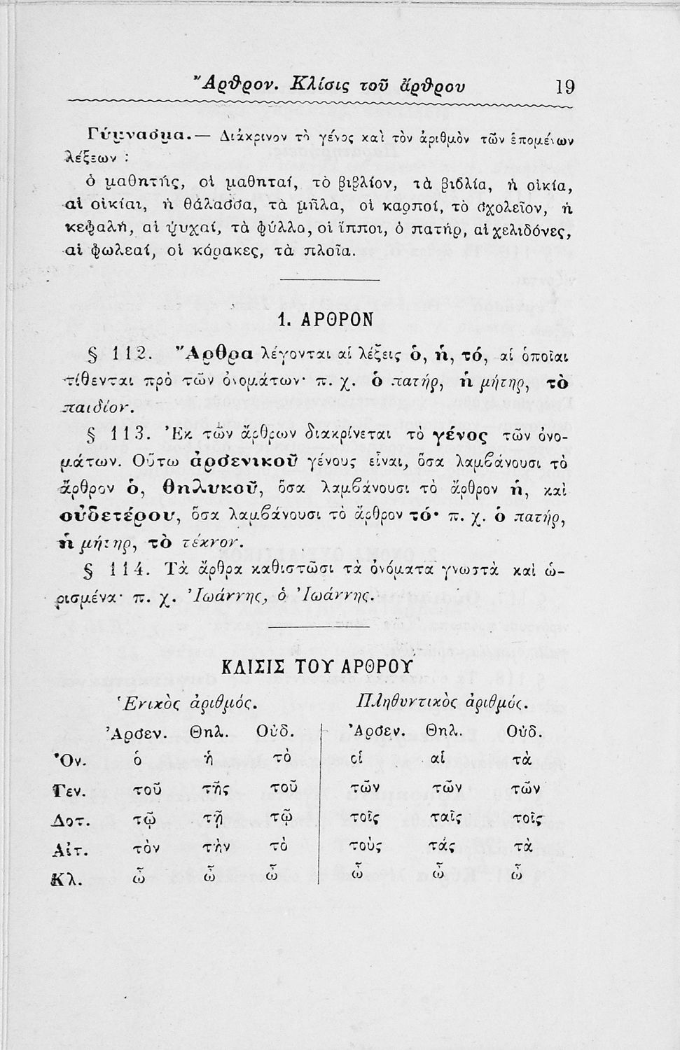 Σχολικό εγχειρίδιο Αρχαίων Ελληνικών Δημοτικού που περιλαμβάνει τους κανόνες γραμματικής και είναι χωρισμένο σε φθογγολογικό, τυπικό και ετυμολογικό μέρος.