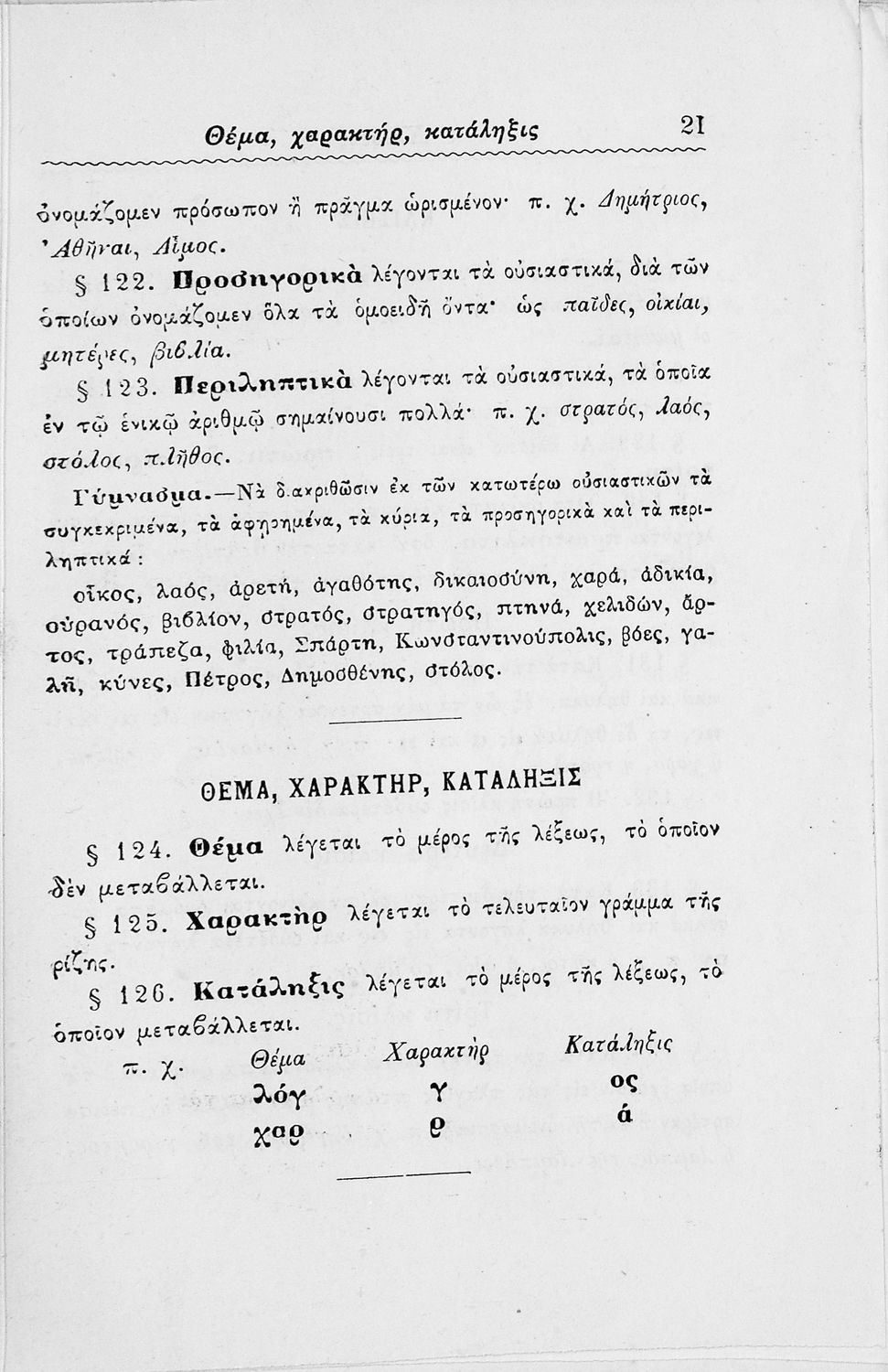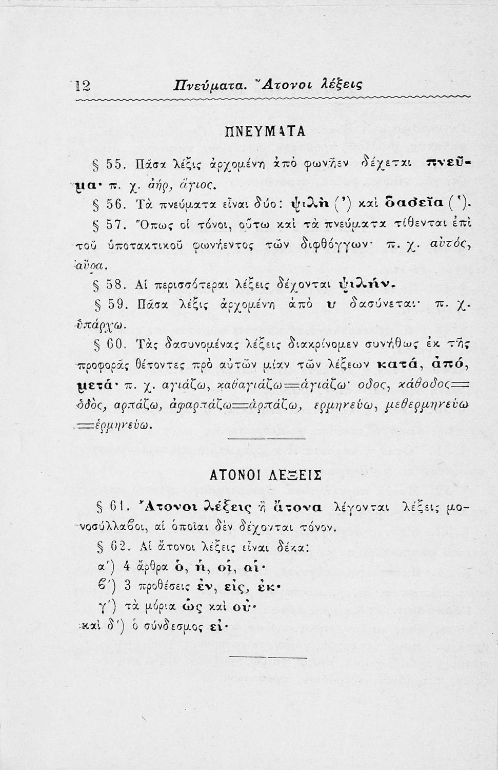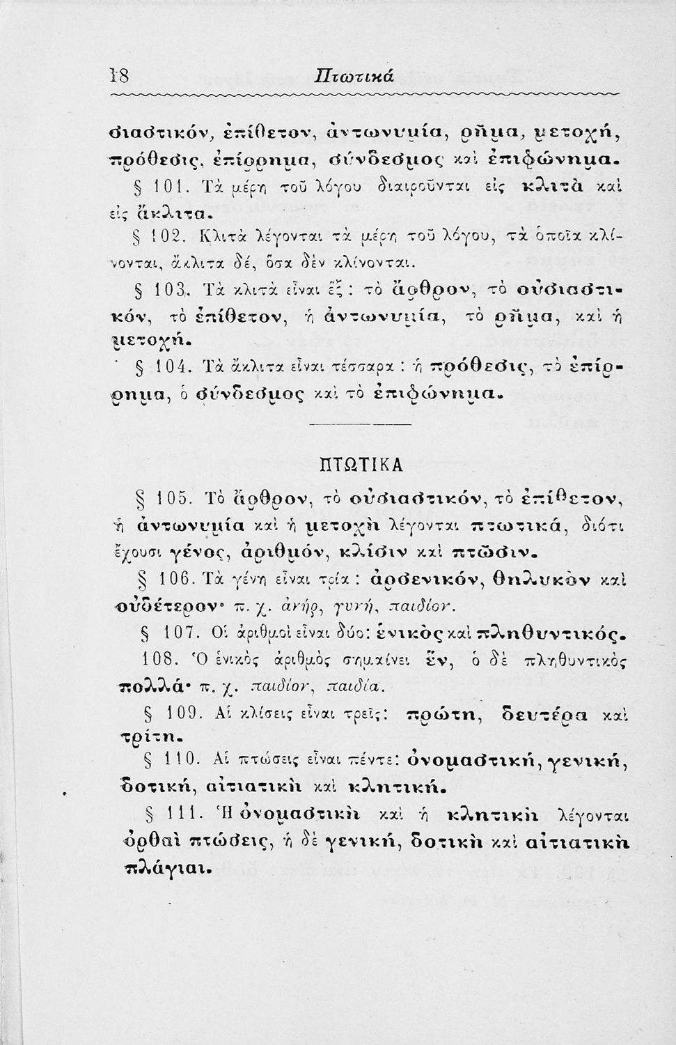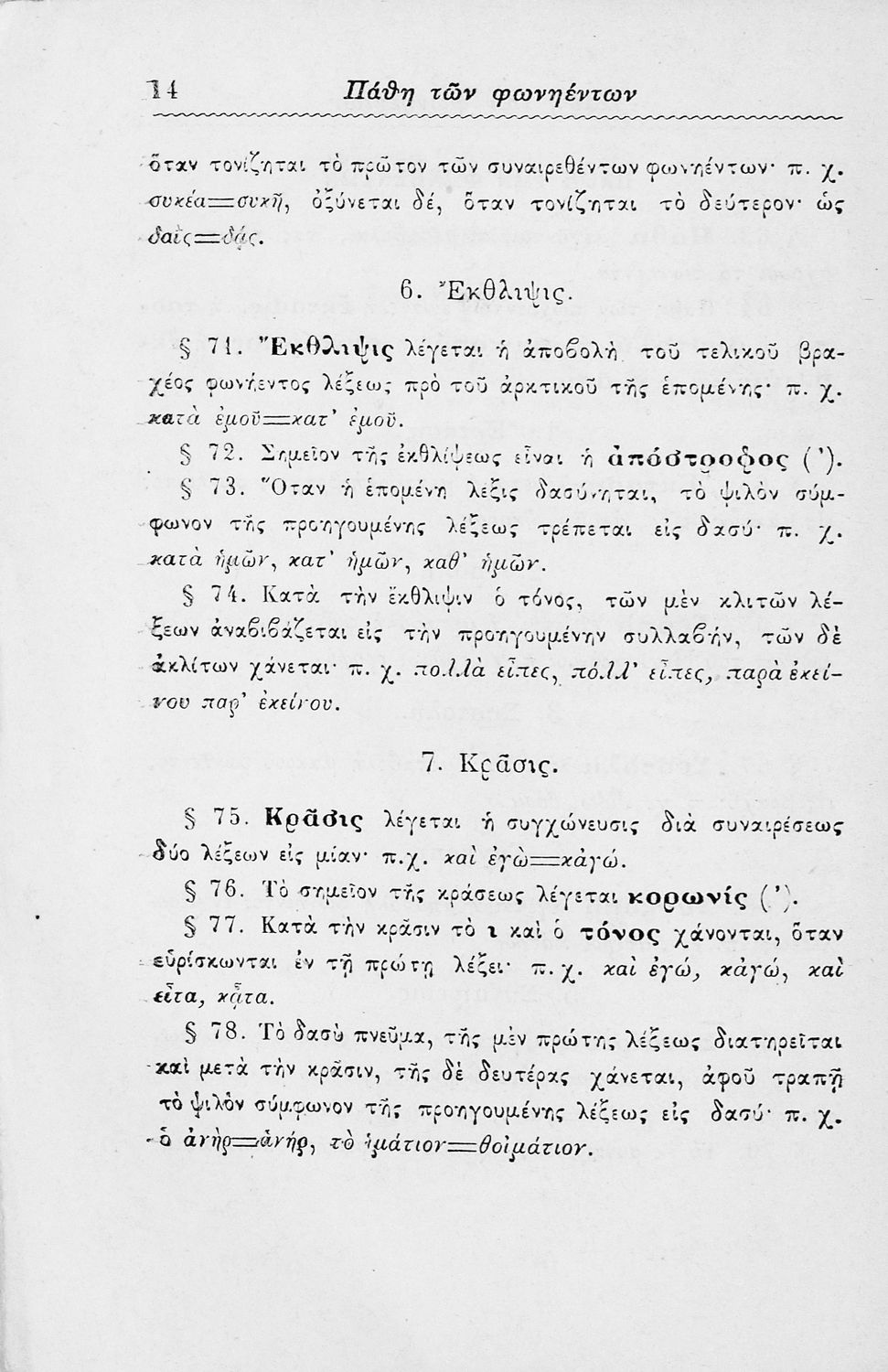 Σχολικό εγχειρίδιο Αρχαίων Ελληνικών Δημοτικού που περιλαμβάνει τους κανόνες γραμματικής και είναι χωρισμένο σε φθογγολογικό, τυπικό και ετυμολογικό μέρος.