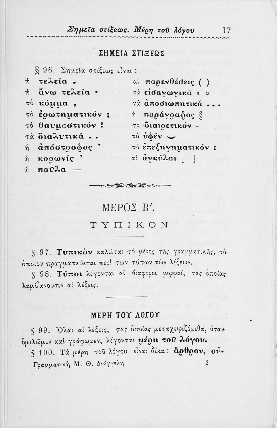 Σχολικό εγχειρίδιο Γλώσσας Δημοτικού που περιλαμβάνει τη γραμματική της νέας ελληνικής και είναι χωρισμένο σε φθογγολογικό, τυπικό και ετυμολογικό μέρος.
