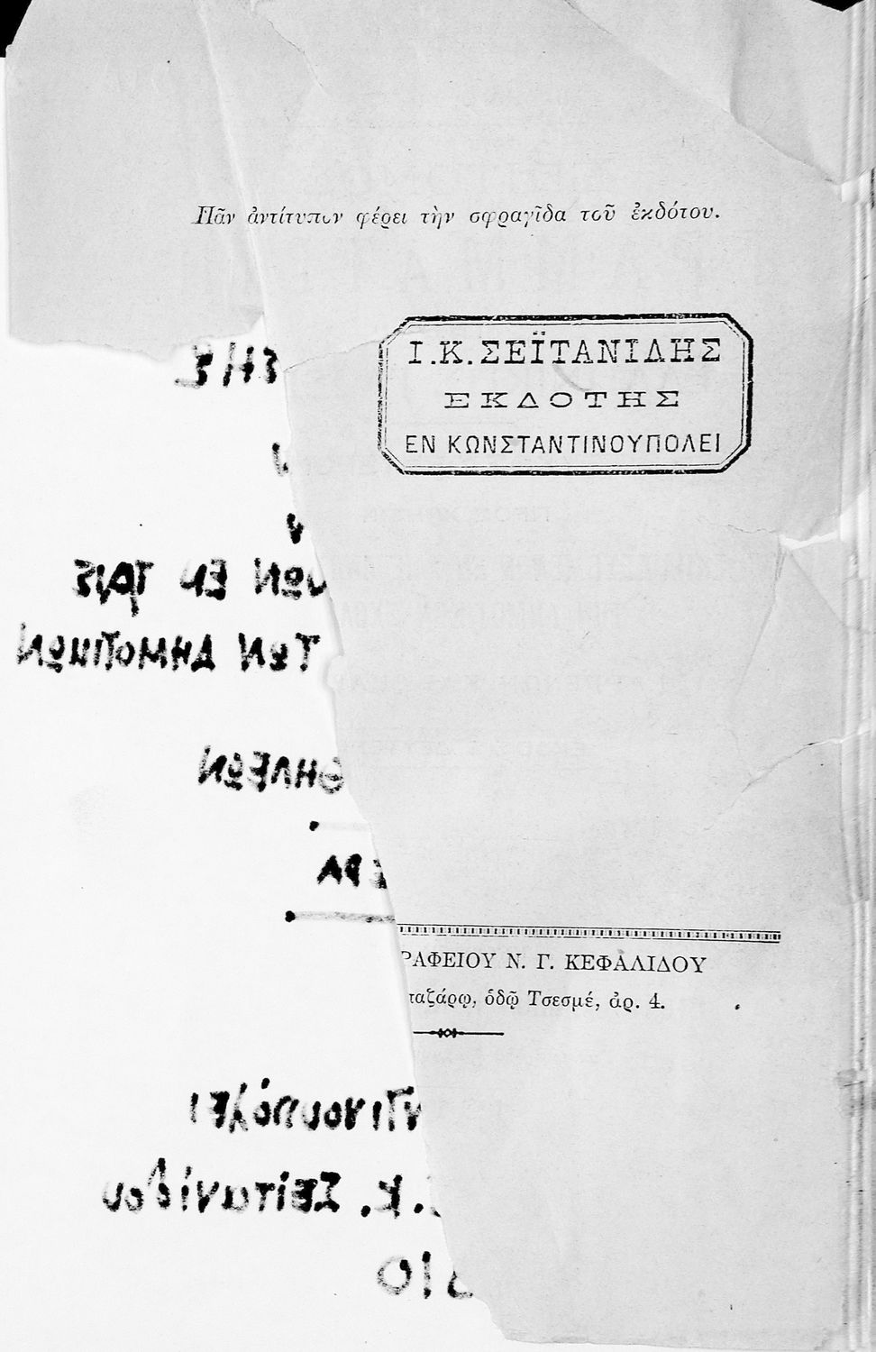 Εκδότης: Βιβλιοπωλείον Ι. Κ. Σεϊτανίδου