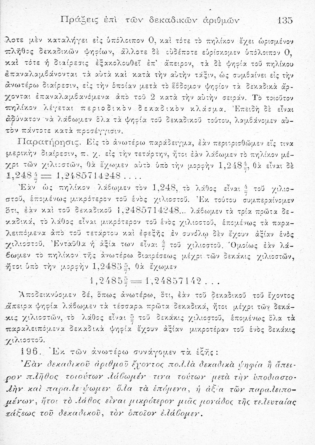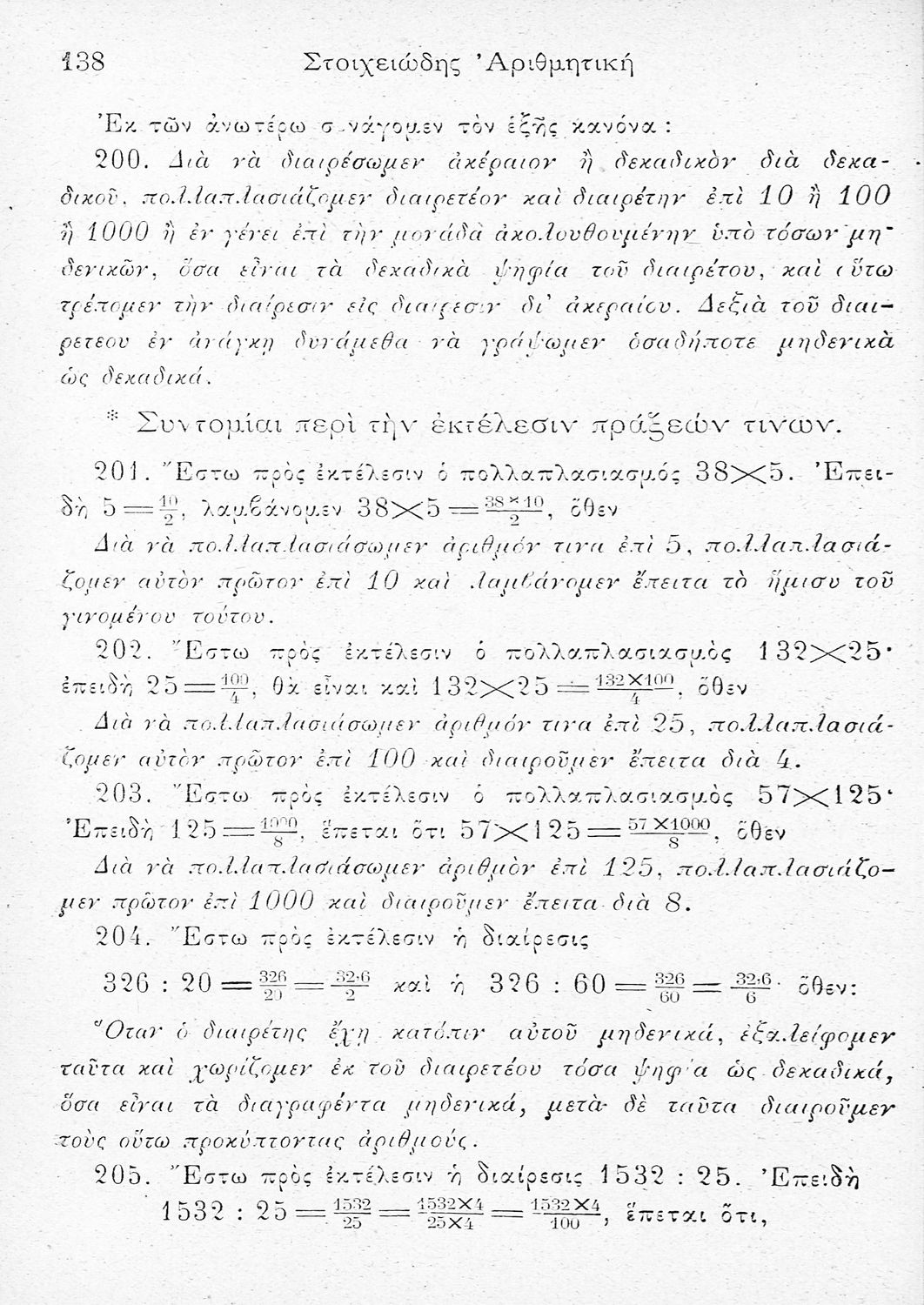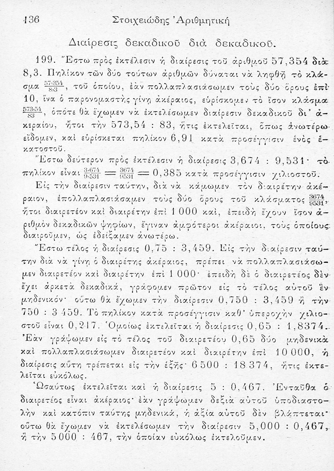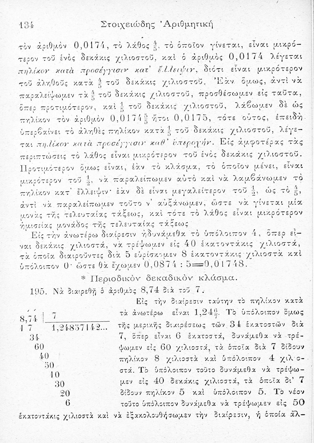 Σχολικό εγχειρίδιο για τις τάξεις του Ελληνικού, Παρθεναγωγείου, Αστικού και Σχολαρχείου σχολείου για το μάθημα των Μαθηματικών. Το εγχειρίδιο περιλαμβάνει τους στοιχειώδεις κανόνες της αριθμητικής και τις βασικές γνώσεις των Μαθηματικών, τις πρώτες έννοιες των ακεραίων αριθμών, τις 4 βασικές πράξεις, τα κλάσματα, τους δεκαδικούς αριθμούς, τους συμμιγείς αριθμούς, την απλή και σύνθετη μέθοδο των τριών κ.α.