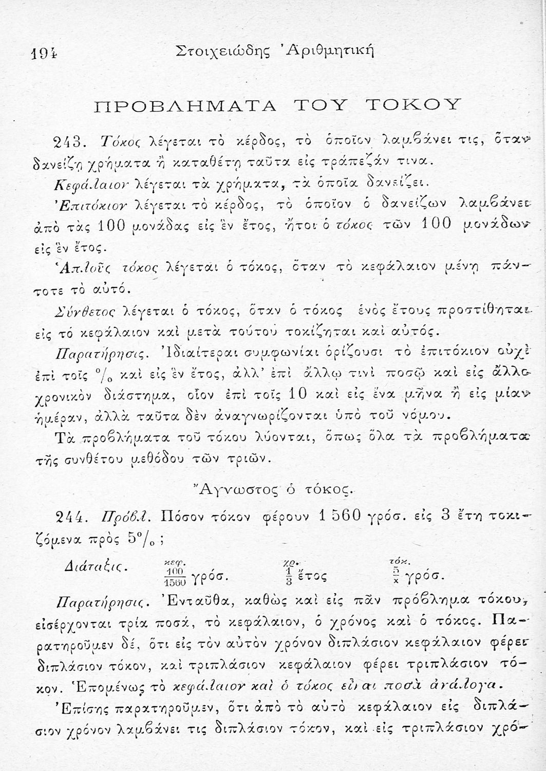 Στοιχειώδης αριθμητική μετά πολλών προβλημάτων εκ των καθ' εκάστην εν χρήσει διά την εν σχολαρχείοις, αστικαίς σχολαίς και παρθεναγωγείοις διδασκαλίαν