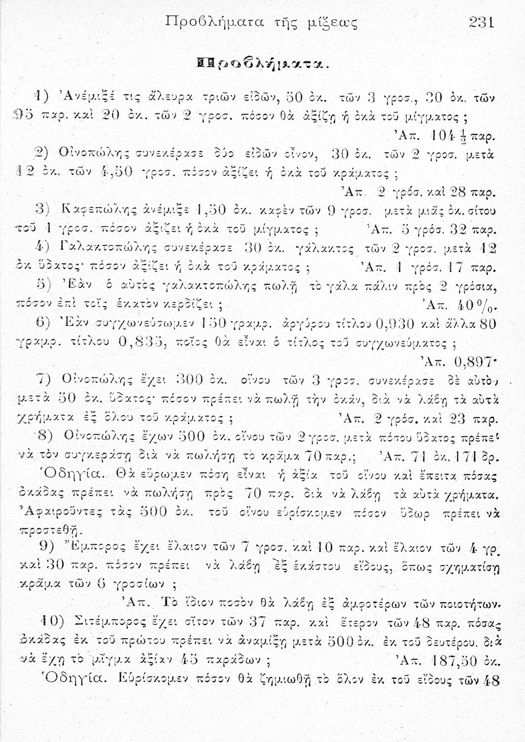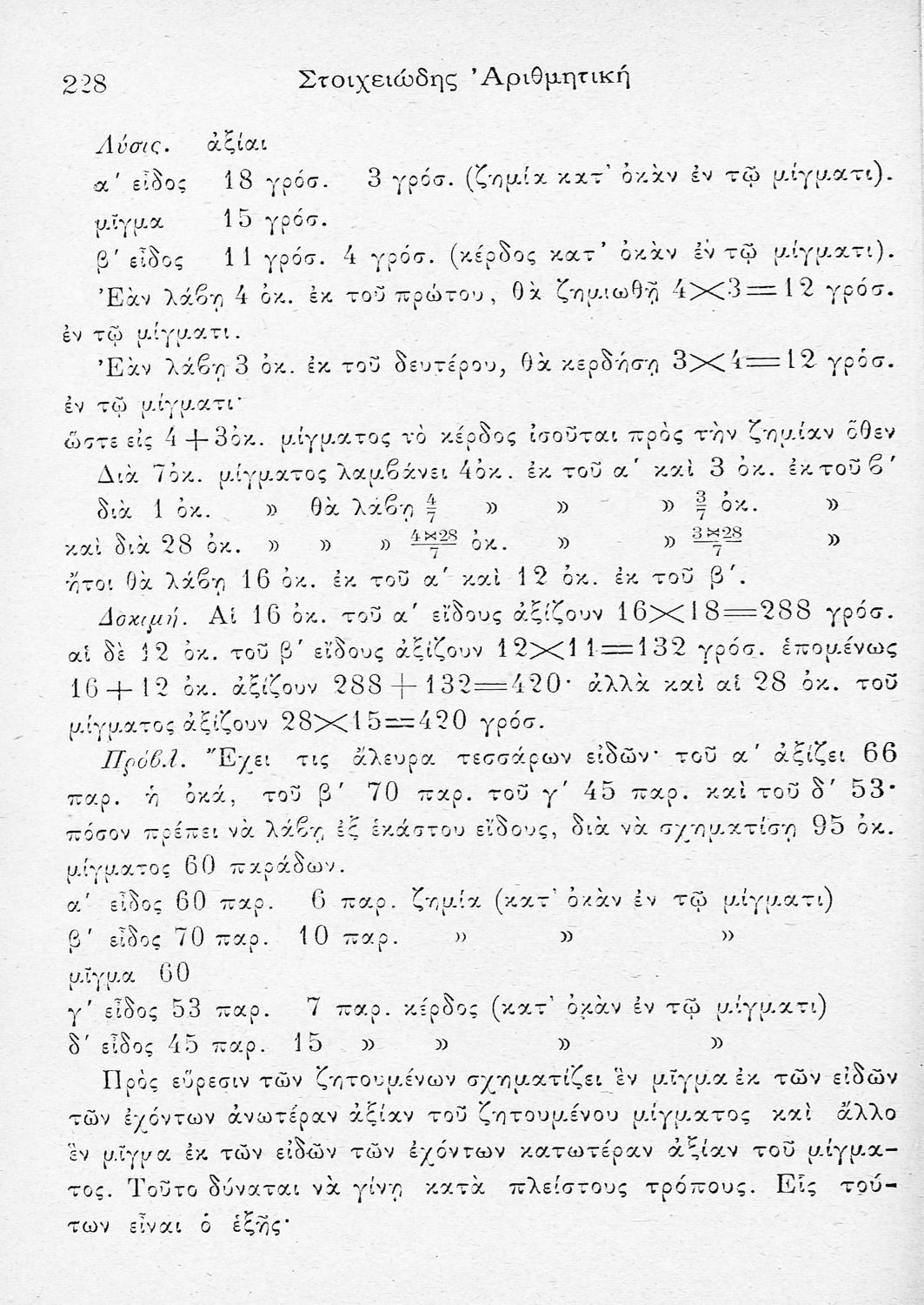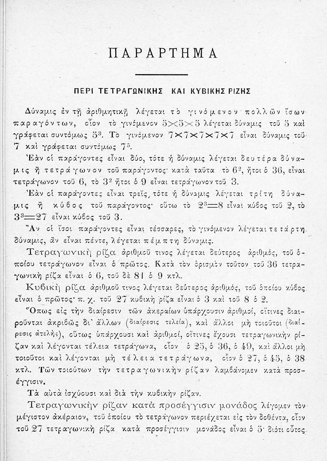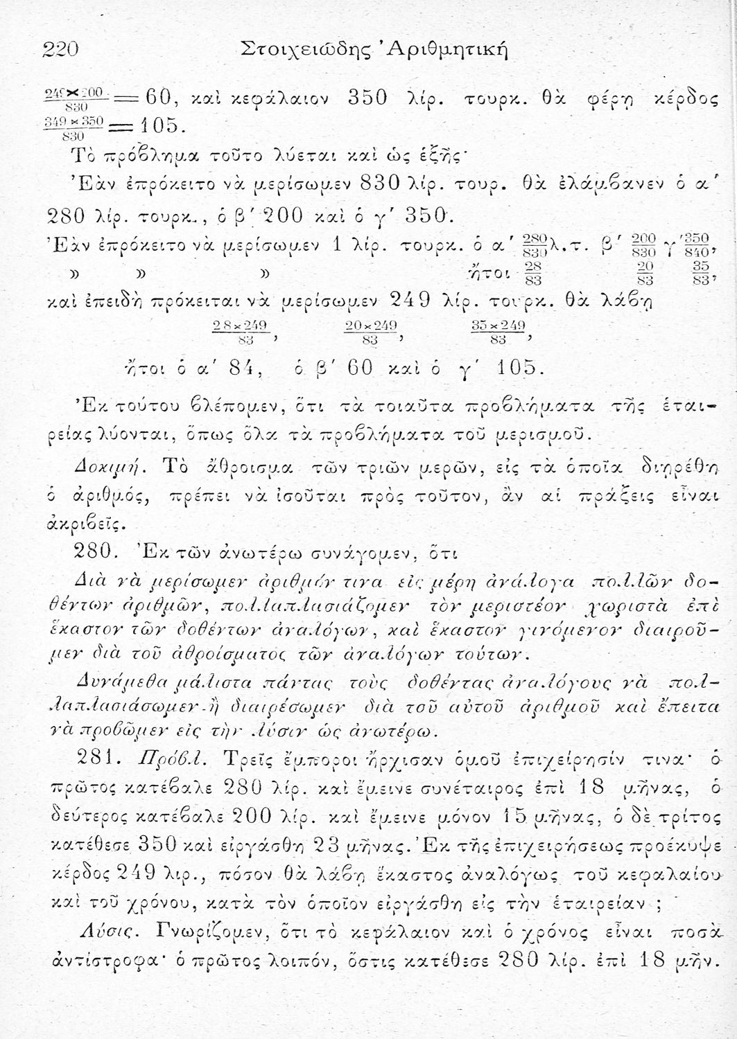 Σχολικό εγχειρίδιο για τις τάξεις του Ελληνικού, Παρθεναγωγείου, Αστικού και Σχολαρχείου σχολείου για το μάθημα των Μαθηματικών. Το εγχειρίδιο περιλαμβάνει τους στοιχειώδεις κανόνες της αριθμητικής και τις βασικές γνώσεις των Μαθηματικών, τις πρώτες έννοιες των ακεραίων αριθμών, τις 4 βασικές πράξεις, τα κλάσματα, τους δεκαδικούς αριθμούς, τους συμμιγείς αριθμούς, την απλή και σύνθετη μέθοδο των τριών κ.α.