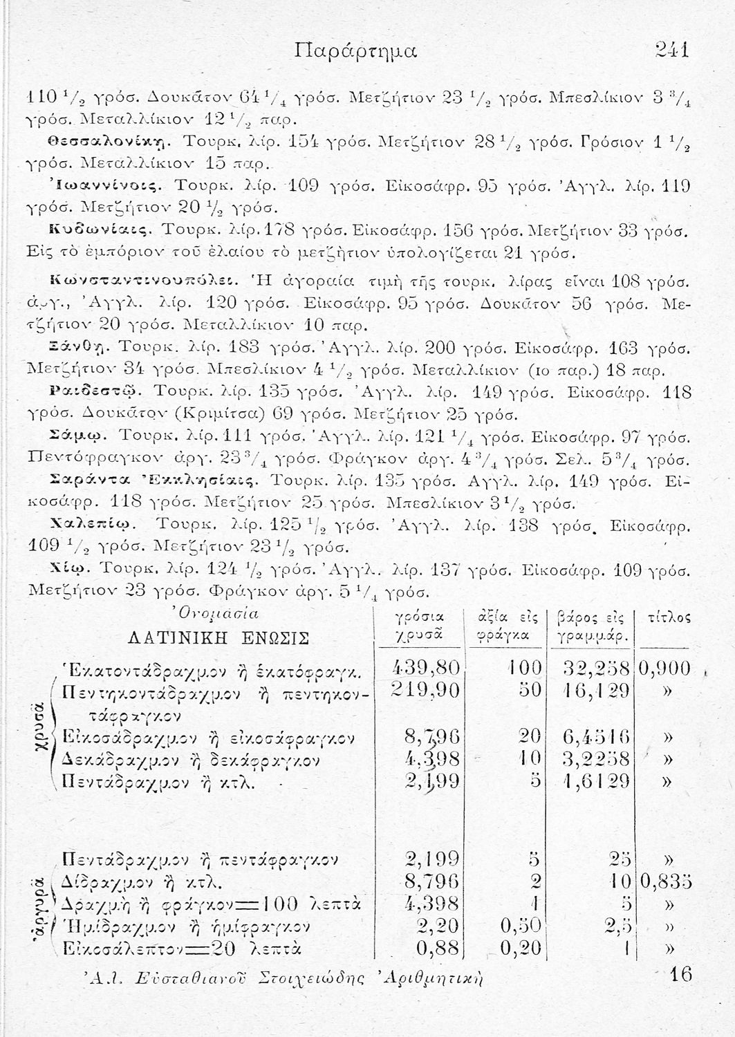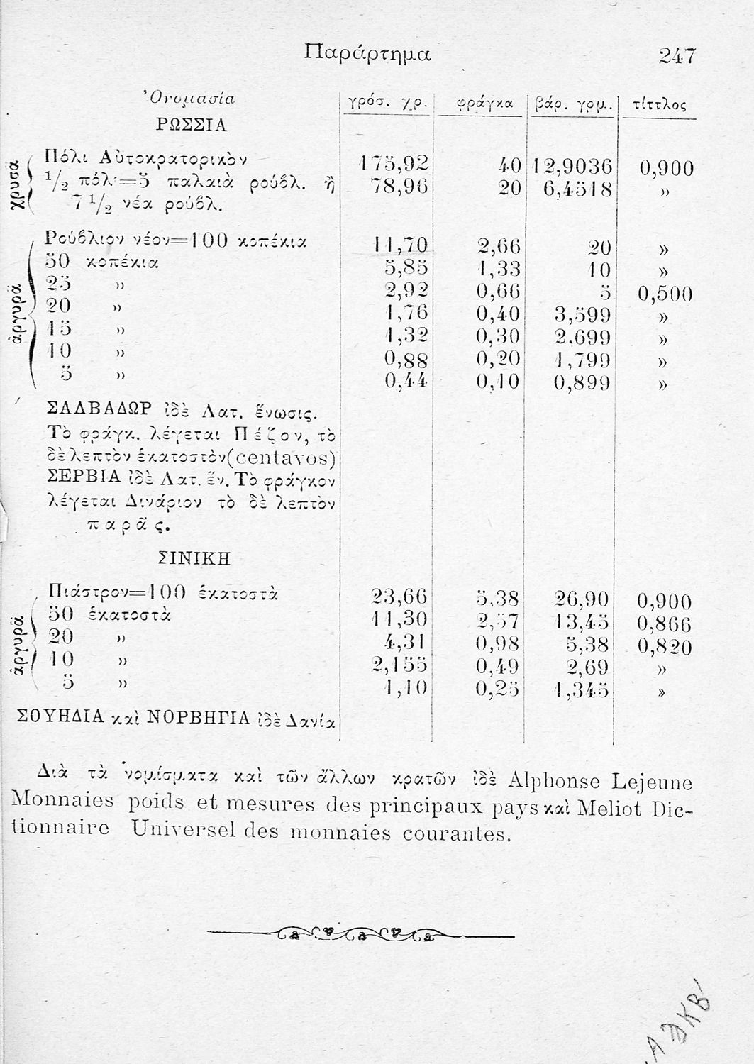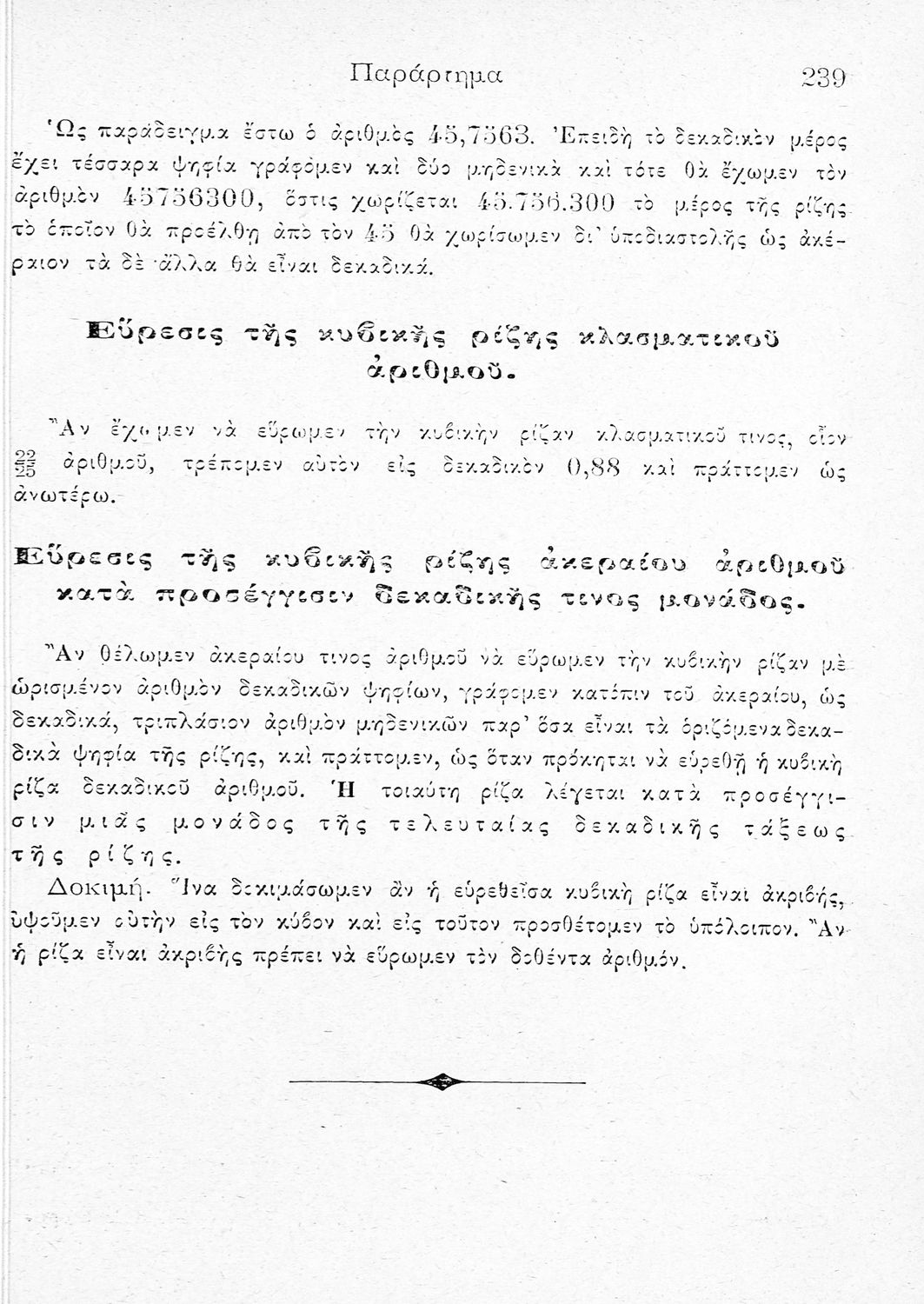 Σχολικό εγχειρίδιο για τις τάξεις του Ελληνικού, Παρθεναγωγείου, Αστικού και Σχολαρχείου σχολείου για το μάθημα των Μαθηματικών. Το εγχειρίδιο περιλαμβάνει τους στοιχειώδεις κανόνες της αριθμητικής και τις βασικές γνώσεις των Μαθηματικών, τις πρώτες έννοιες των ακεραίων αριθμών, τις 4 βασικές πράξεις, τα κλάσματα, τους δεκαδικούς αριθμούς, τους συμμιγείς αριθμούς, την απλή και σύνθετη μέθοδο των τριών κ.α.