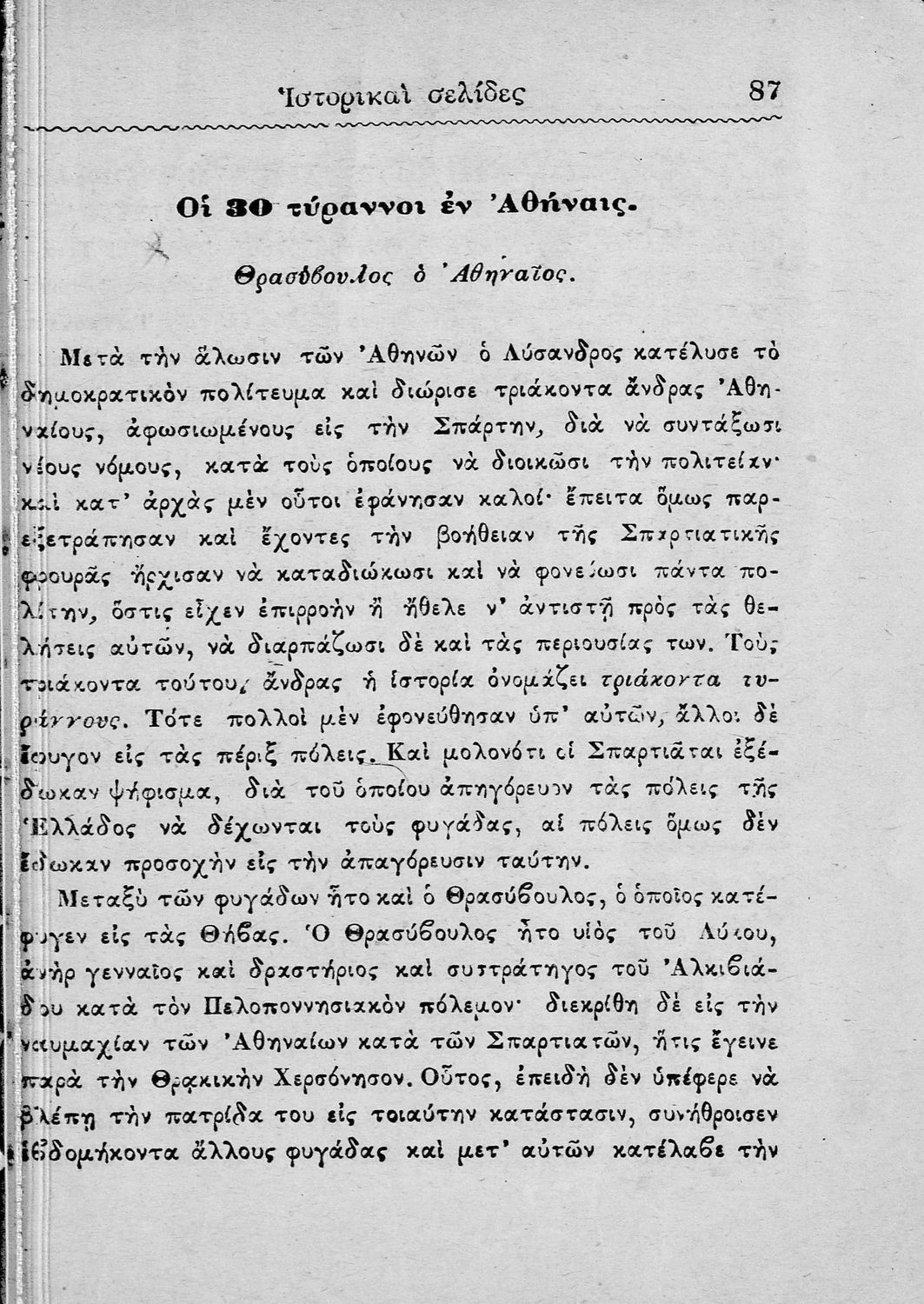 Βαθμίδα εκπαίδευσης: Πρωτοβάθμια, Δευτεροβάθμια Τάξη: Δημοτικό / Αστικό Σχολείο Μάθημα: Ιστορία Γλώσσα: Καθαρεύουσα Παρουσίαση περιεχομένου: Σχολικό εγχειρίδιο Ιστορίας. Δημοτικού και Αστικού Σχολείου που καλύπτει την περίοδο από τους μυθικούς και ηρωικούς χρόνους μέχρι τη Μακεδονική Ηγεμονία |