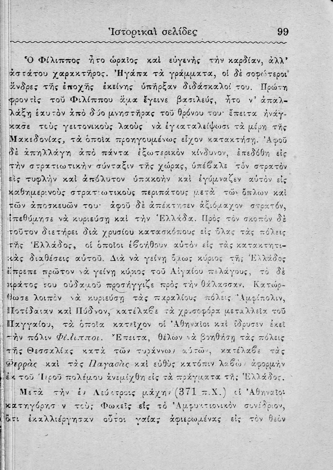 Σχολικό εγχειρίδιο Ιστορίας. Δημοτικού και Αστικού Σχολείου που καλύπτει την περίοδο από τους μυθικούς και ηρωικούς χρόνους μέχρι τη Μακεδονική Ηγεμονία