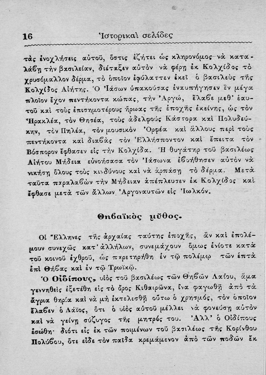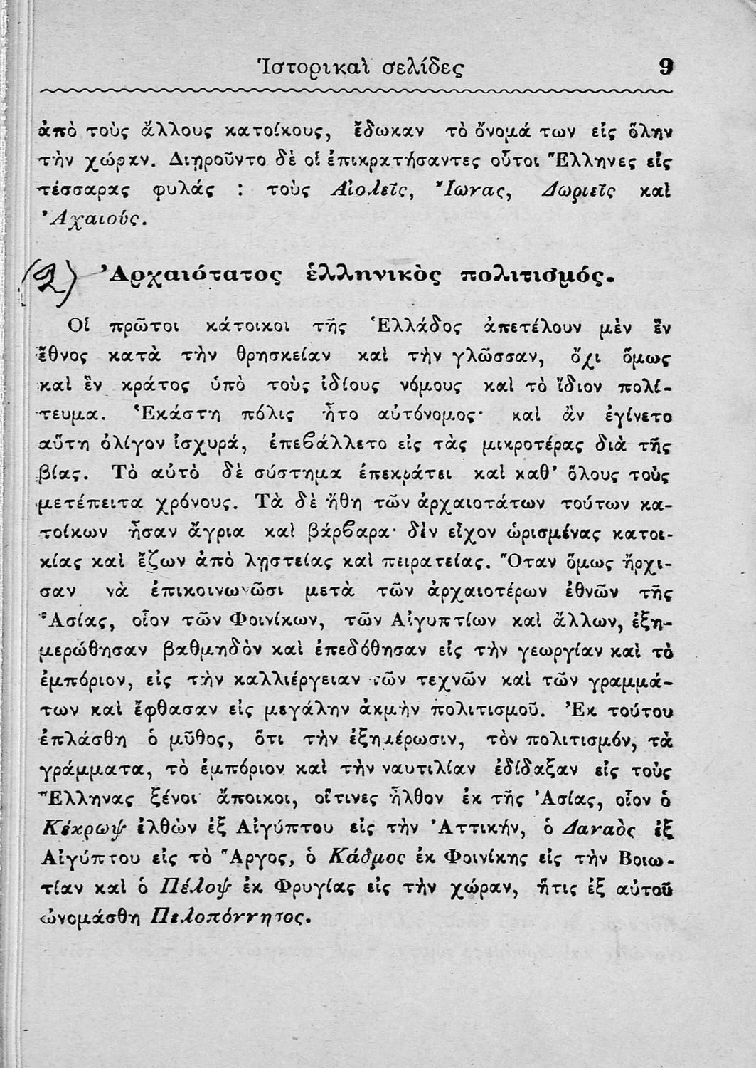 Σχολικό εγχειρίδιο Ιστορίας. Δημοτικού και Αστικού Σχολείου που καλύπτει την περίοδο από τους μυθικούς και ηρωικούς χρόνους μέχρι τη Μακεδονική Ηγεμονία
