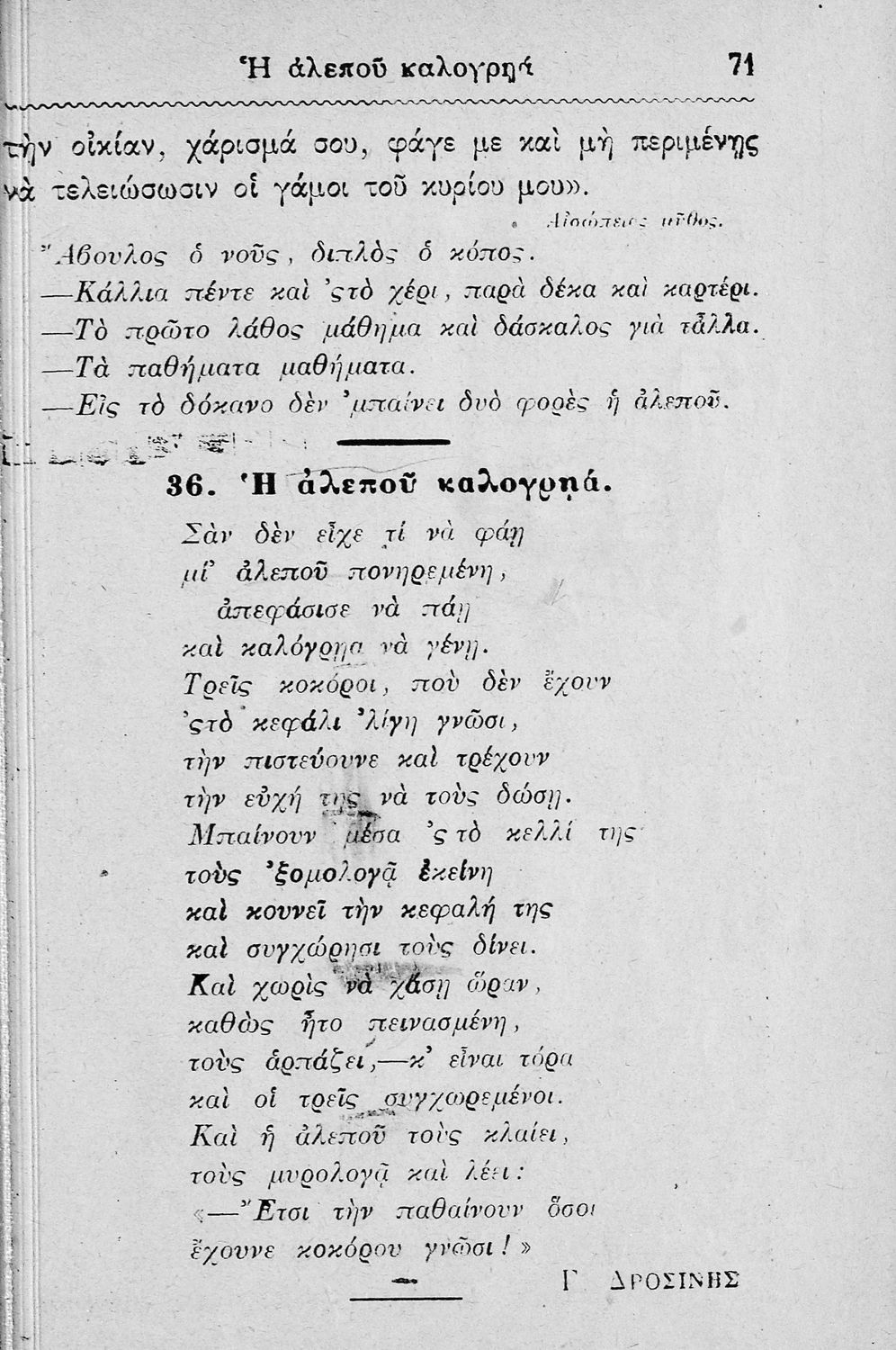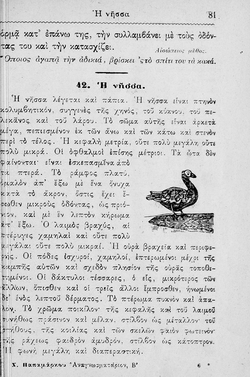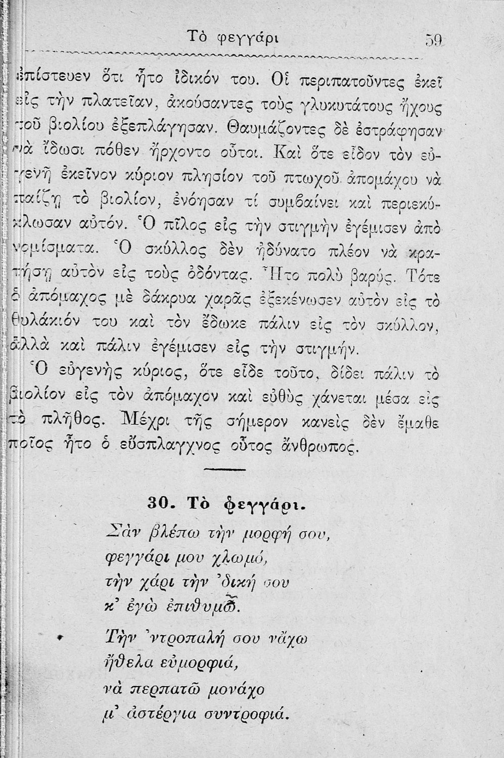 Βαθμίδα εκπαίδευσης: Πρωτοβάθμια Τάξη: Β' Δημοτικού Μάθημα: Νέα Ελληνικά Γλώσσα: Καθαρεύουσα Παρουσίαση περιεχομένου: Αναγνωστικό Β' Δημοτικού που περιλαμβάνει ποιήματα και πεζά ηθοποιητικού περιεχομένου. |
