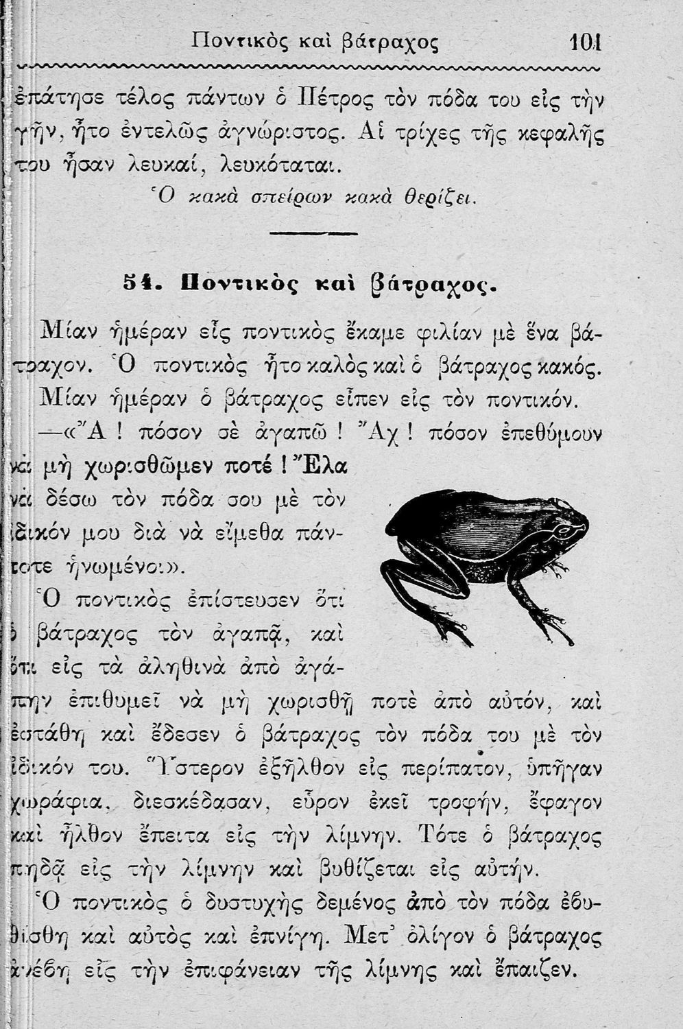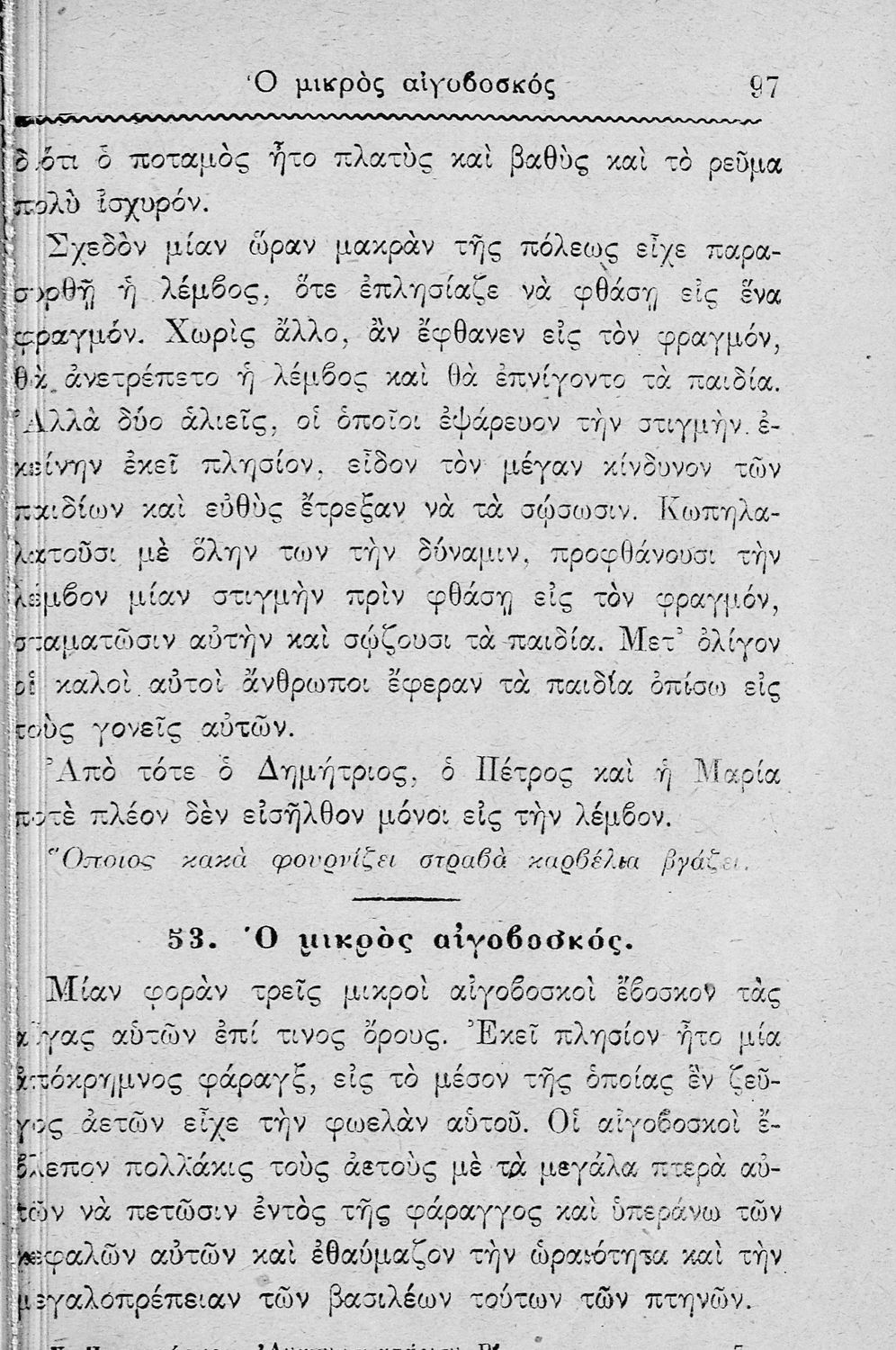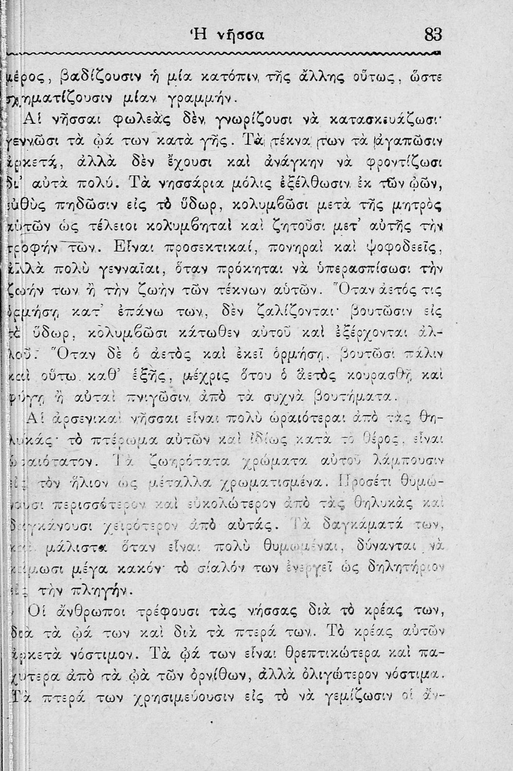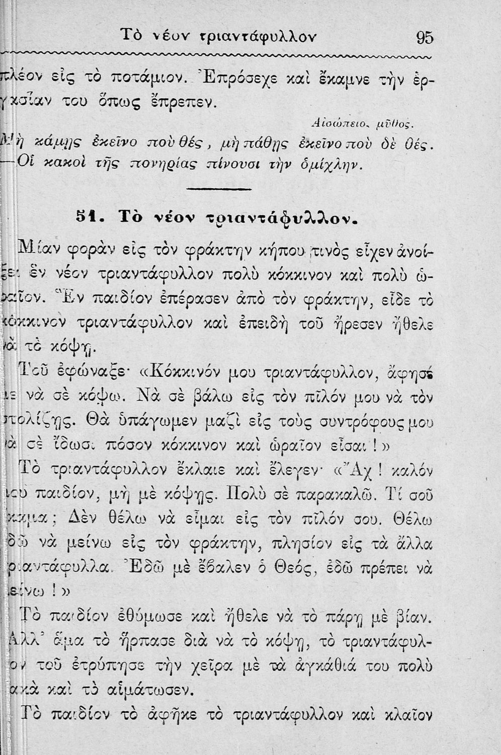 Βαθμίδα εκπαίδευσης: Πρωτοβάθμια Τάξη: Β' Δημοτικού Μάθημα: Νέα Ελληνικά Γλώσσα: Καθαρεύουσα Παρουσίαση περιεχομένου: Αναγνωστικό Β' Δημοτικού που περιλαμβάνει ποιήματα και πεζά ηθοποιητικού περιεχομένου. |
