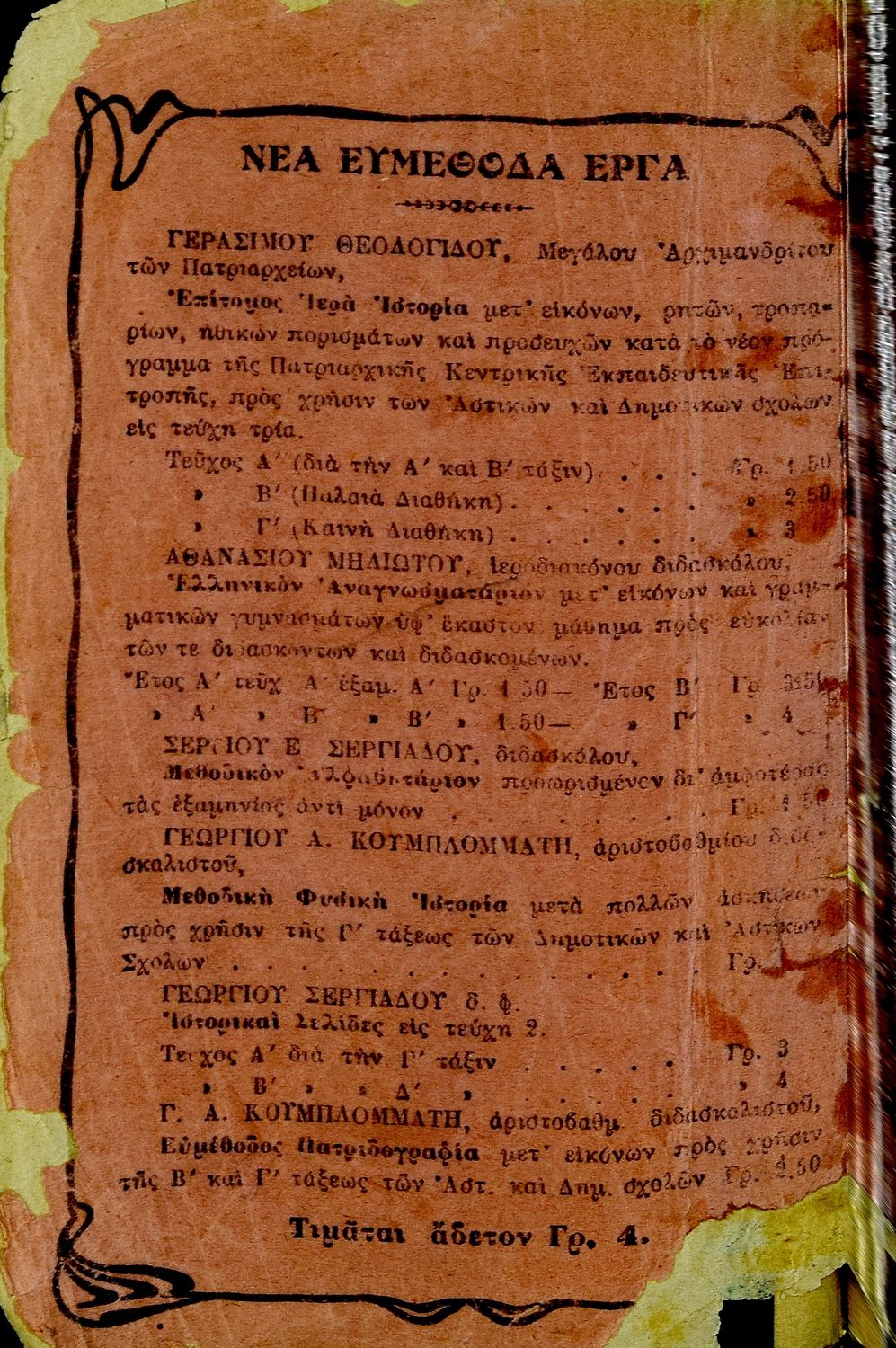 Εκδότης: Δεπάστας, Σφύρας, Γεράρδος Έτος έκδοσης: 1912 Τόπος έκδοσης: Κωνσταντινούπολη |