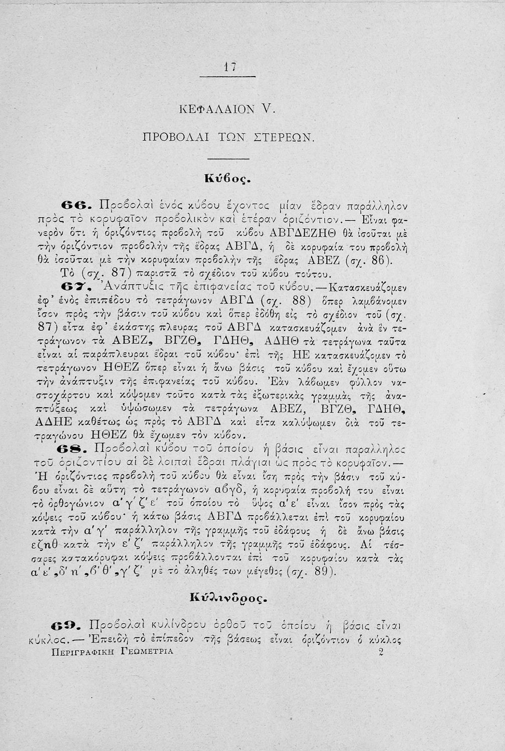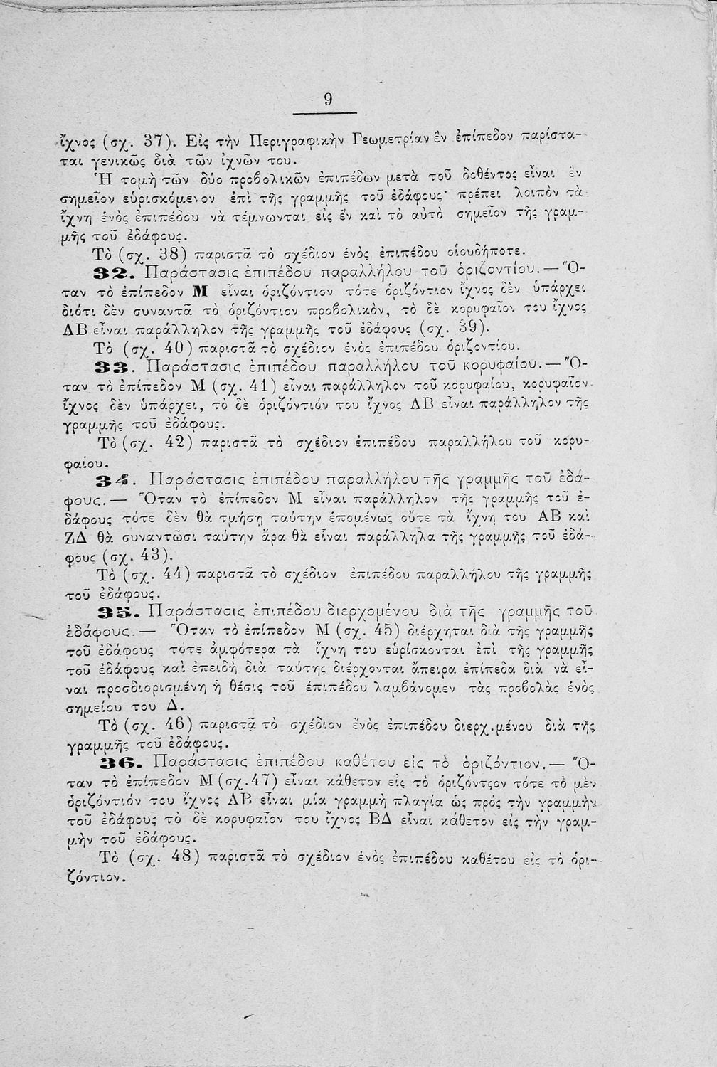 Πρόκειται για εγχειρίδιο για το μάθημα των Μαθηματικών και συγκεκριμένα της Γεωμετρίας. Μπορεί να απευθύνεται σε μαθητές και μαθήτριες των στρατιωτικών σχολών λόγω της ιδιότητα του συγγραφέα (Λοχαγός Πυροβολικού και καθηγητής στην σχολή Ευελπίδων) αλλά δεν αναγράφεται πουθενά ξεκάθαρα αν πρόκειται για μαθητικό ή παιδαγωγικό βοήθημα. Το βιβλίο περιγράφει πολύ συνοπτικά τις βασικές έννοιες της γεωμετρίας, τα βασικά γνωρίσματα της ευθείας γραμμής και των γεωμετρικών σχημάτων του τετραγώνου, τριγώνου, κύκλου, κύβου, κυλίνδρου, πυραμίδας, κώνου κ.α. Το δεύτερο μέρος του βιβλίου συμπληρώνεται με την αναπαράσταση αυτών των σχημάτων.