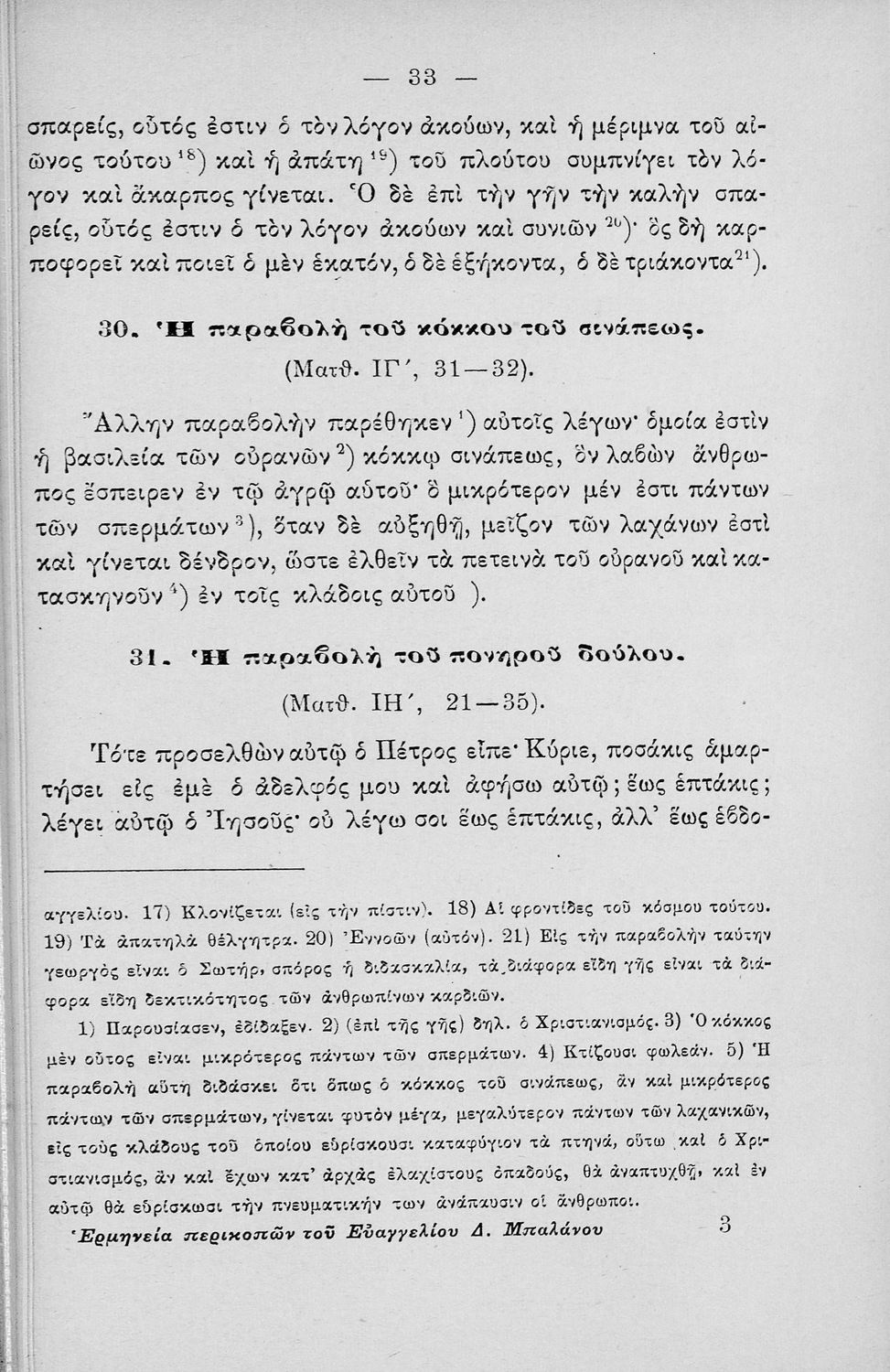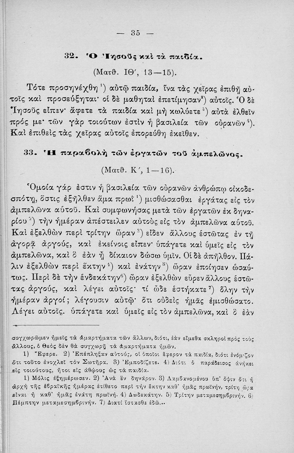 Ερμηνεία περικοπών του Ευαγγελίου αναφερομένων εις τον βίον, τα θαύματα και την διδασκαλίαν του Σωτήρος κατά το τελευταίον πρόγραμμα του υπουργείου των εκκλησιαστικών και της δημ. Εκπαιδεύσεως διά την Ε΄ και ΣΤ΄ τάξιν