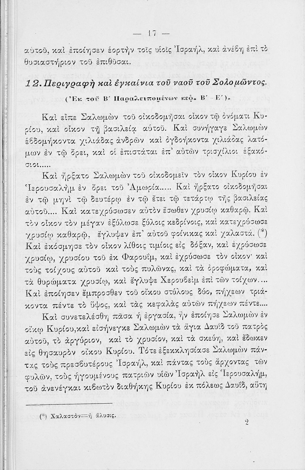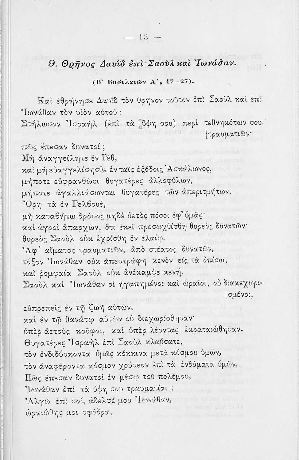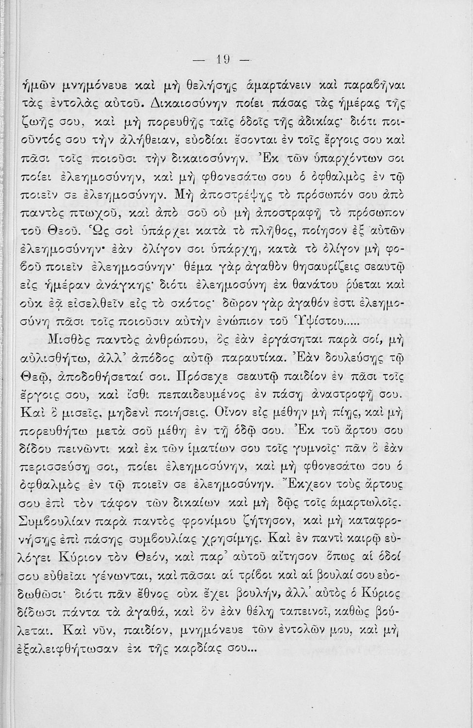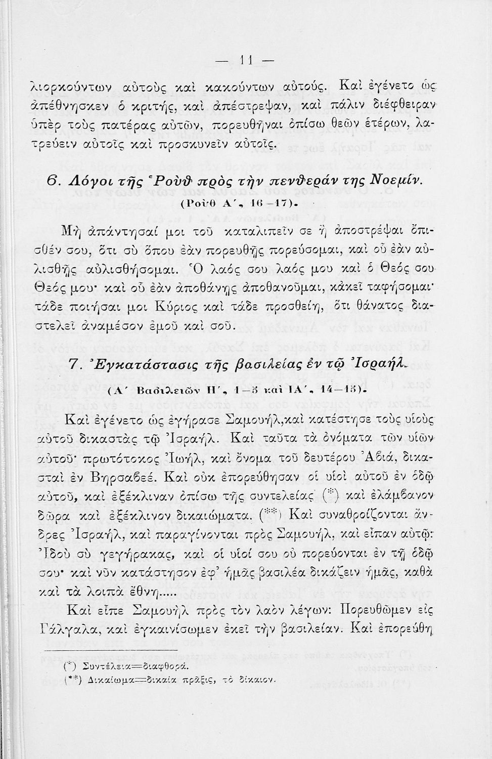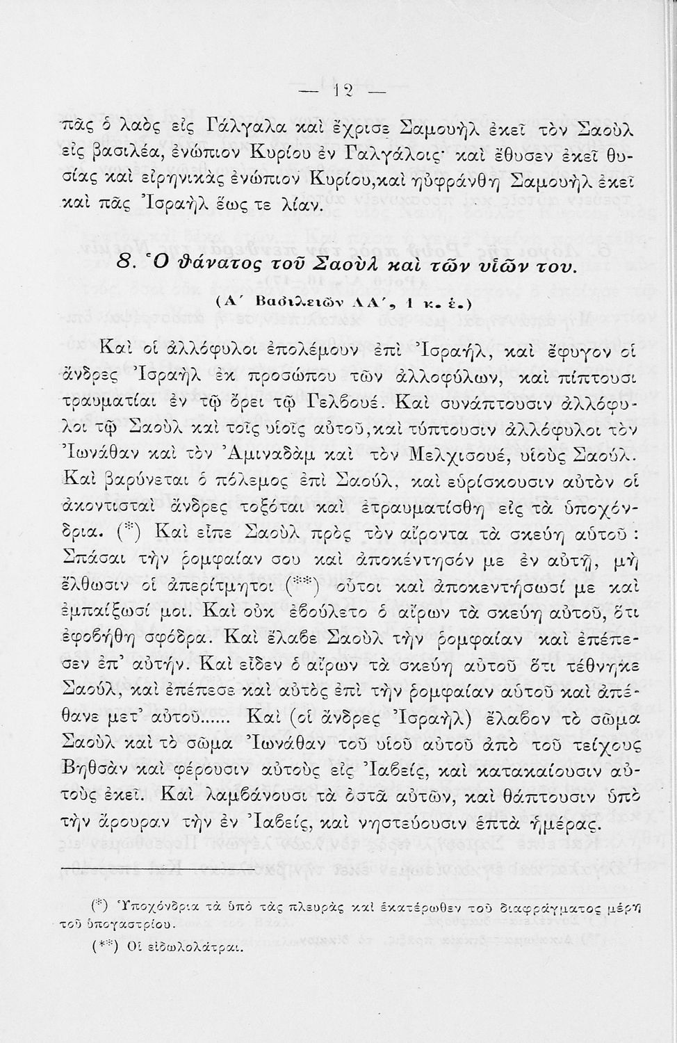 Βαθμίδα εκπαίδευσης: Δευτεροβάθμια Τάξη: Α' Διδασκαλείου Μάθημα: Θρησκευτικά Γλώσσα: Καθαρεύουσα Παρουσίαση περιεχομένου: Σχολικό εγχειρίδιο για την Α' Διδασκαλείου για το μάθημα των Θρησκευτικών. Το εγχειρίδιο αποτελείται από 3 μέρη. Το πρώτο μέρος περιλαμβάνει αποσπάσματα από τα ιστορικά βιβλία της Παλαιάς Διαθήκης, το δεύτερο μέρος αφιερώνεται στα ποιητικά βιβλία της Παλαιάς Διαθήκης και το τρίτο μέρος ασχολείται με τα προφητικά βιβλία της Παλαιάς Διαθήκης, |