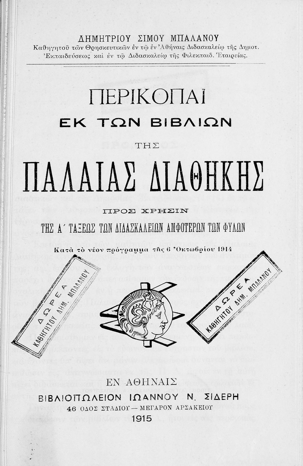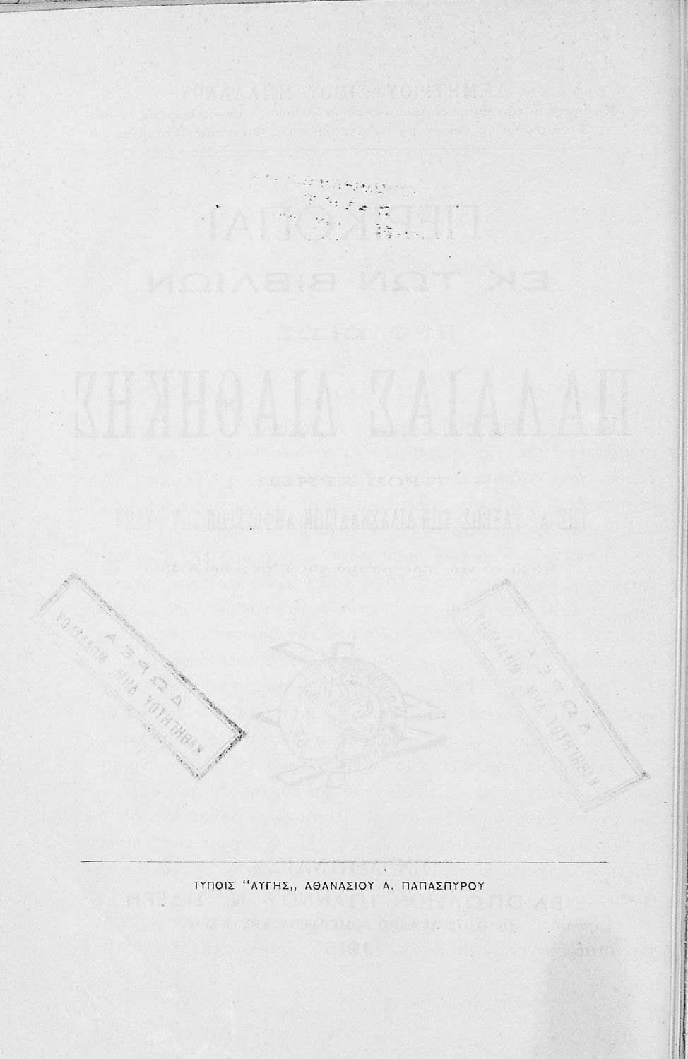 Εκδότης: Ιωάννης Ν. Σιδέρης Έτος έκδοσης: 1915 Τόπος έκδοσης: Αθήνα |