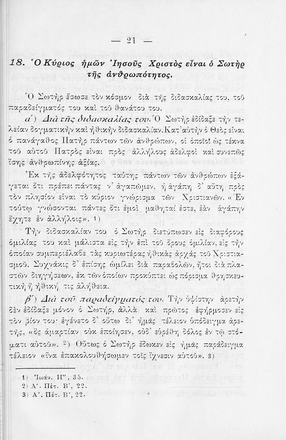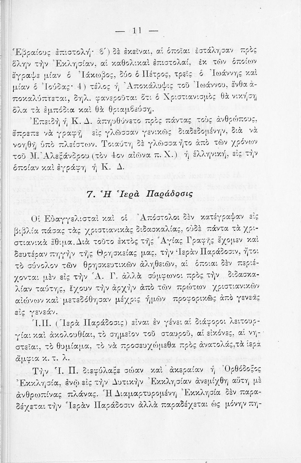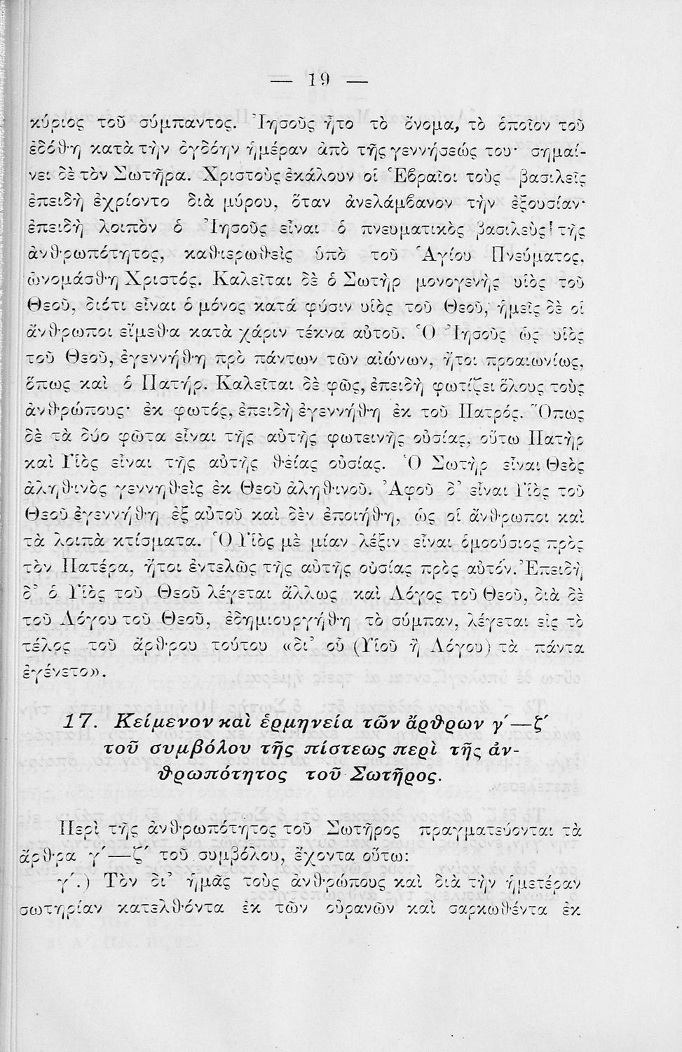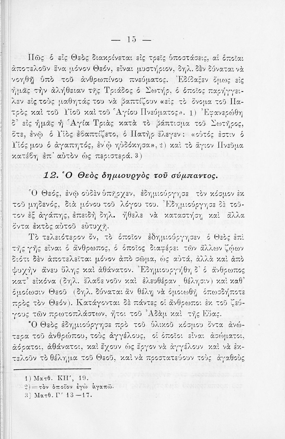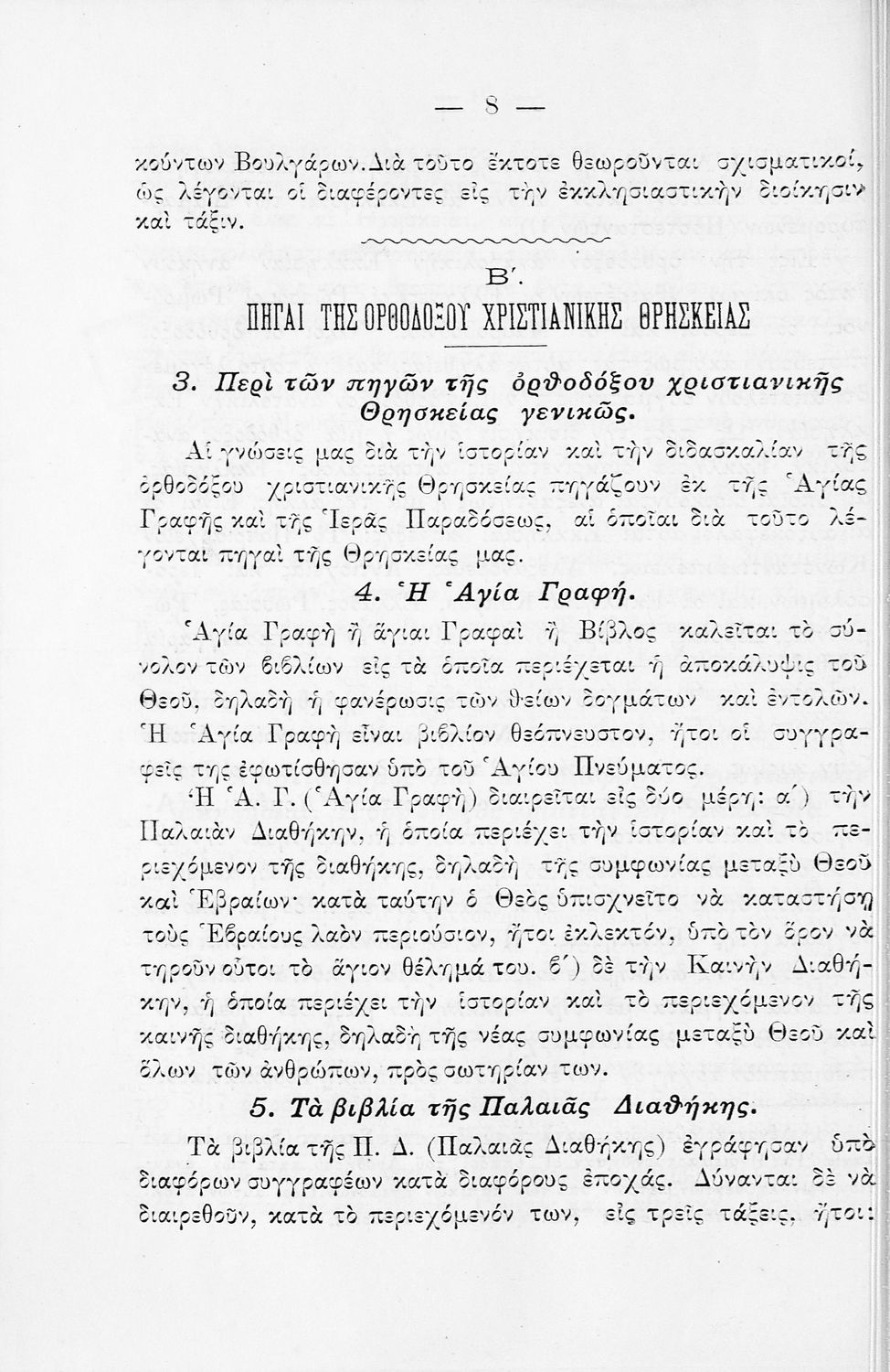 Βαθμίδα εκπαίδευσης: Πρωτοβάθμια Μάθημα: Θρησκευτικά Γλώσσα: Καθαρεύουσα Παρουσίαση περιεχομένου: Σχολικό εγχειρίδιο για τις τάξεις του Δημοτικού για το μάθημα των Θρησκευτικών. Το εγχειρίδιο περιλαμβάνει εισαγωγικά τα είδη της θρησκείας, τον χριστιανισμό και την ορθόδοξη χριστιανική εκκλησία. Ο κύριος κορμός του βιβλίου αποτελείται από τα βιβλία της Παλαιάς και της Καινής Διαθήκης, τις πηγές της ορθόδοξης χριστιανικής εκκλησίας, το σύμβολο της πίστης και την ερμηνεία των ιερών κειμένων, τα 7 μυστήρια της εκκλησίας. |