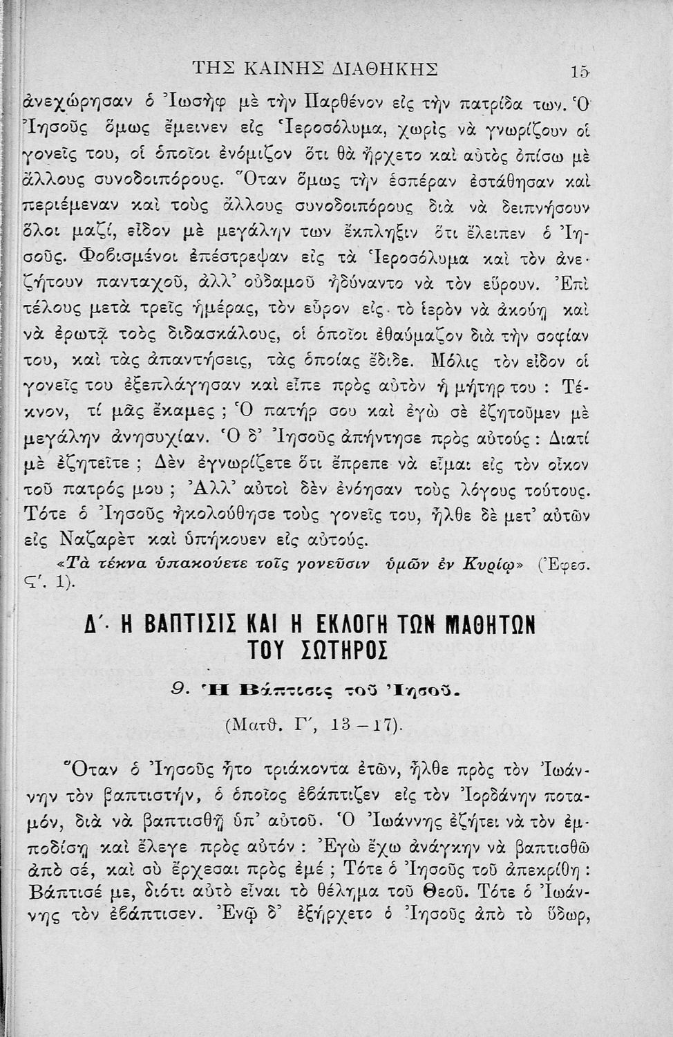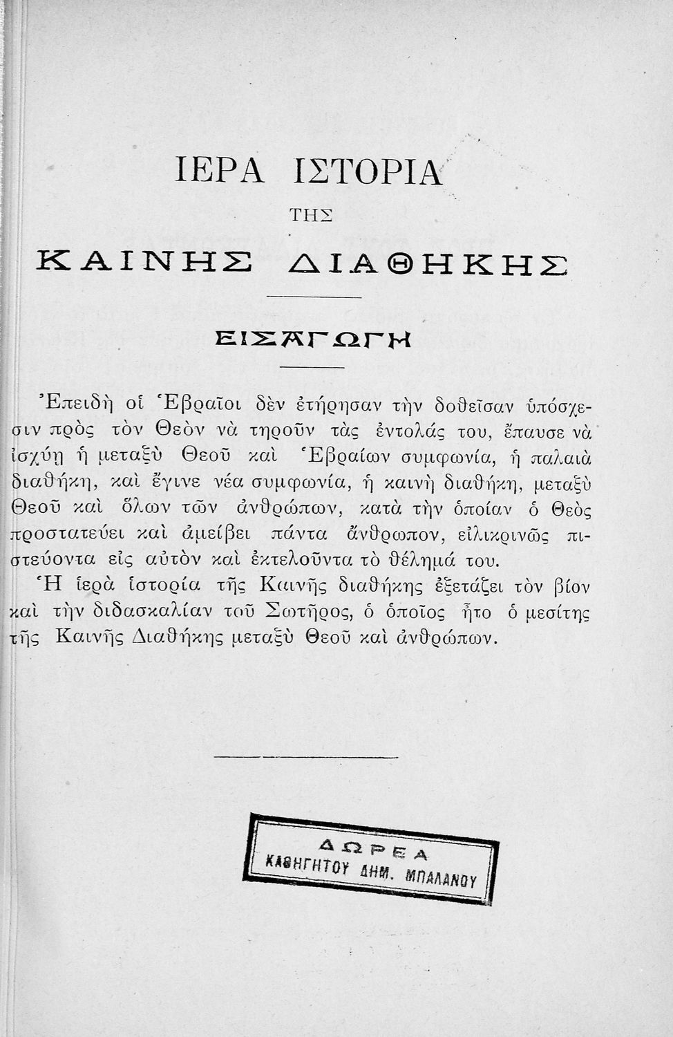 Μαθητικό βοήθημα Δημοτικού που συνιστά μία εξιστόρηση της Καινής Διαθήκης από τη γέννηση της Θεοτόκου ως την ανάληψη του Χριστού