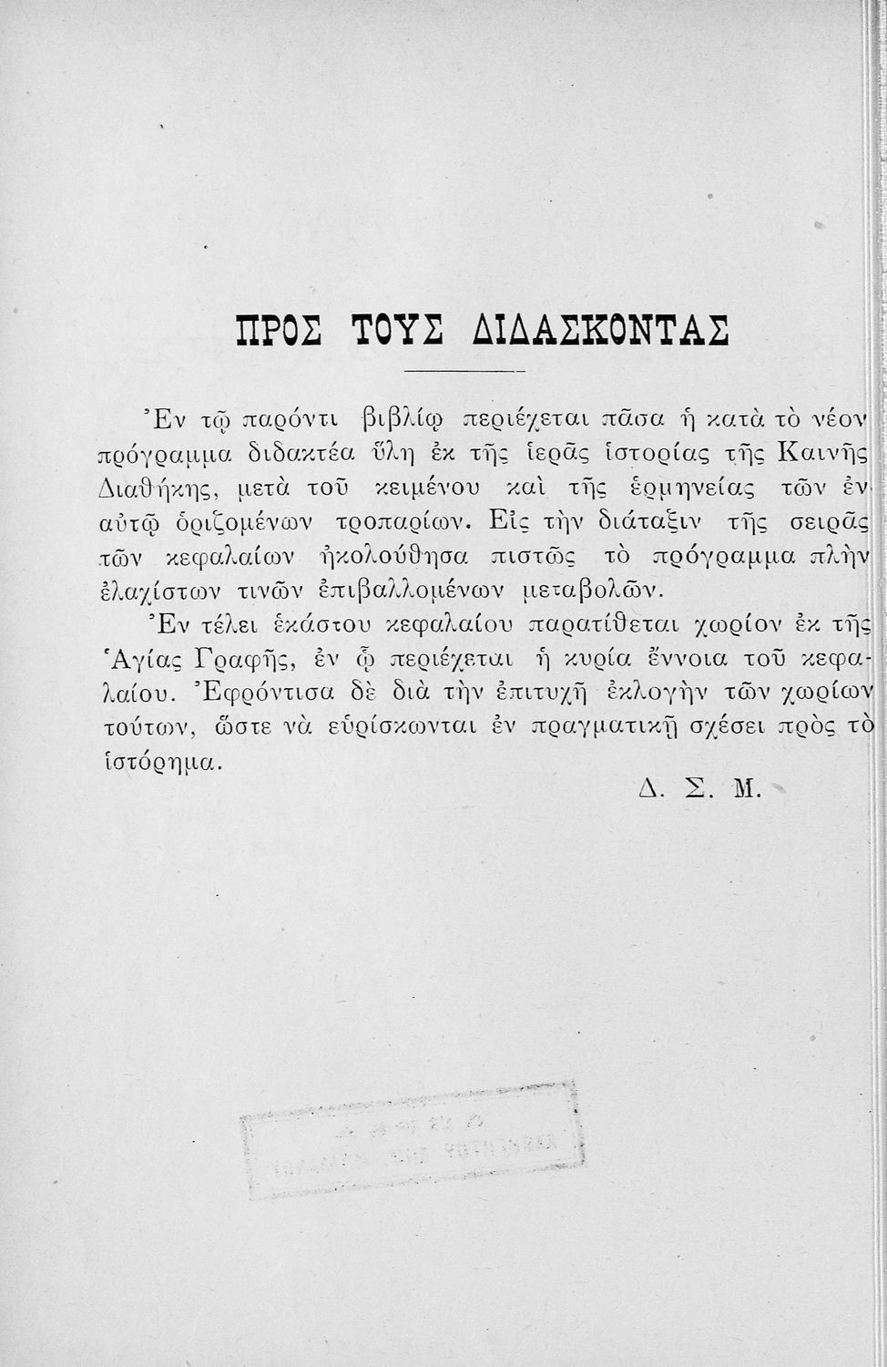 Βαθμίδα εκπαίδευσης: Πρωτοβάθμια Μάθημα: Θρησκευτικά Γλώσσα: Καθαρεύουσα Παρουσίαση περιεχομένου: Μαθητικό βοήθημα Δημοτικού που συνιστά μία εξιστόρηση της Καινής Διαθήκης από τη γέννηση της Θεοτόκου ως την ανάληψη του Χριστού |