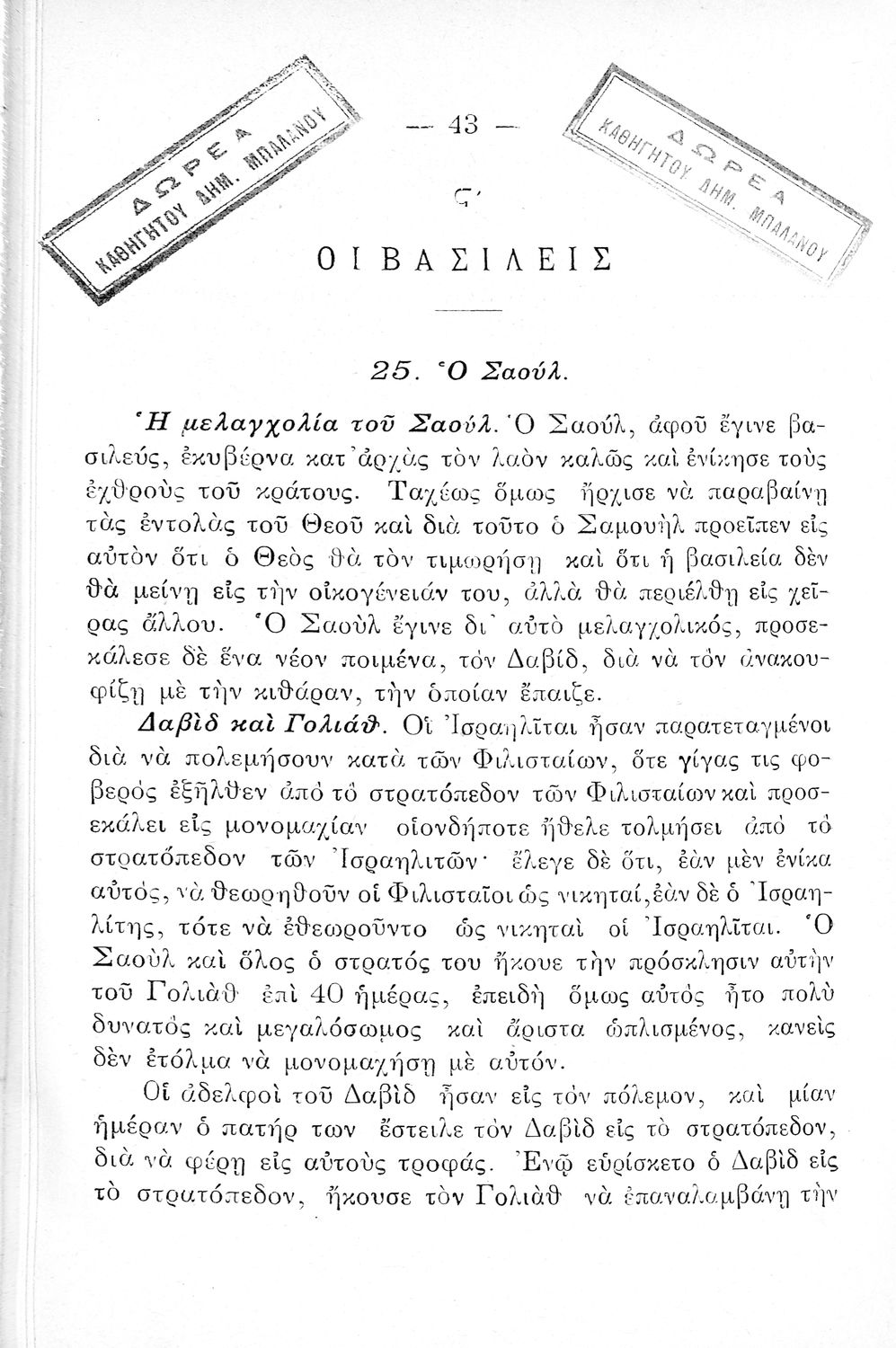 520 ## _aΣχολικό εγχειρίδιο Θρησκευτικών Γ΄ Δημοτικού που συνιστά μία εξιστόρηση της Παλαιάς Διαθήκης από τη δημιουργία του κόσμου ως τους προφήτες.
