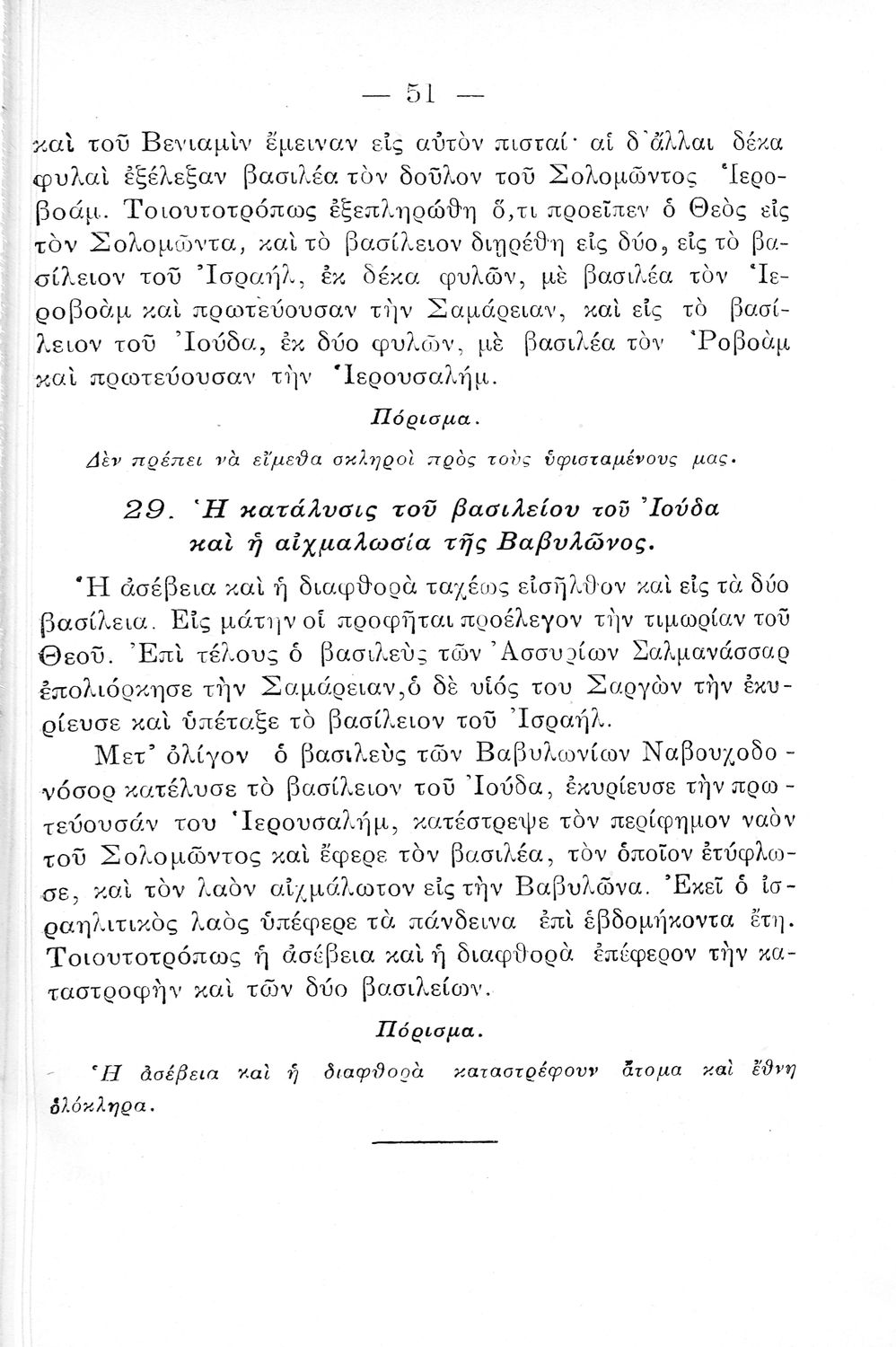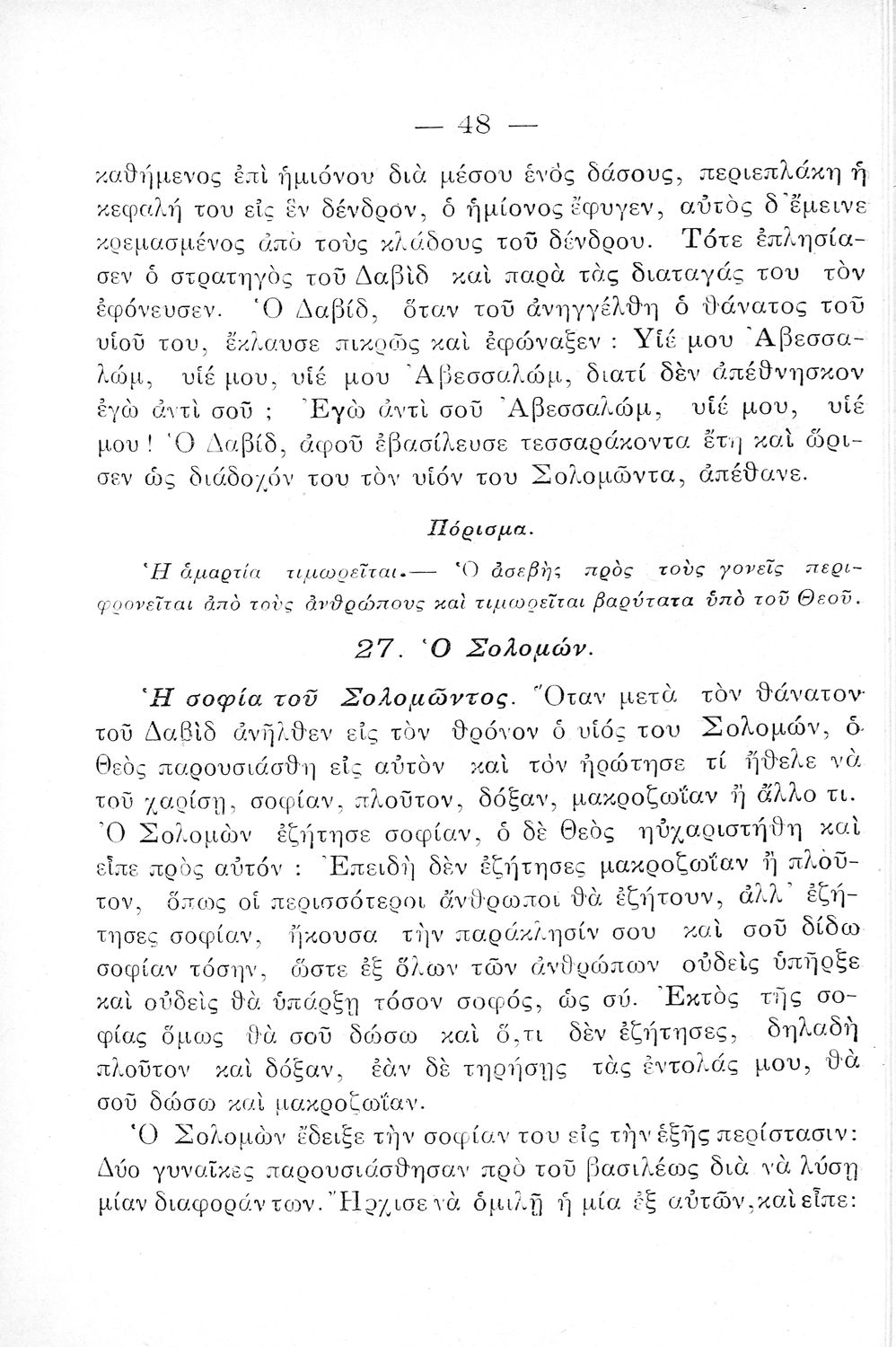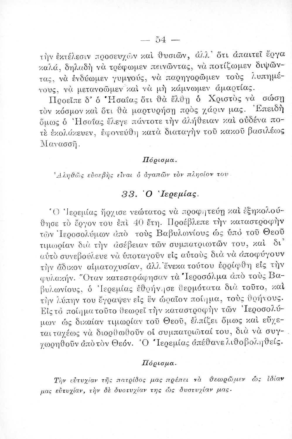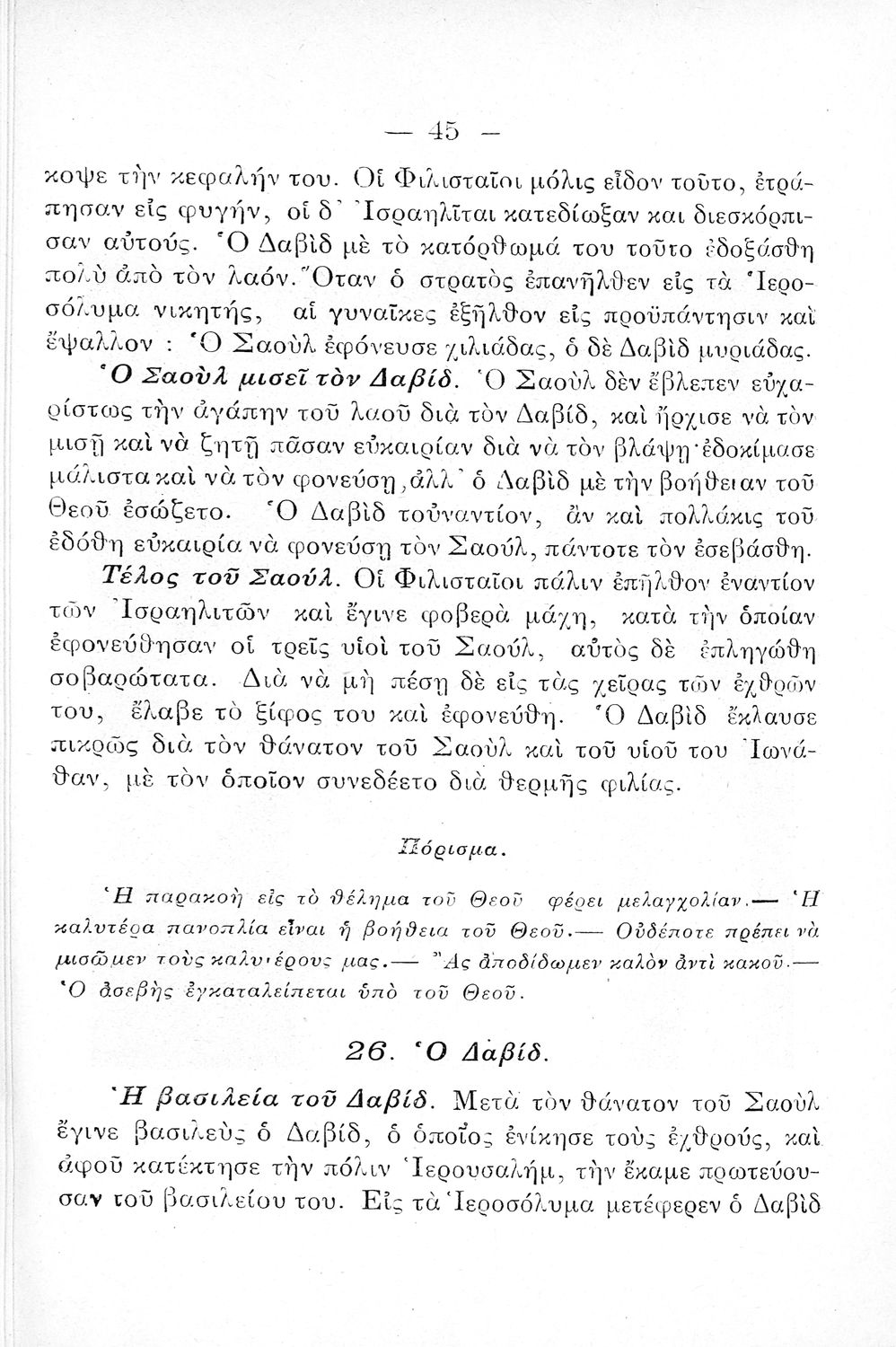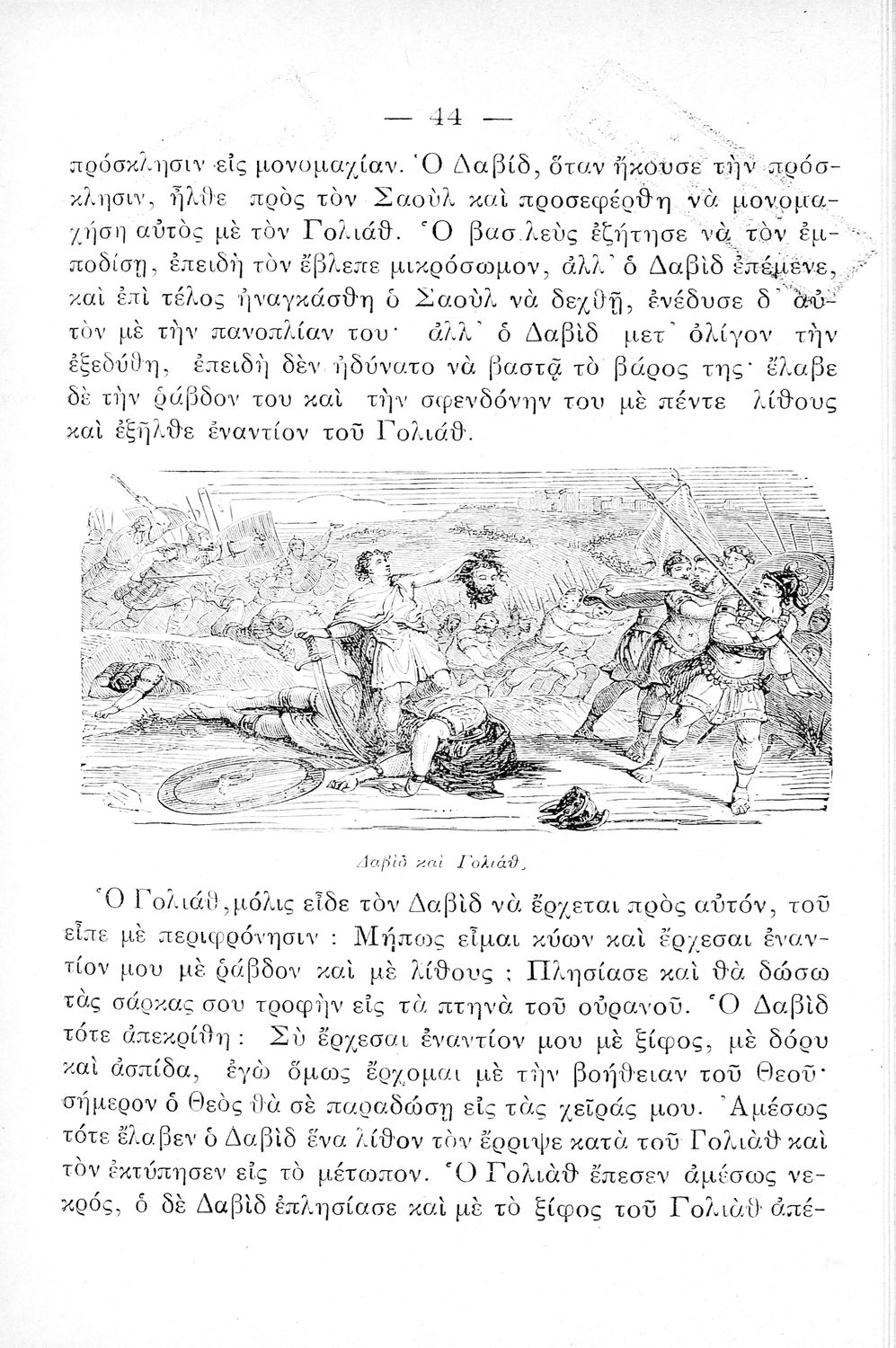Βαθμίδα εκπαίδευσης: Πρωτοβάθμια Τάξη: Γ' Δημοτικού Μάθημα: Θρησκευτικά Γλώσσα: Καθαρεύουσα Παρουσίαση περιεχομένου: Σχολικό εγχειρίδιο Θρησκευτικών Γ΄ Δημοτικού που συνιστά μία εξιστόρηση της Παλαιάς Διαθήκης από τη δημιουργία του κόσμου ως τους προφήτες. |