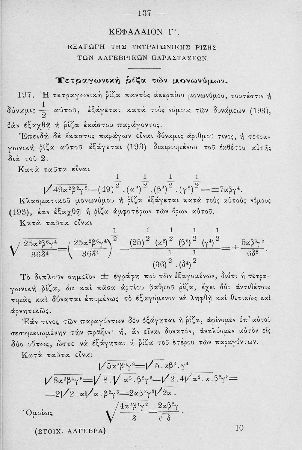 Τίτλος: Στοιχειώδης άλγεβρα η μόνη εγκριθείσα εν τοις γενομένοις διαγωνισμοίς προς χρήσιν των Γυμνασίων
