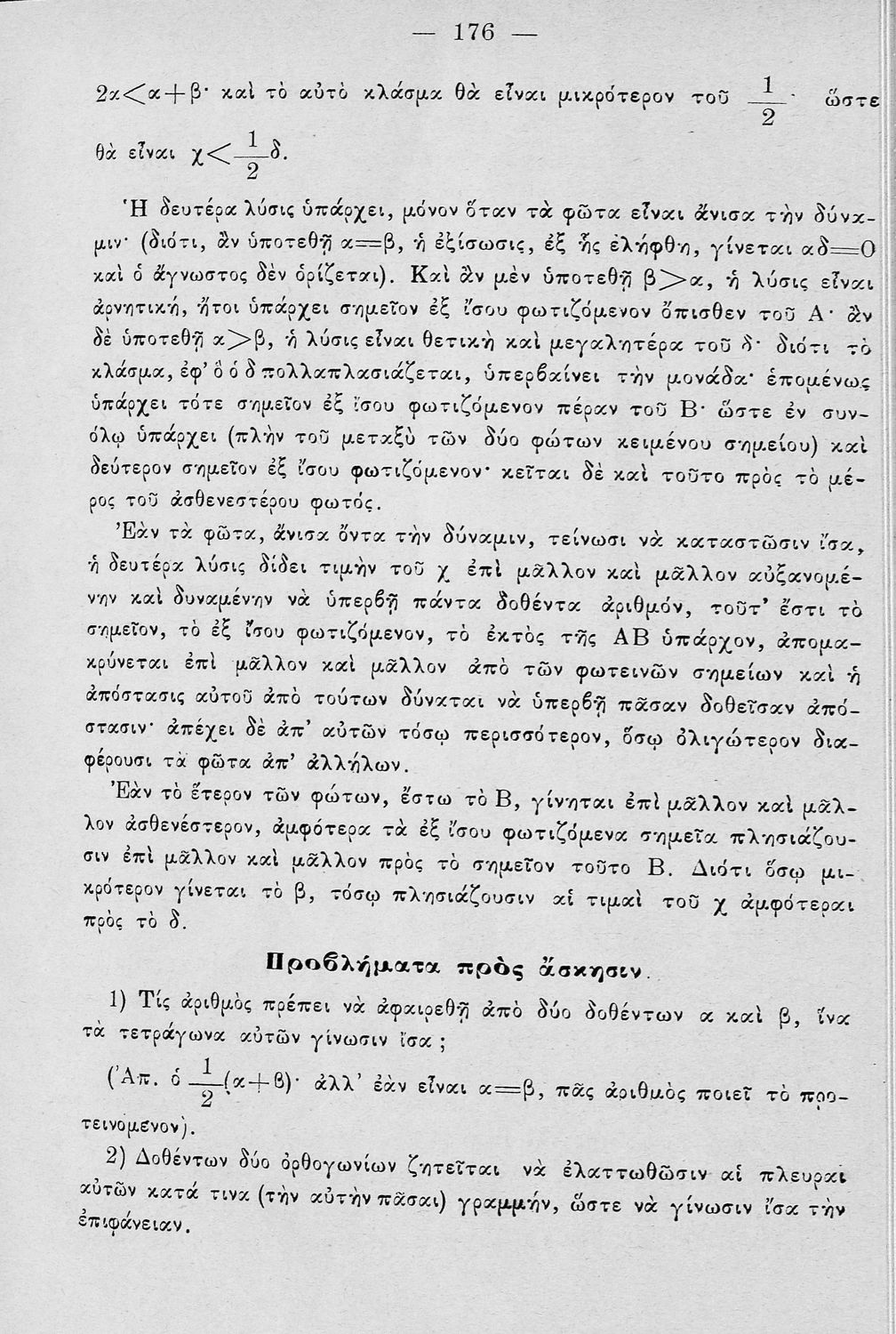 LDR 01500 2200205 4500 035 ## _a09-160622 040 ## _aΑκαδημία Αθηνών 041 ## _ael 100 ## _aΙωάννης Ν. Χατζιδάκις 110 ## _a160622 245 0# _aΣτοιχειώδης άλγεβρα η μόνη εγκριθείσα εν τοις γενομένοις διαγωνισμοίς προς χρήσιν των Γυμνασίων 250 ## _a9η Έκδοση 260 ## _aΑθήνα _bΠ. Δ. Σακελλαρίου _c1906 300 ## _a252 520 ## _aΣχολικό εγχειρίδιο για τις τάξεις του Γυμνασίου για το μάθημα των Μαθηματικών και συγκεκριμένα της Άλγεβρας. Το εγχειρίδιο περιλαμβάνει εισαγωγικά γενικές πληροφορίες για τις 4 βασικές πράξεις συνεχίζει με τις αλγεβρικές παραστάσεις, εξισώσεις πρώτου και δευτέρου βαθμού, δυνάμεις και πολυώνυμα, πρόοδοι, λογάριθμοι, κ.α. 521 ## _aΓυμνάσιο 522 ## _aΕλλάδα 546 ## _aΚαθαρεύουσα 563 ## _aΣκληρό Εξώφυλλο 650 #4 _aΆλγεβρα _aΓυμνασίου _aΔυνάμεις _aΕξισώσεις _aΚαθαρεύουσα _aΛογάριθμοι _aΜαθηματικά _aΠαραστάσεις _aΠολυώνυμα _aΠράξεις _aΡίζες